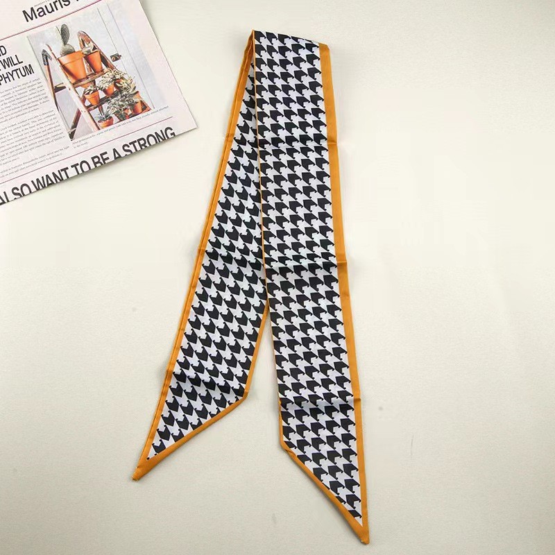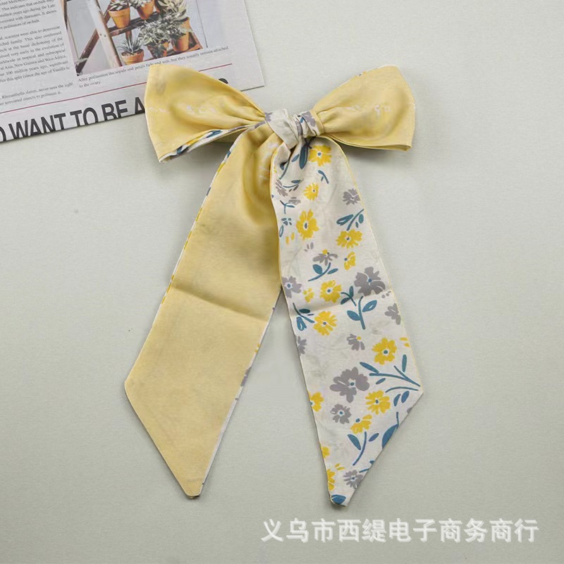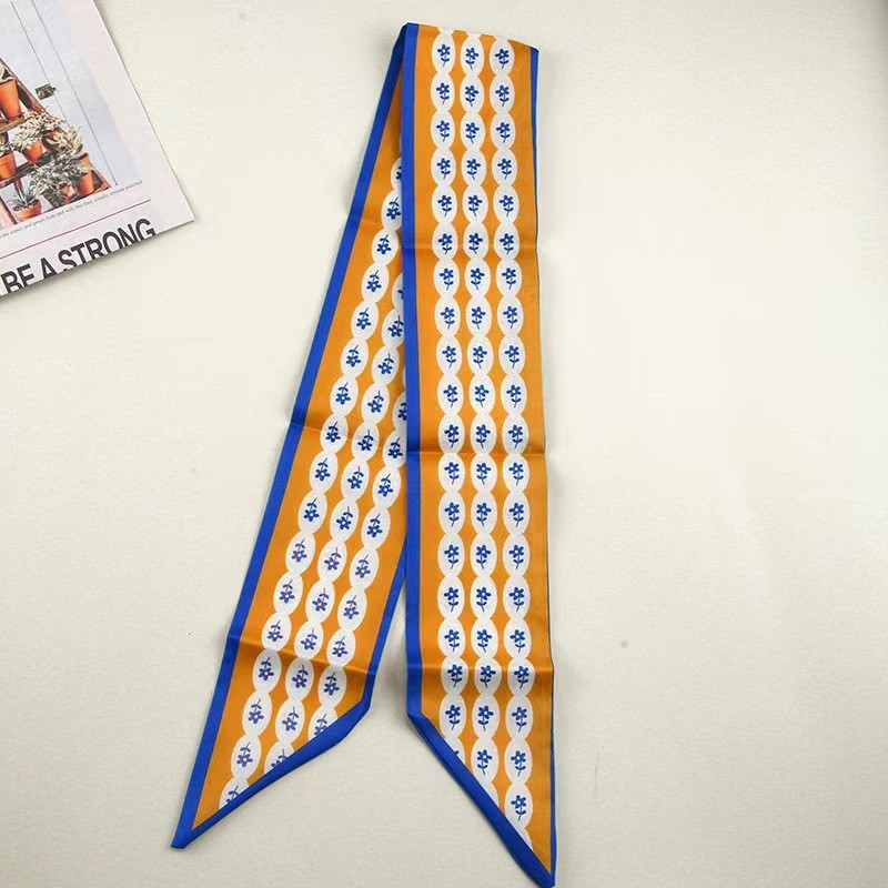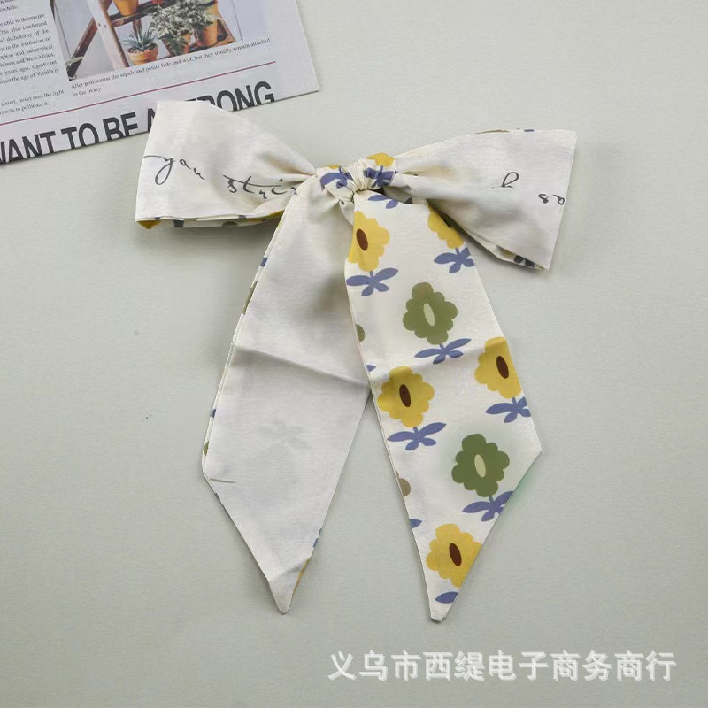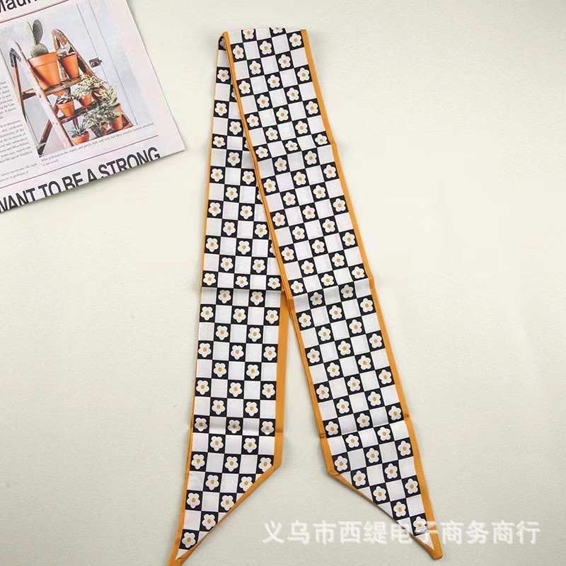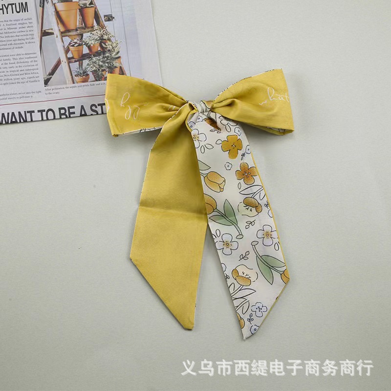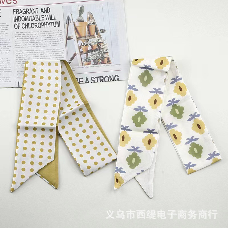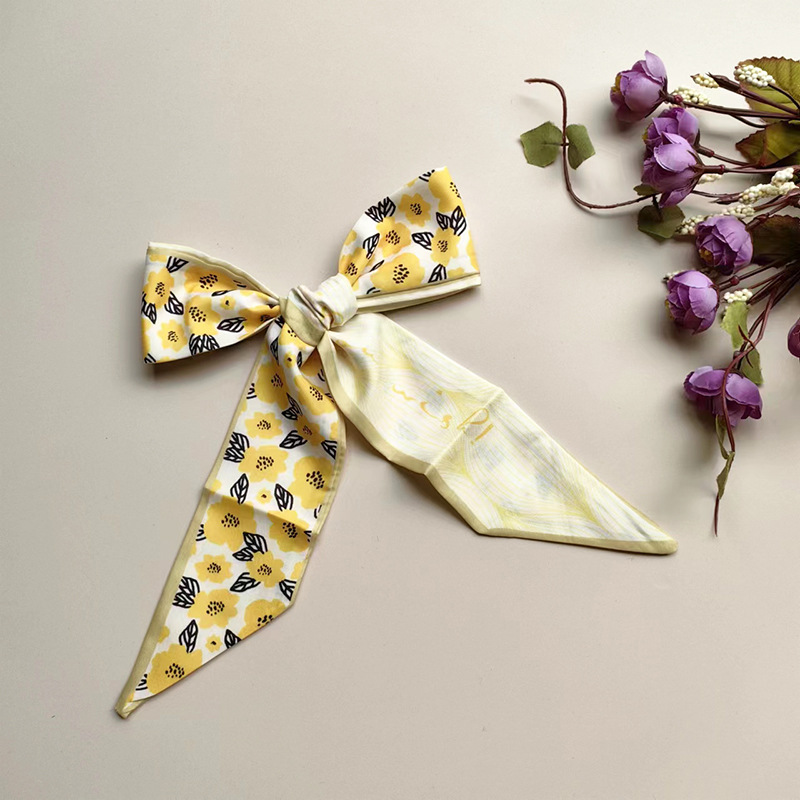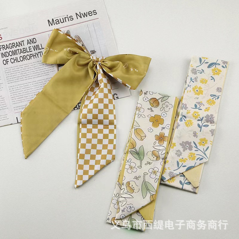 여성용 얇고 긴 작은 실크 스카프, 한국식 대나무 다용도 꽃무늬 머리끈, 선물용 머리띠, 노란색 리본