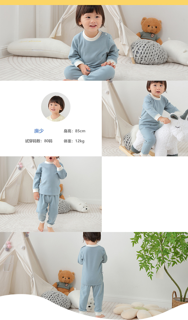 어린이 벨벳 세트 뼈없는 가정복 소년 소녀 따뜻한 잠옷 아기의 가을 옷 긴 존스 브러쉬 기본 옷