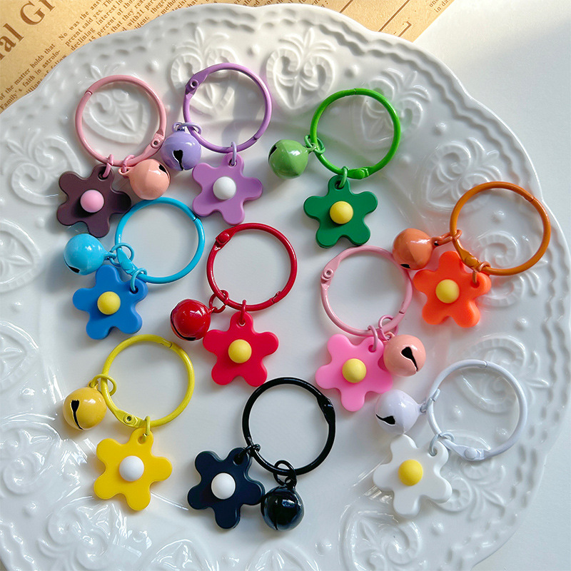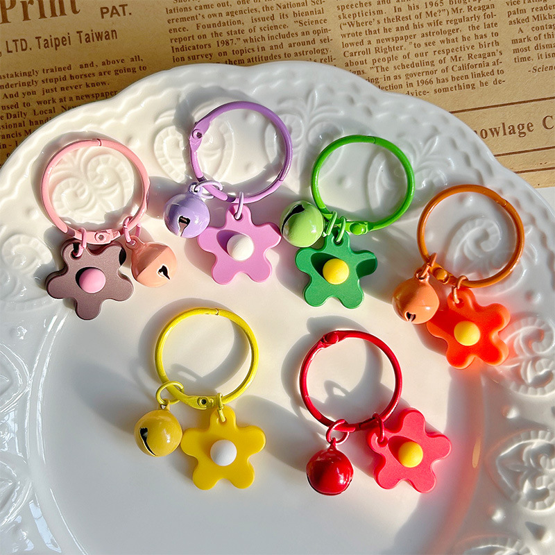 한국 스타일 현-작은 신선한 색상 작은 꽃 벨 열쇠 고리 휴일 선물 열쇠 고리 가방 여성용 교수형 액세서리