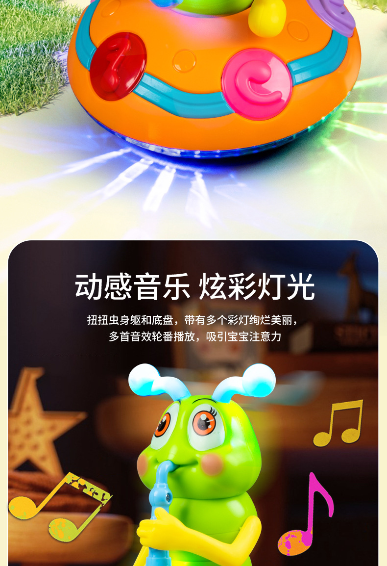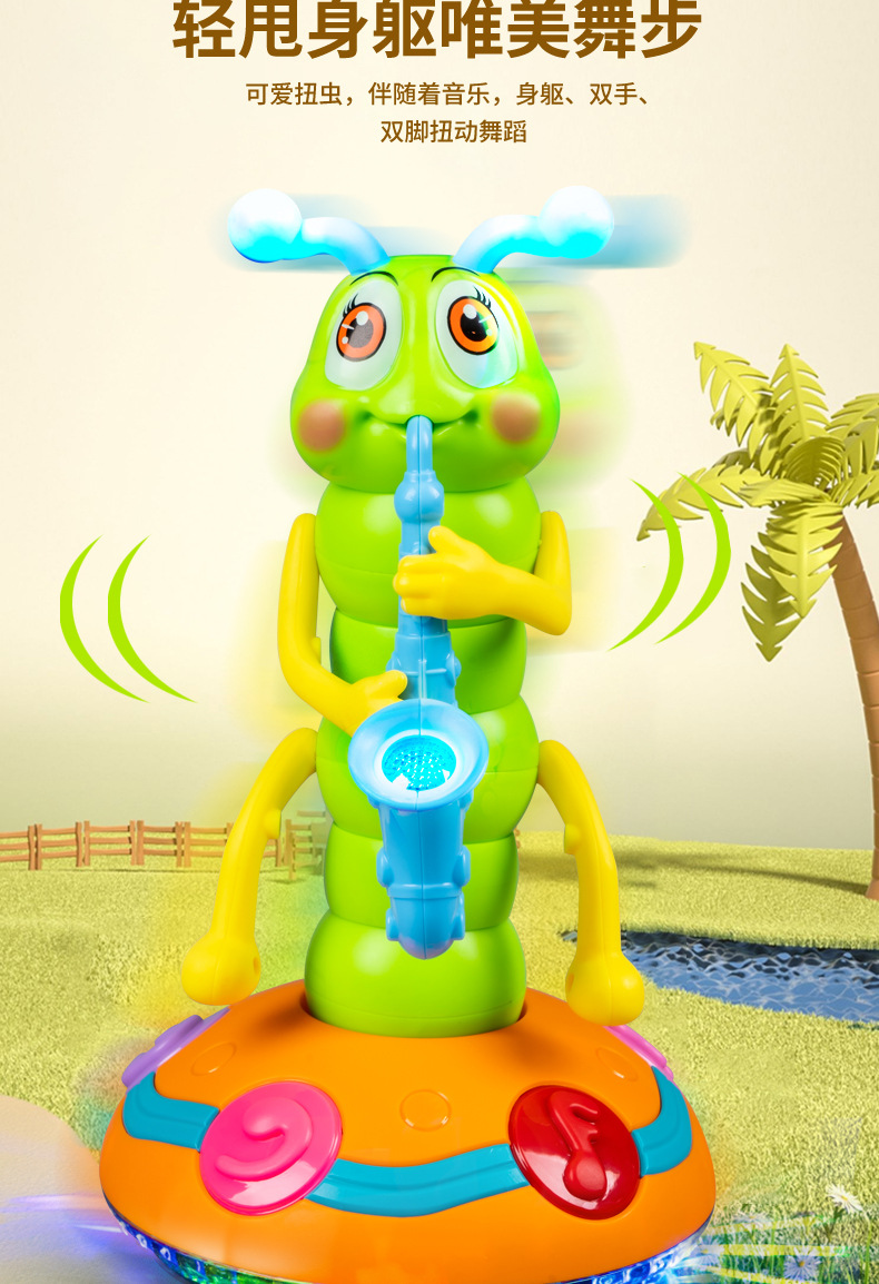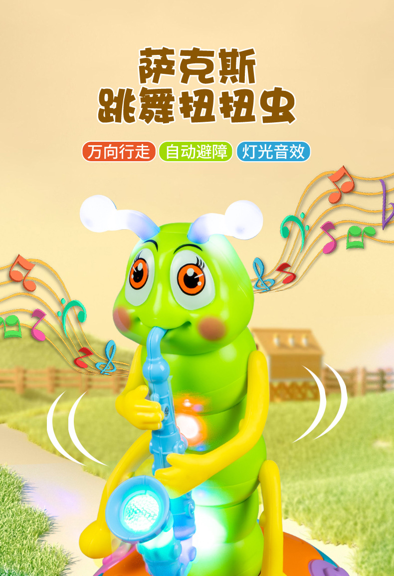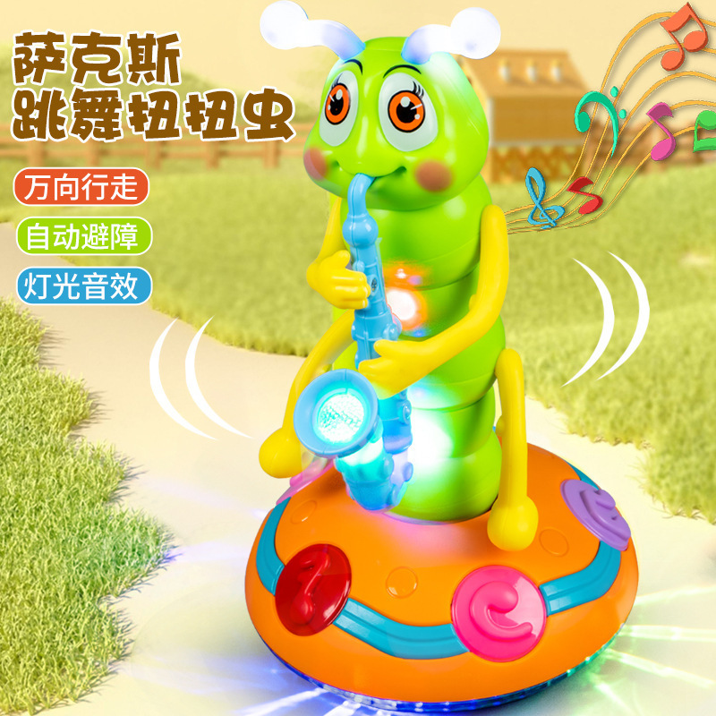 스턴트 회전 애벌레는 색소폰 불고 노래하고 춤을 출 수 있습니다 다채로운 조명 트위스트 웜 창조적 인 유치원 장난감스토어 가기