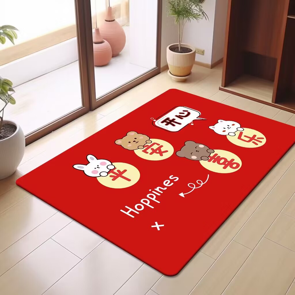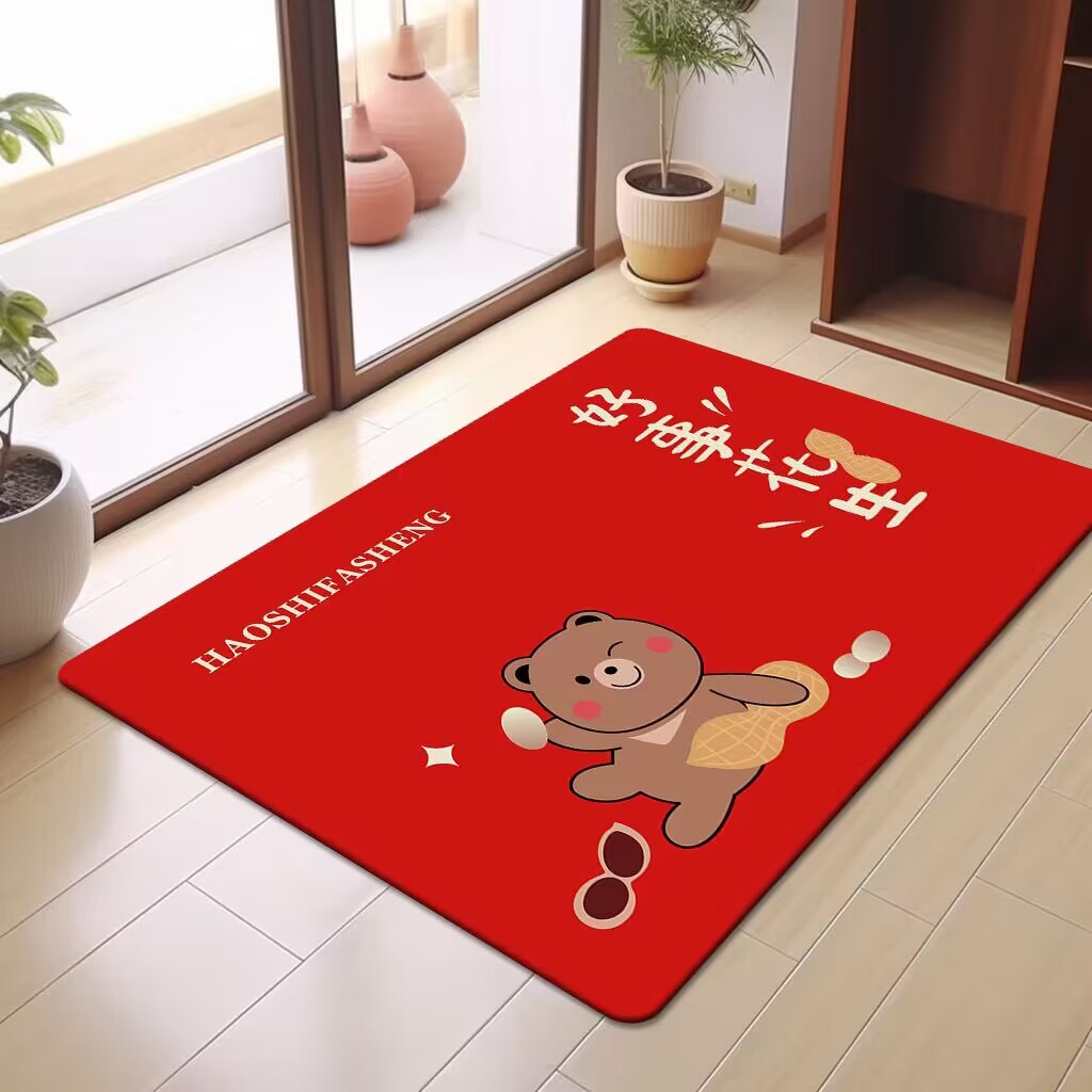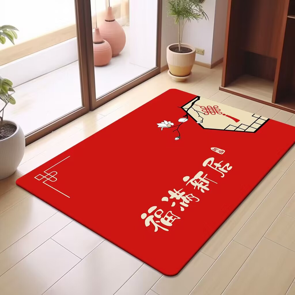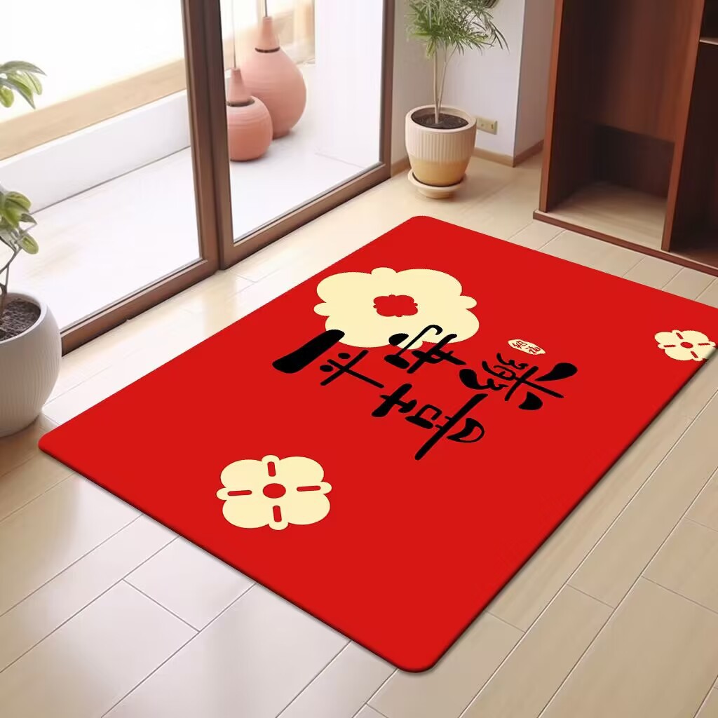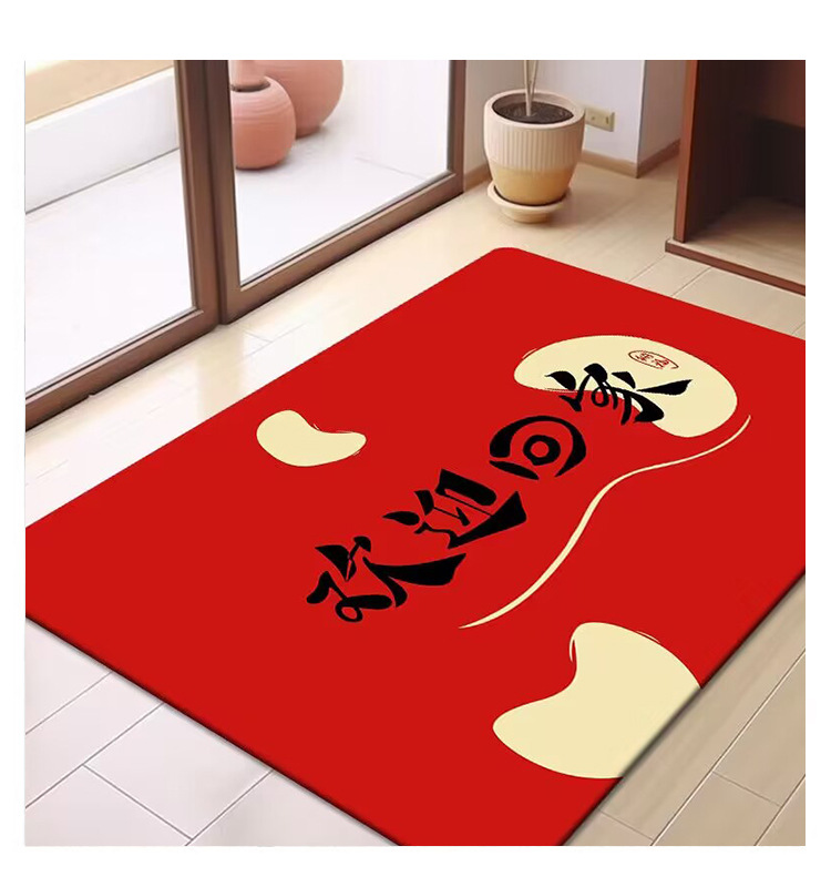 축제 텍스트 레드 바닥 매트 흡수성 미끄럼 방지 입구 바닥 매트 더러움 방지 좋은 방음 크리스탈 벨벳 홈 바닥 매트