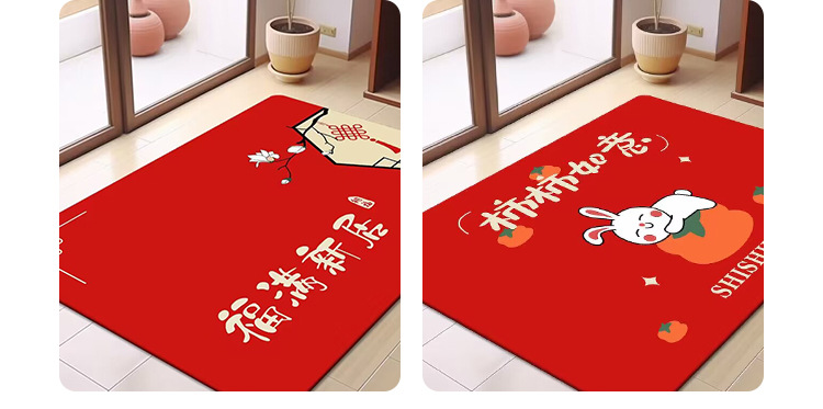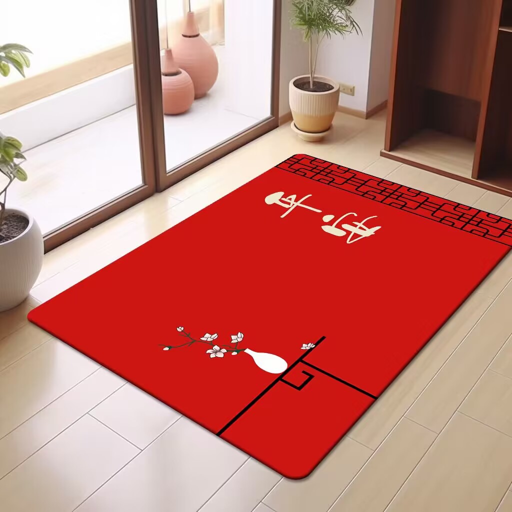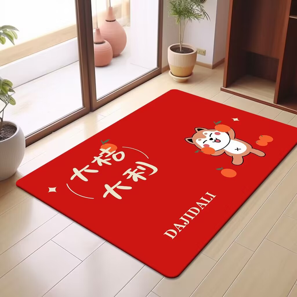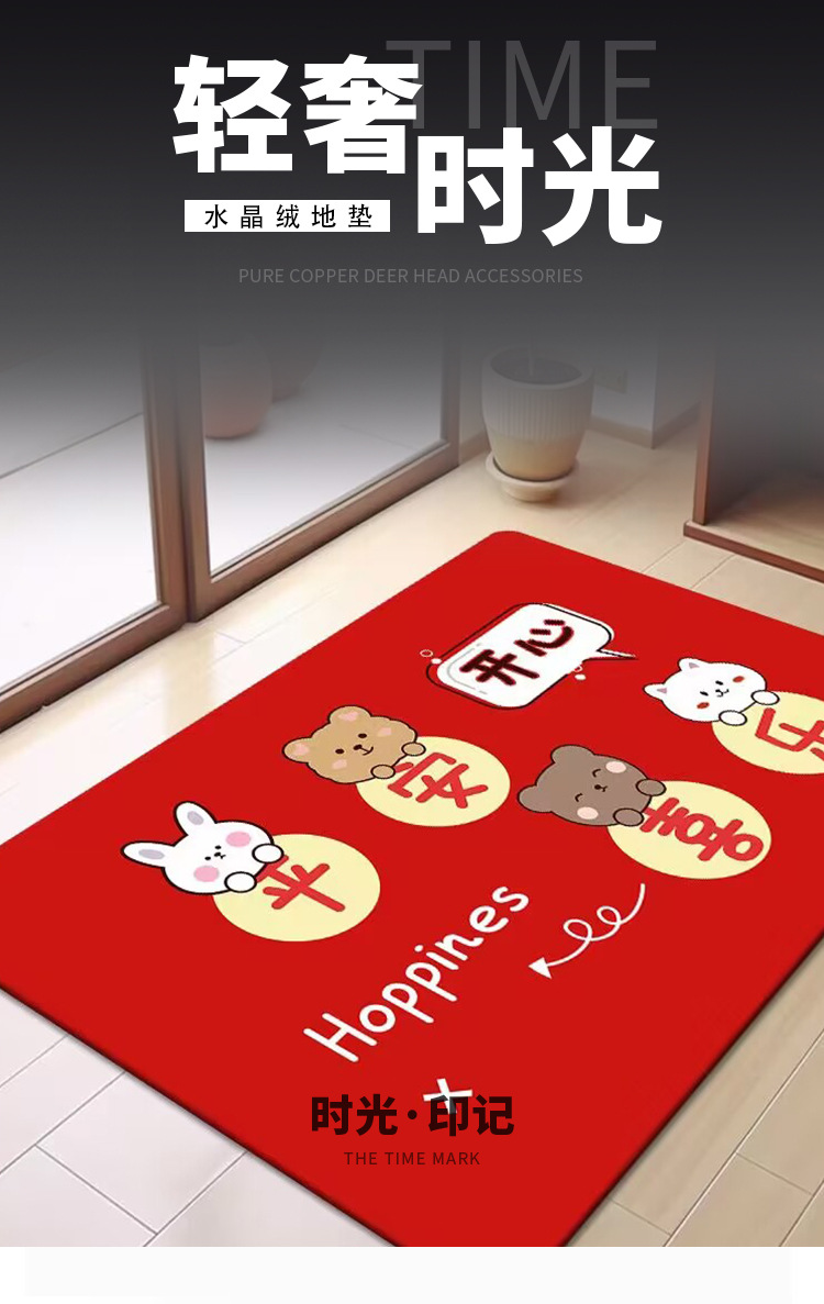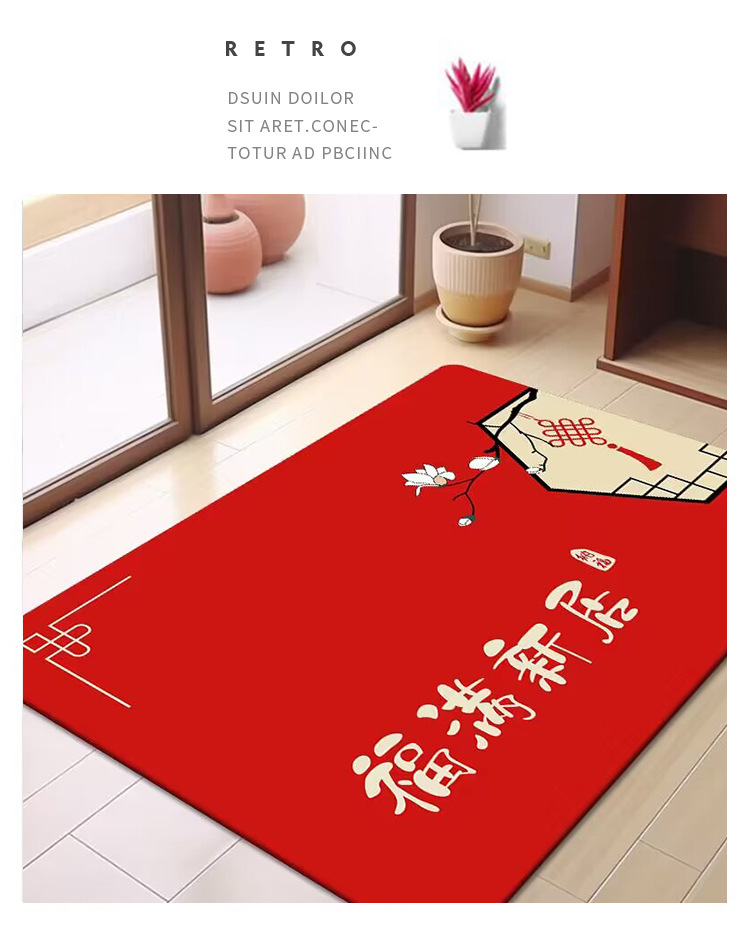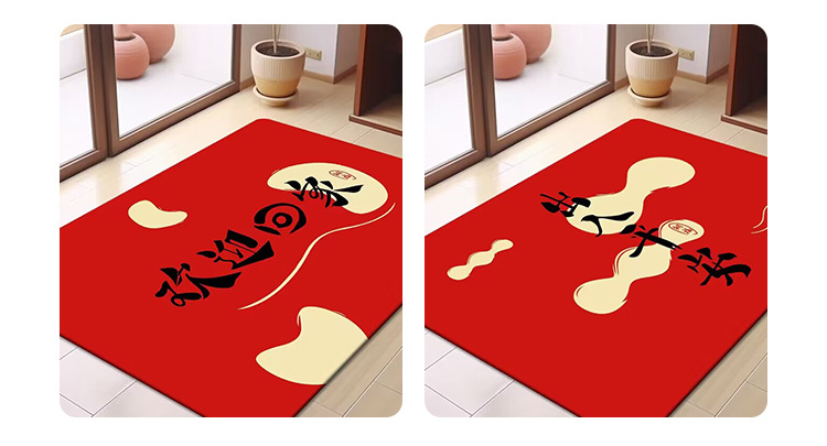 축제 텍스트 레드 바닥 매트 흡수성 미끄럼 방지 입구 바닥 매트 더러움 방지 좋은 방음 크리스탈 벨벳 홈 바닥 매트