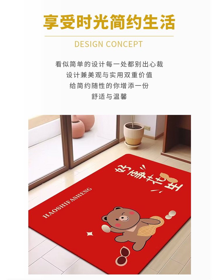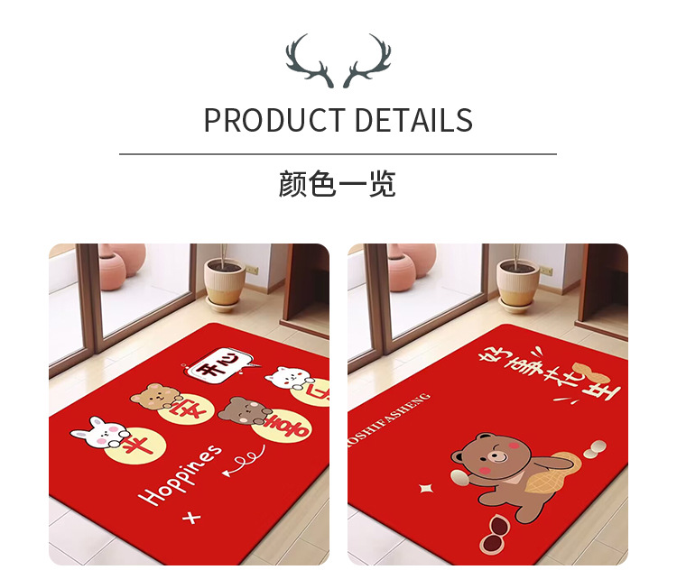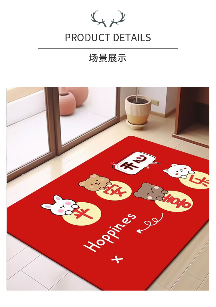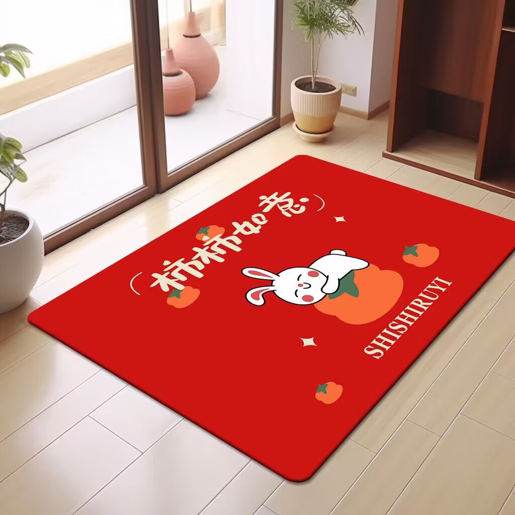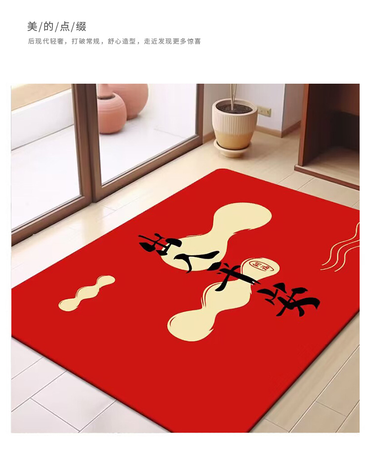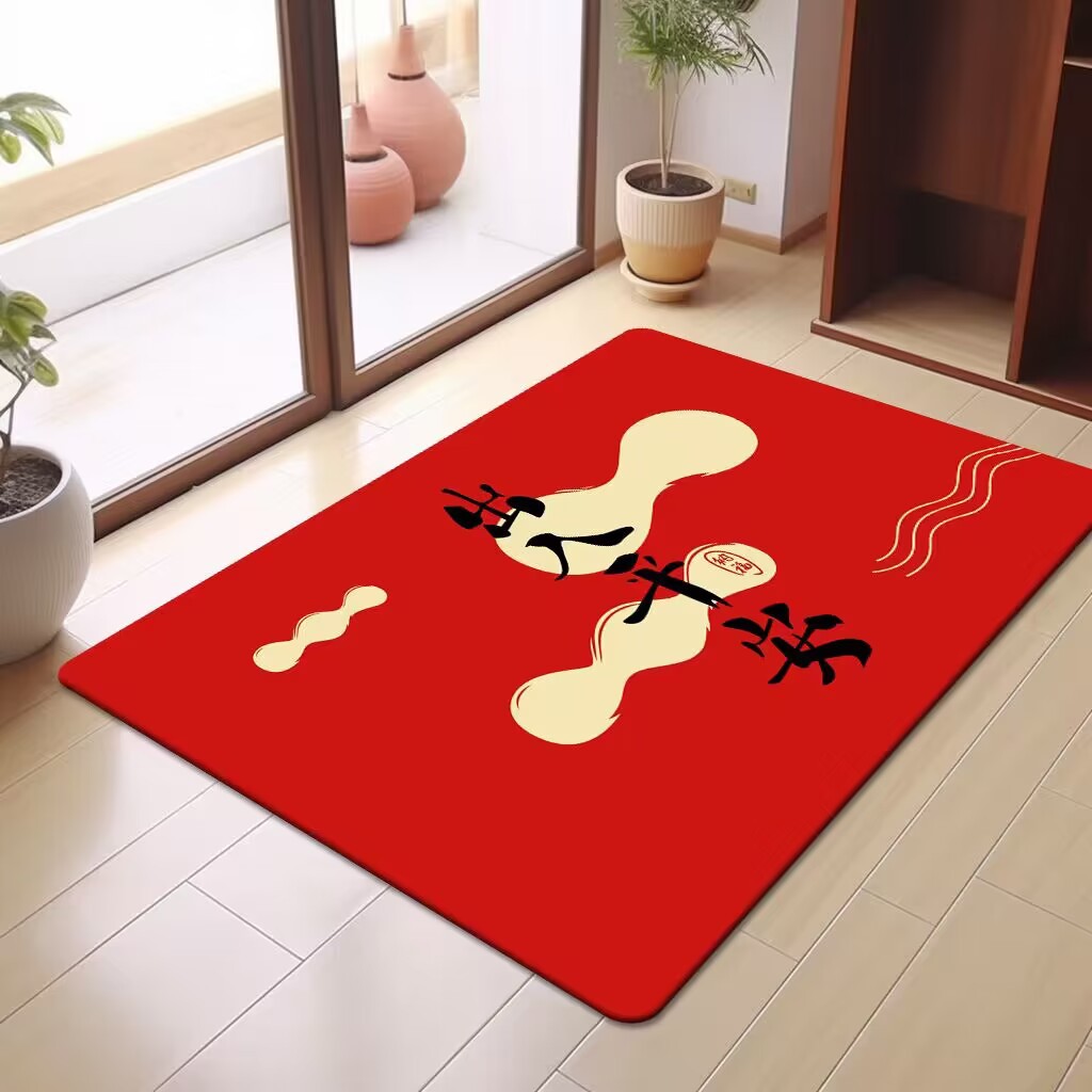 축제 텍스트 레드 바닥 매트 흡수성 미끄럼 방지 입구 바닥 매트 더러움 방지 좋은 방음 크리스탈 벨벳 홈 바닥 매트