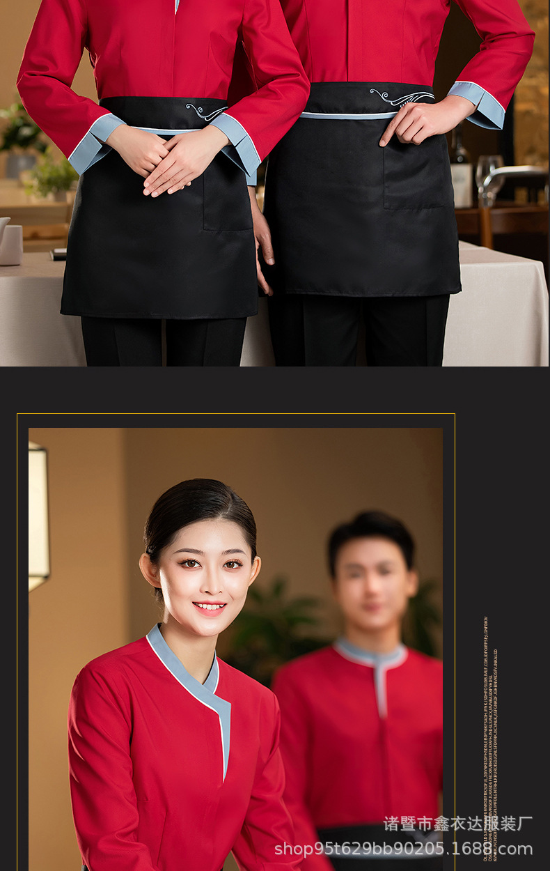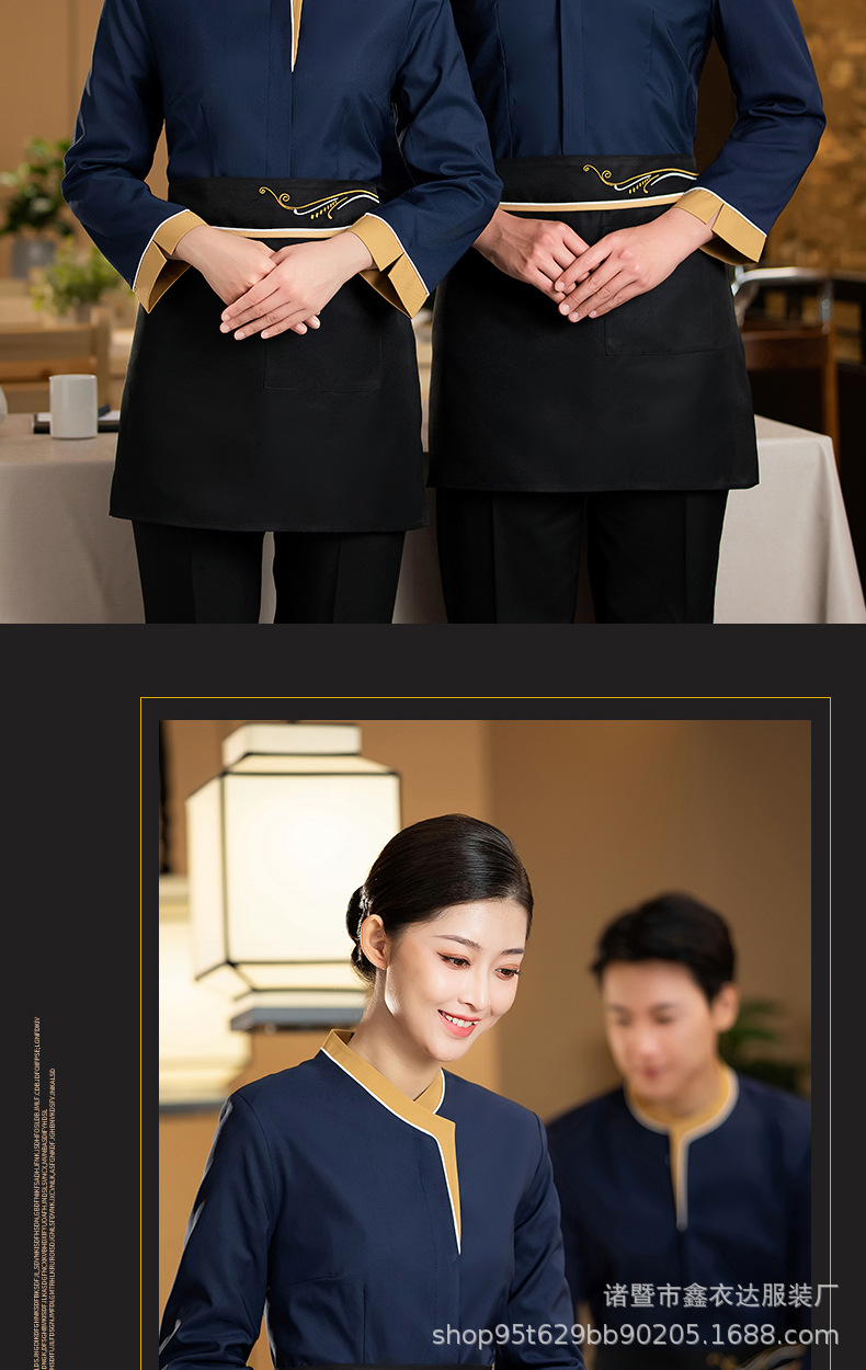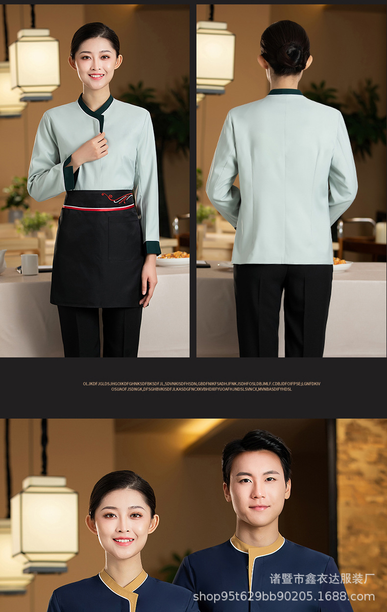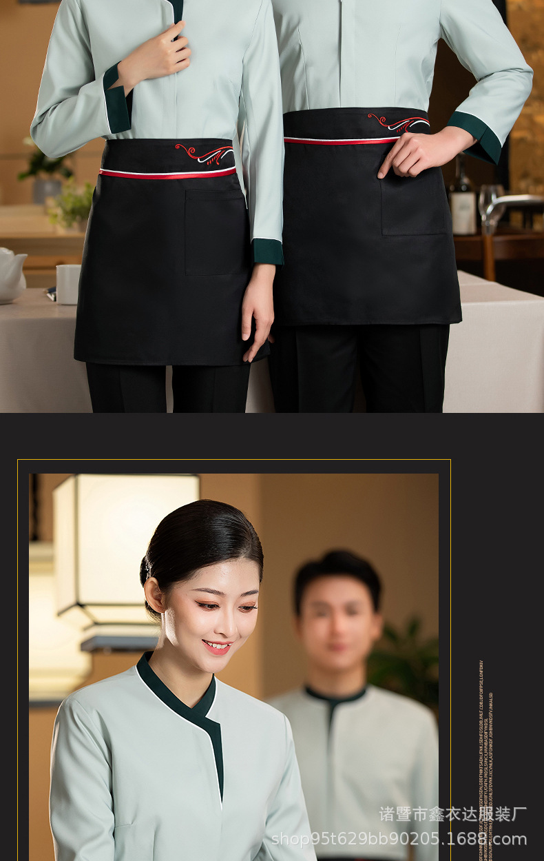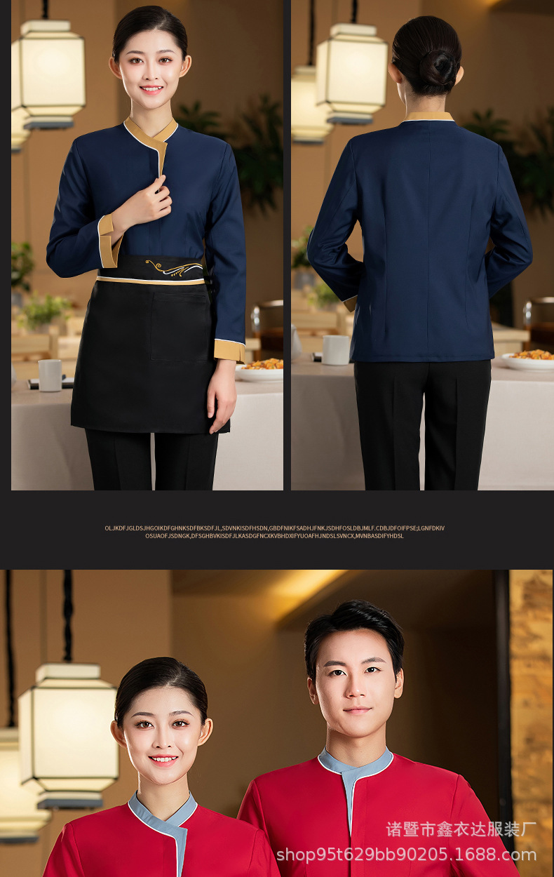 새로운 중국 호텔 프론트 오피스 케이터링 참석자 작업복 여성 고급 레스토랑 냄비 호텔 긴 소매 가을과 겨울 옷 남성스토어 가기