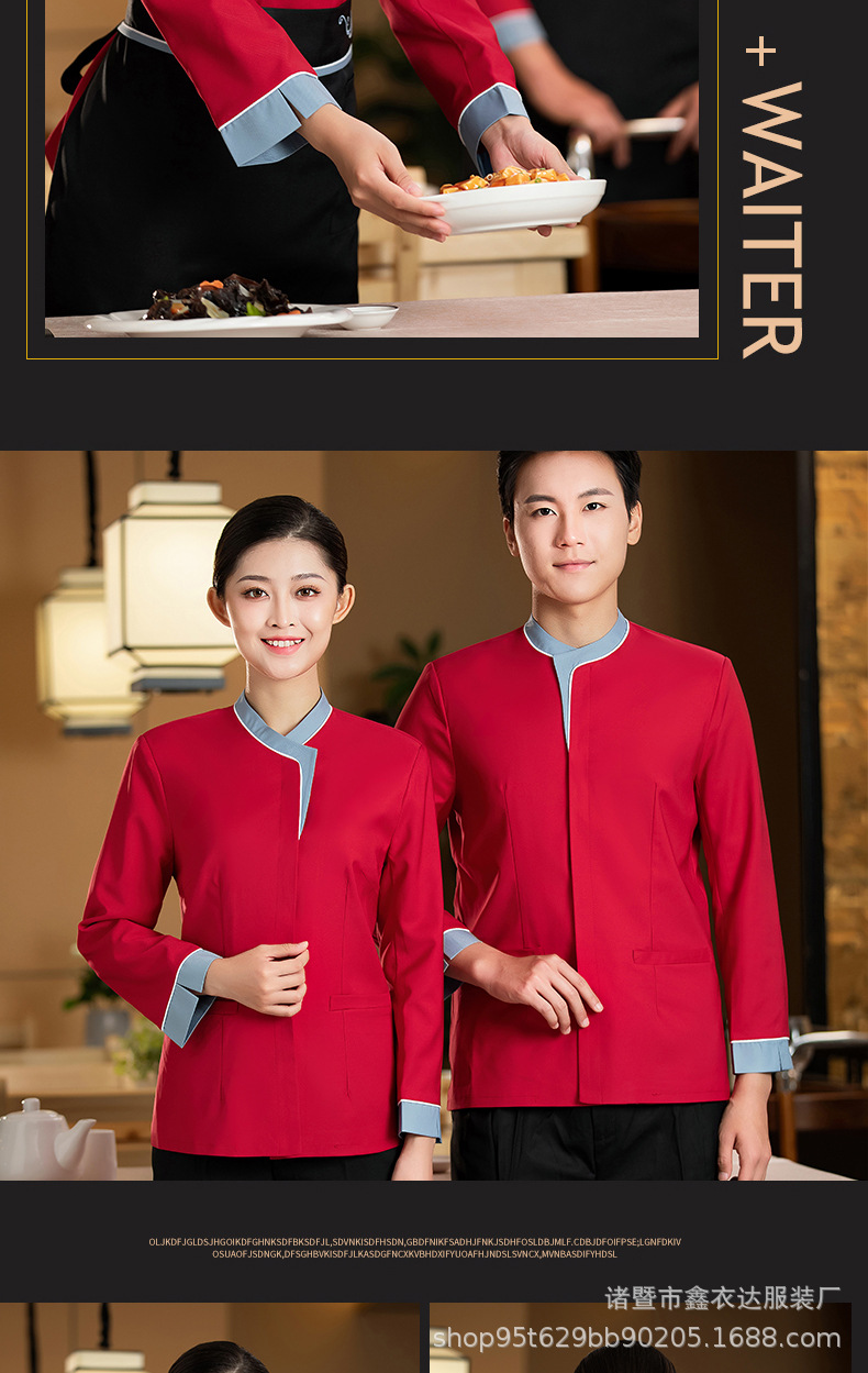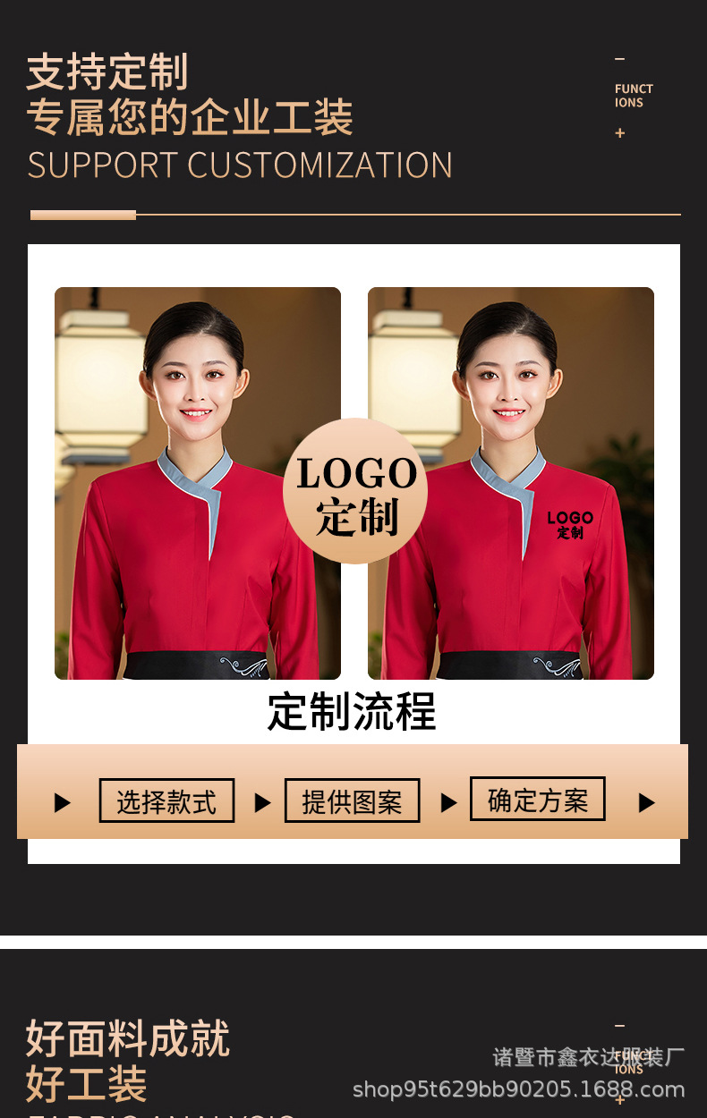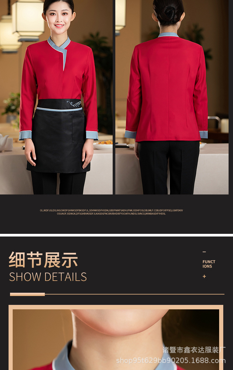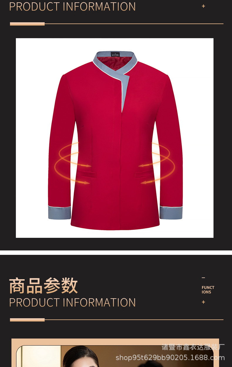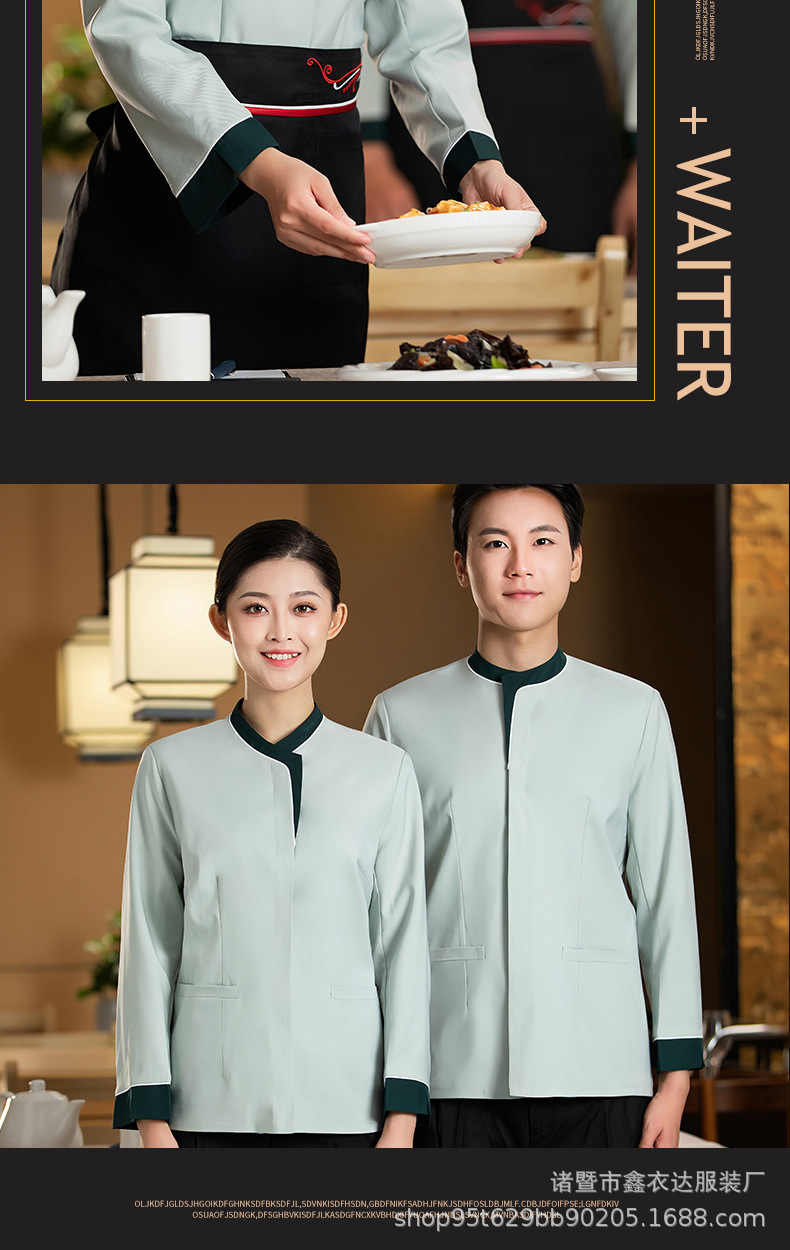 새로운 중국 호텔 프론트 오피스 케이터링 참석자 작업복 여성 고급 레스토랑 냄비 호텔 긴 소매 가을과 겨울 옷 남성스토어 가기