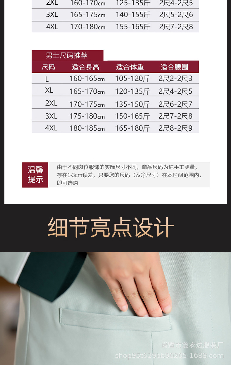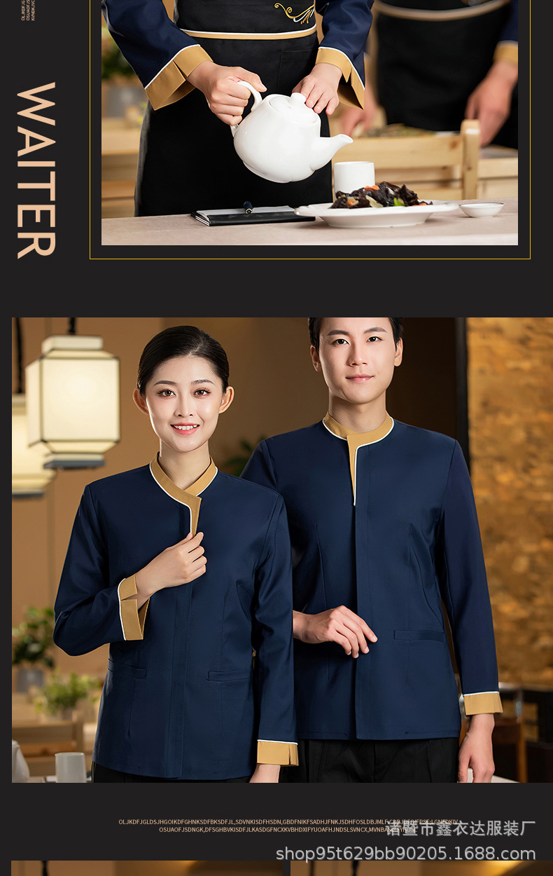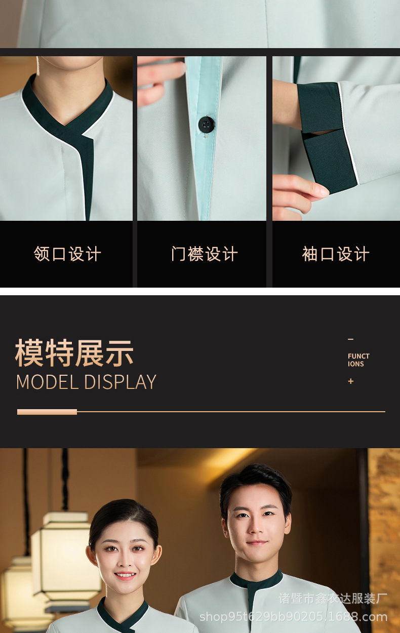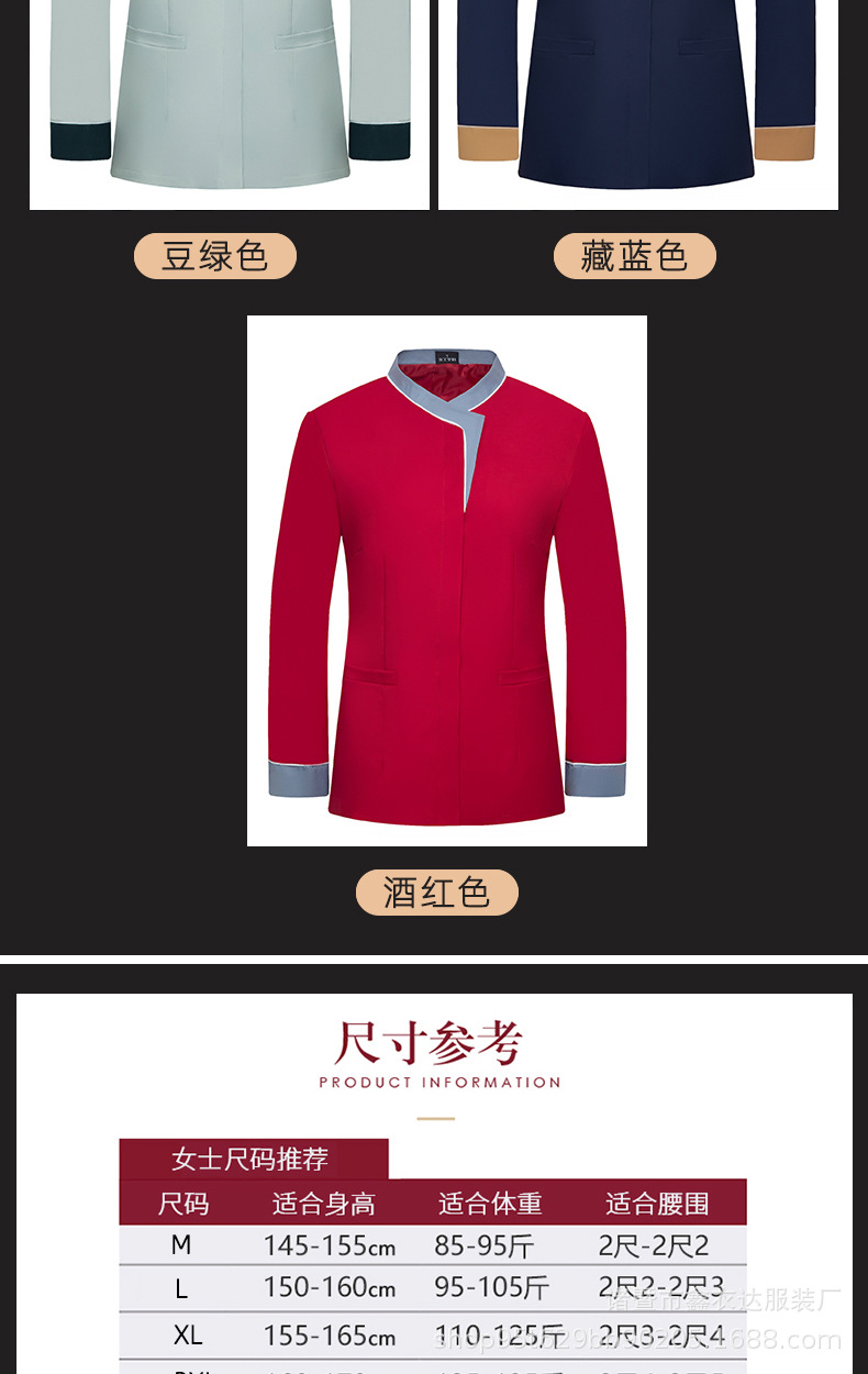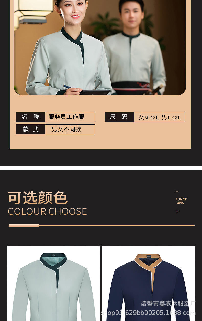 새로운 중국 호텔 프론트 오피스 케이터링 참석자 작업복 여성 고급 레스토랑 냄비 호텔 긴 소매 가을과 겨울 옷 남성스토어 가기