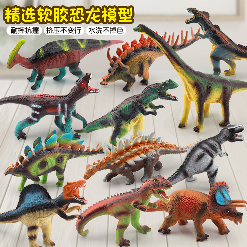 어린이 대형 시뮬레이션 부드러운 고무 공룡 장난감 앉아 티라노사우루스 트리케라톱스 소년 비닐 마구간 도매스토어 가기