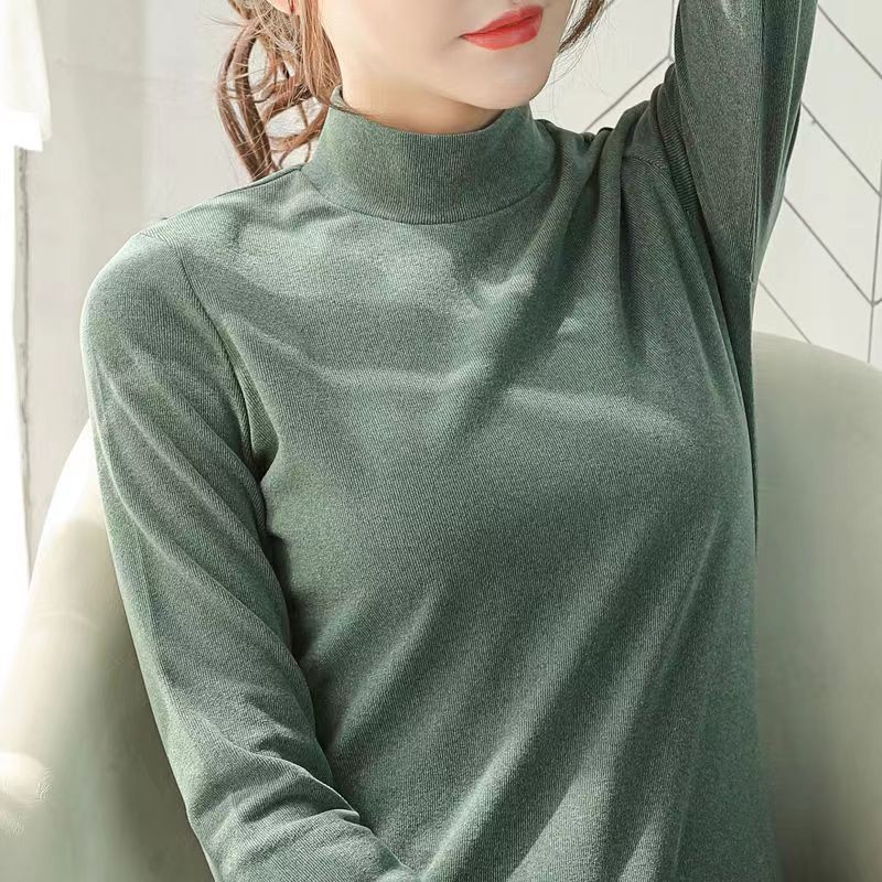 양면 벨벳 따뜻한 바닥 셔츠 여성의 가을과 겨울 단색 탑 한국 여성의 기모 슬림 핏 티셔츠 긴 소매 여성 의류스토어 가기