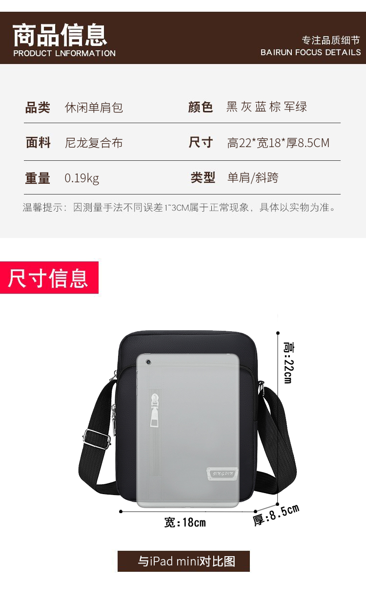 새로운 남성 숄더백 메신저 가방 휴대 전화 캐주얼 패션 트렌디 캔버스 가방 여행 배낭 대용량 남성 가방