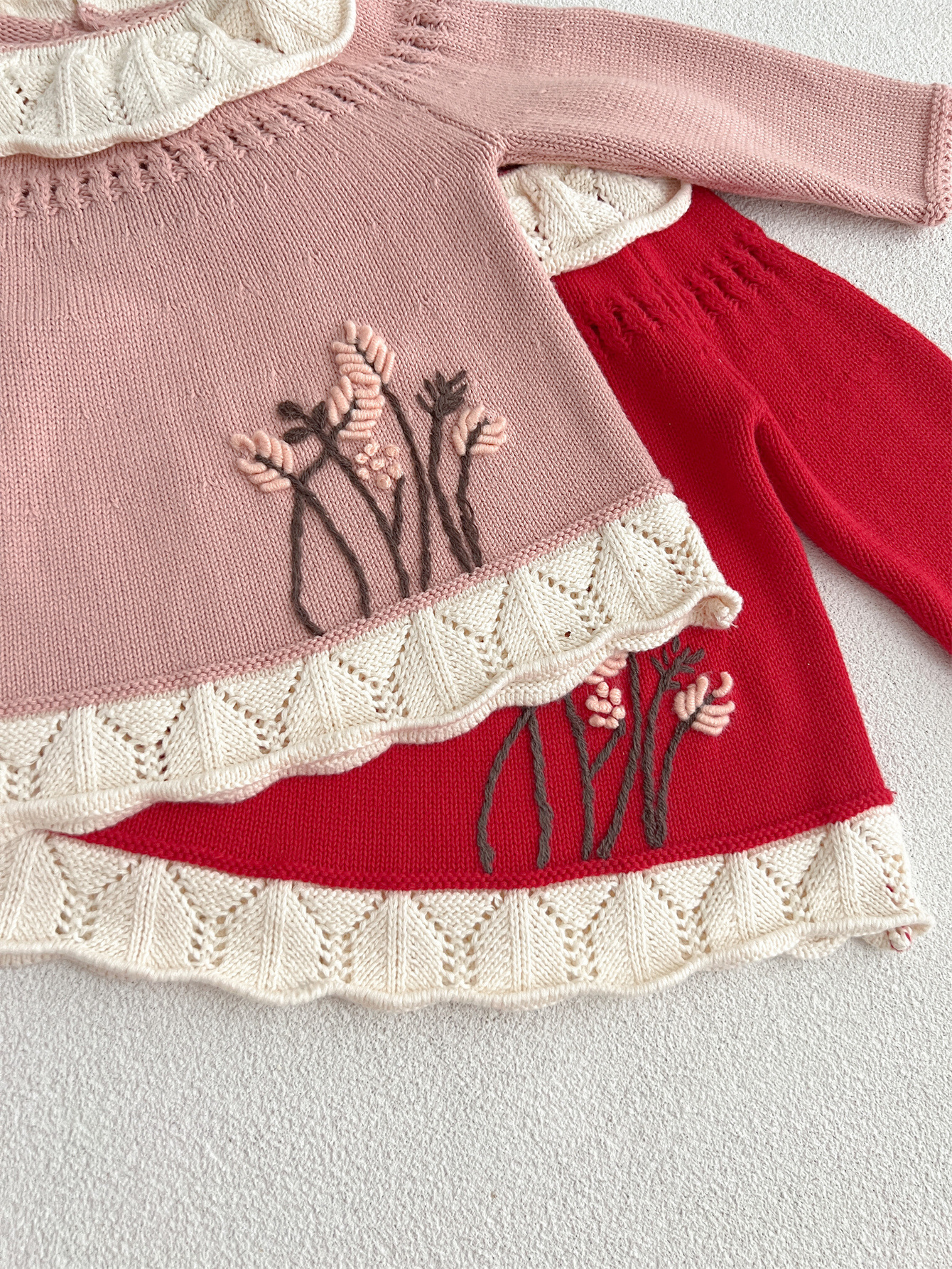 INS 가을 아기 소녀 새로운 아기 니트 스커트 스웨터 소녀의 수제 자수 스웨터 코트 탑
