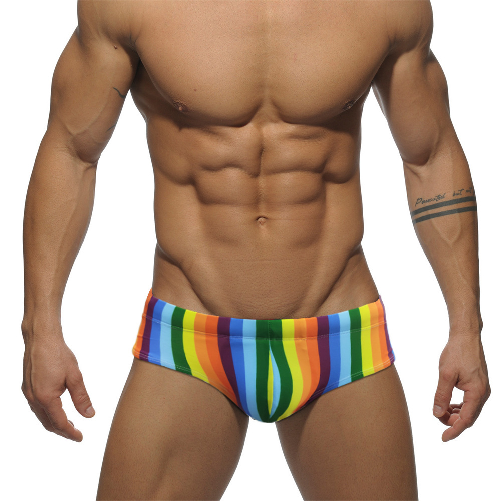 UXH 남성용 다채로운 스트라이프 섹시 멀티 컬러 인쇄 삼각형 수영 트렁크 유럽과 미국 대외 무역 해변 온천 브리프 남성스토어 가기