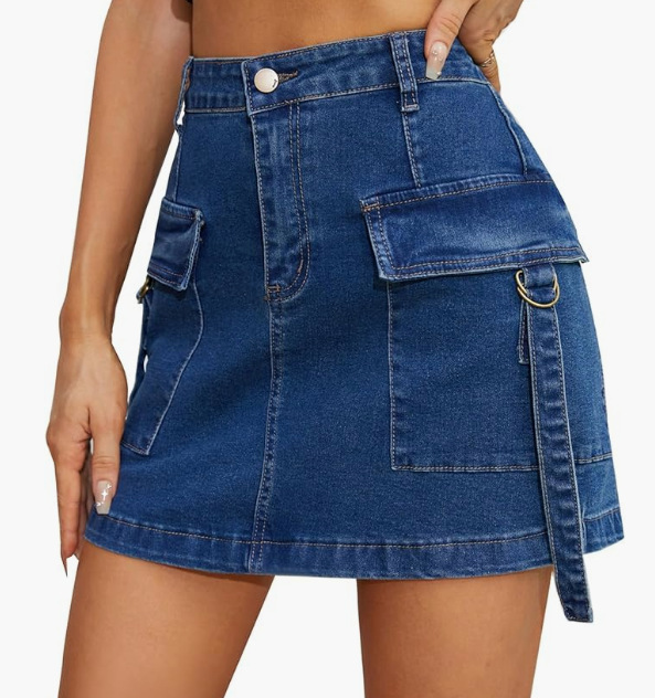 크로스 보더 2023 아마존 새로운 여성의 낮은 허리 작업복 스커트 포켓 순면 미니 편안한 엉덩이 캐주얼 스커트