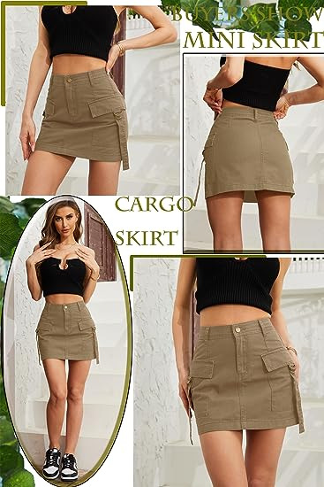 크로스 보더 2023 아마존 새로운 여성의 낮은 허리 작업복 스커트 포켓 순면 미니 편안한 엉덩이 캐주얼 스커트스토어 가기