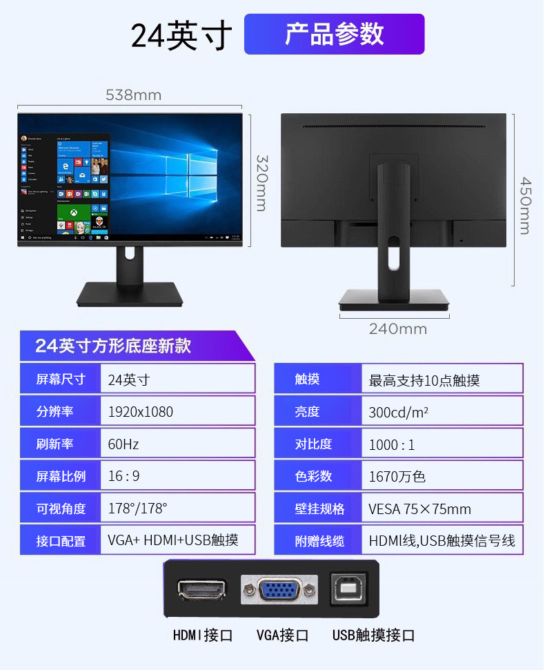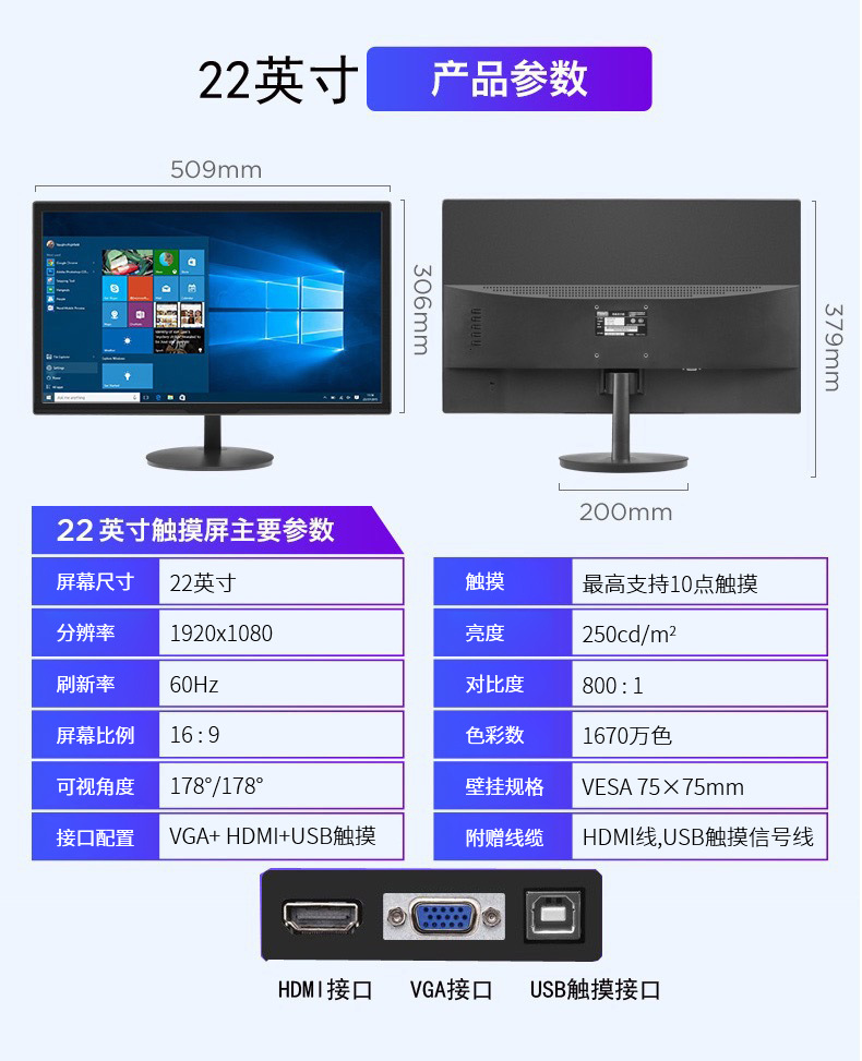 19 인치 터치 디스플레이 22 인치 터치 컴퓨터 디스플레이 24 인치 커패시터 산업 제어 터치 디스플레이