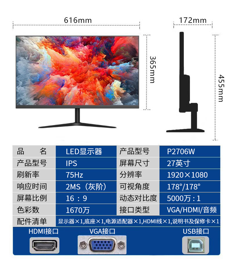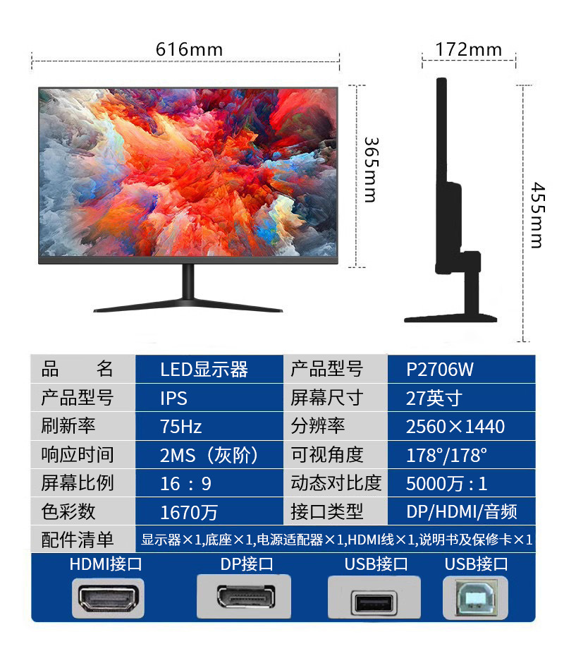 • 27inch Boundless 2KUSB 버전/표준 베이스