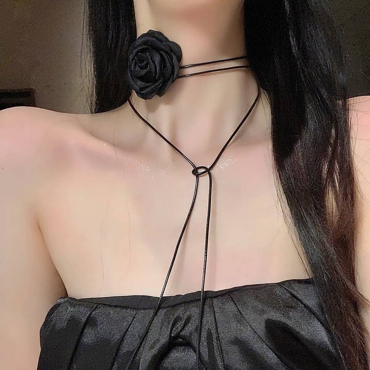 동백 목걸이 여성용 목 액세서리 초커 칼라 블랙 로즈 목걸이 쇄골 체인 목걸이