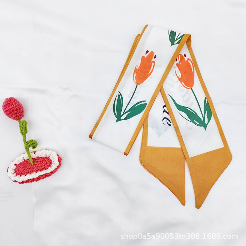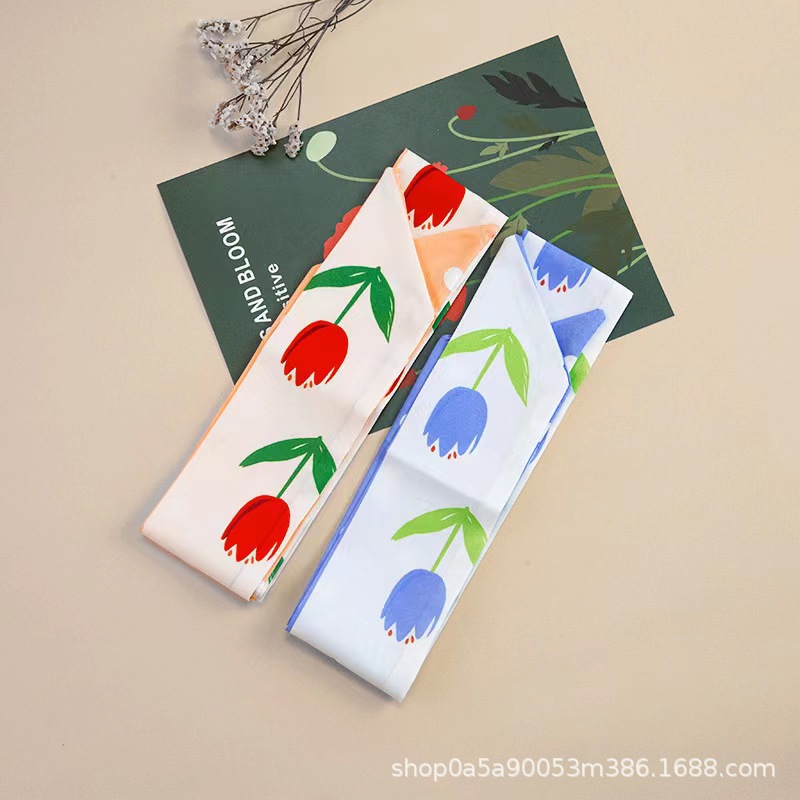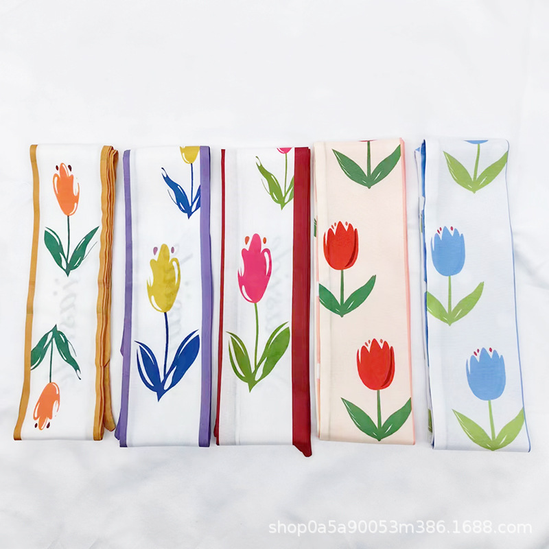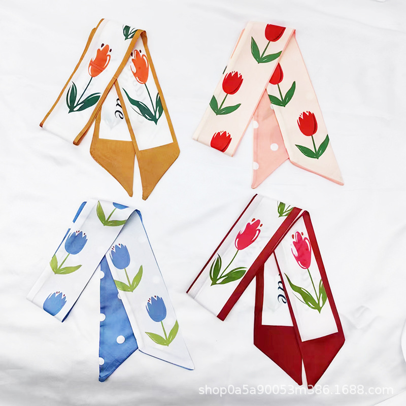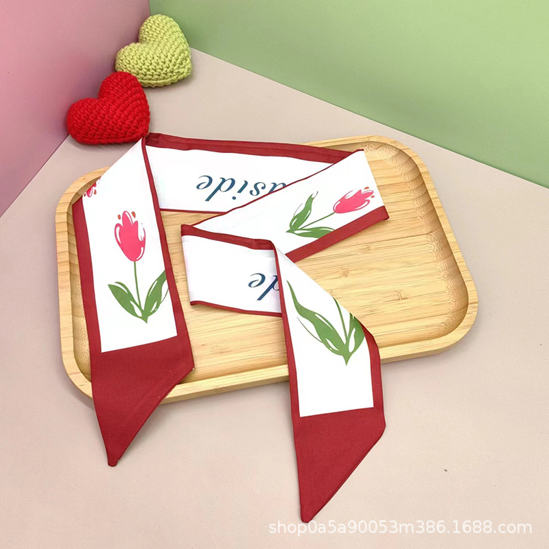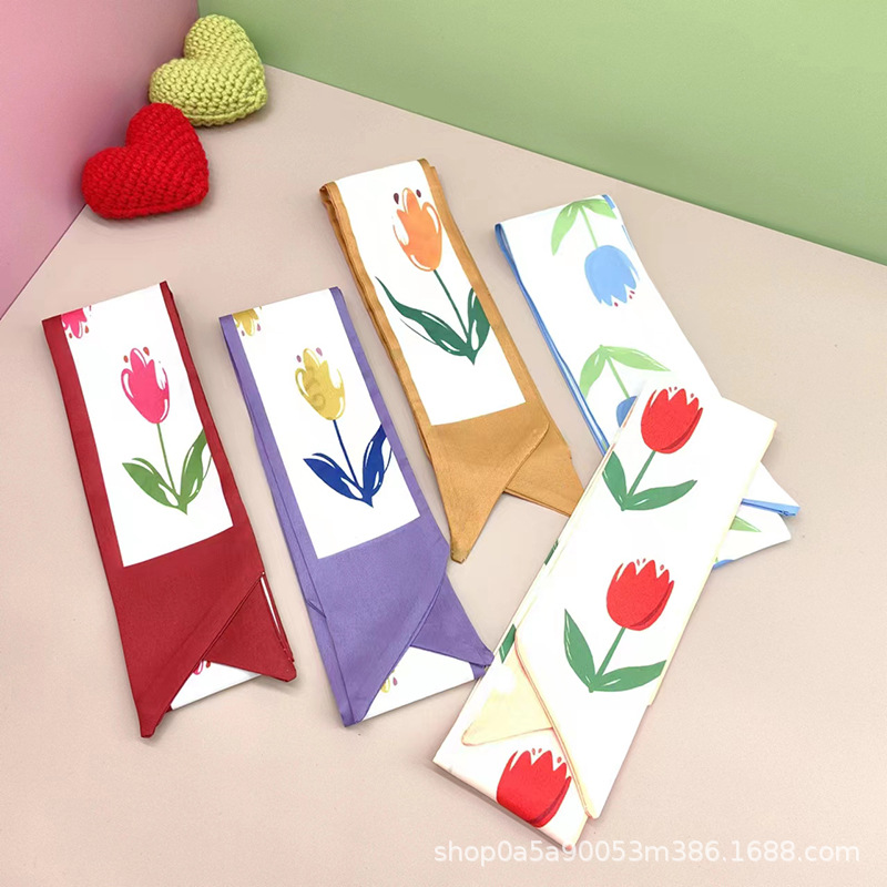 튤립 타이 백 실크 스카프 인쇄 얇은 좁은 긴 뾰족한 리본 헤어 밴드 넥타이 리본 가방 선물 상자 의류 액세서리
