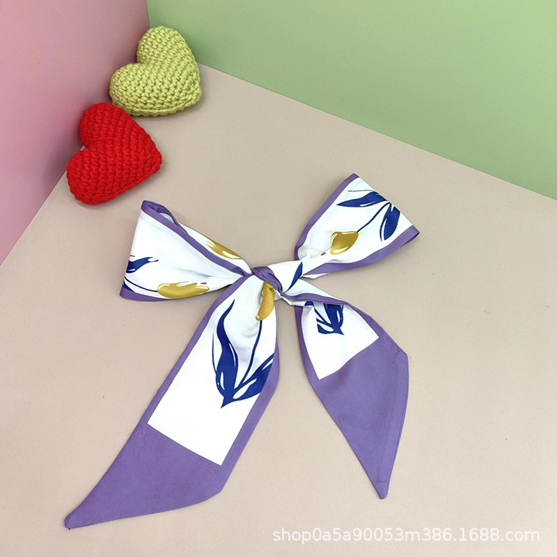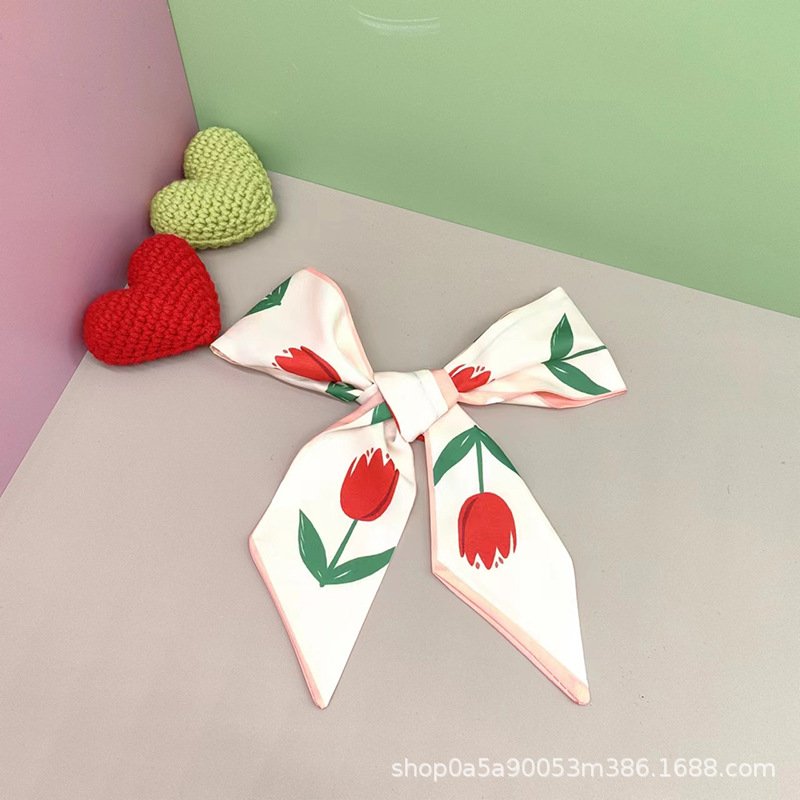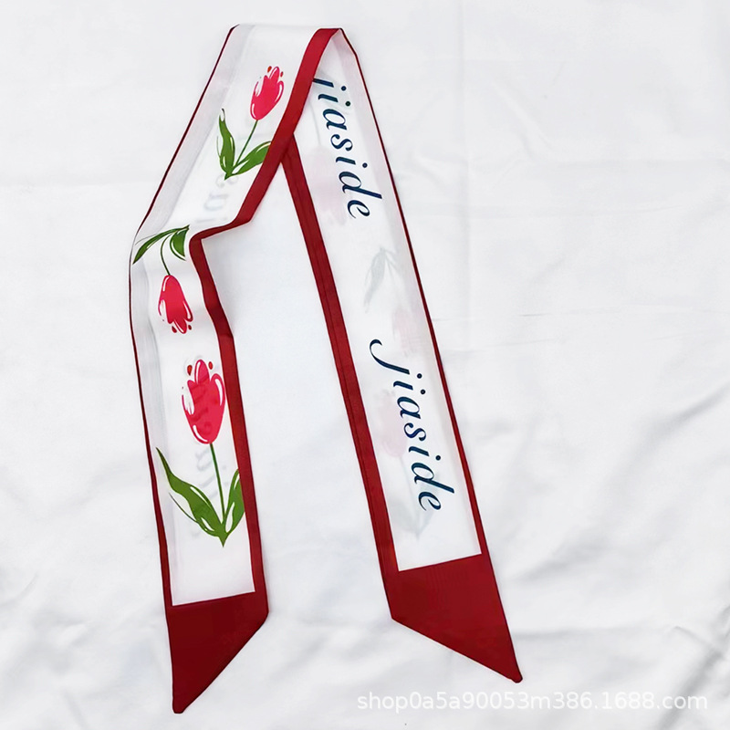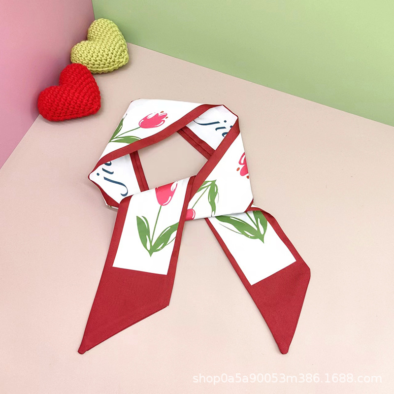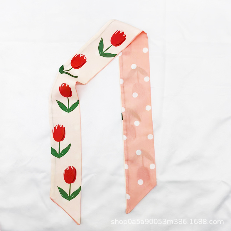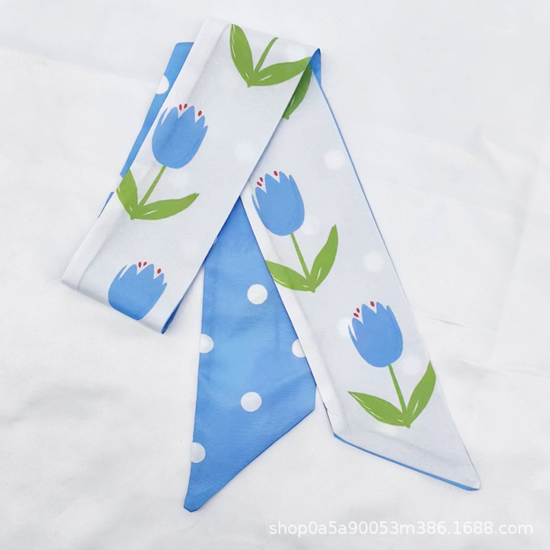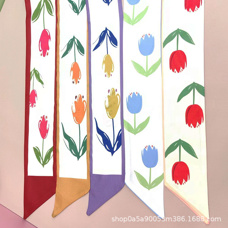 튤립 타이 백 실크 스카프 인쇄 얇은 좁은 긴 뾰족한 리본 헤어 밴드 넥타이 리본 가방 선물 상자 의류 액세서리