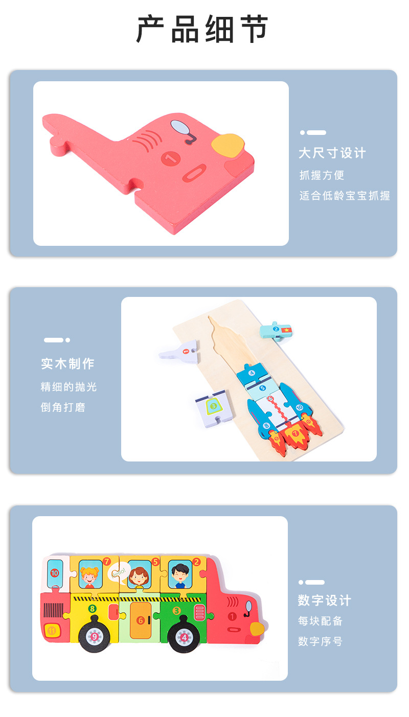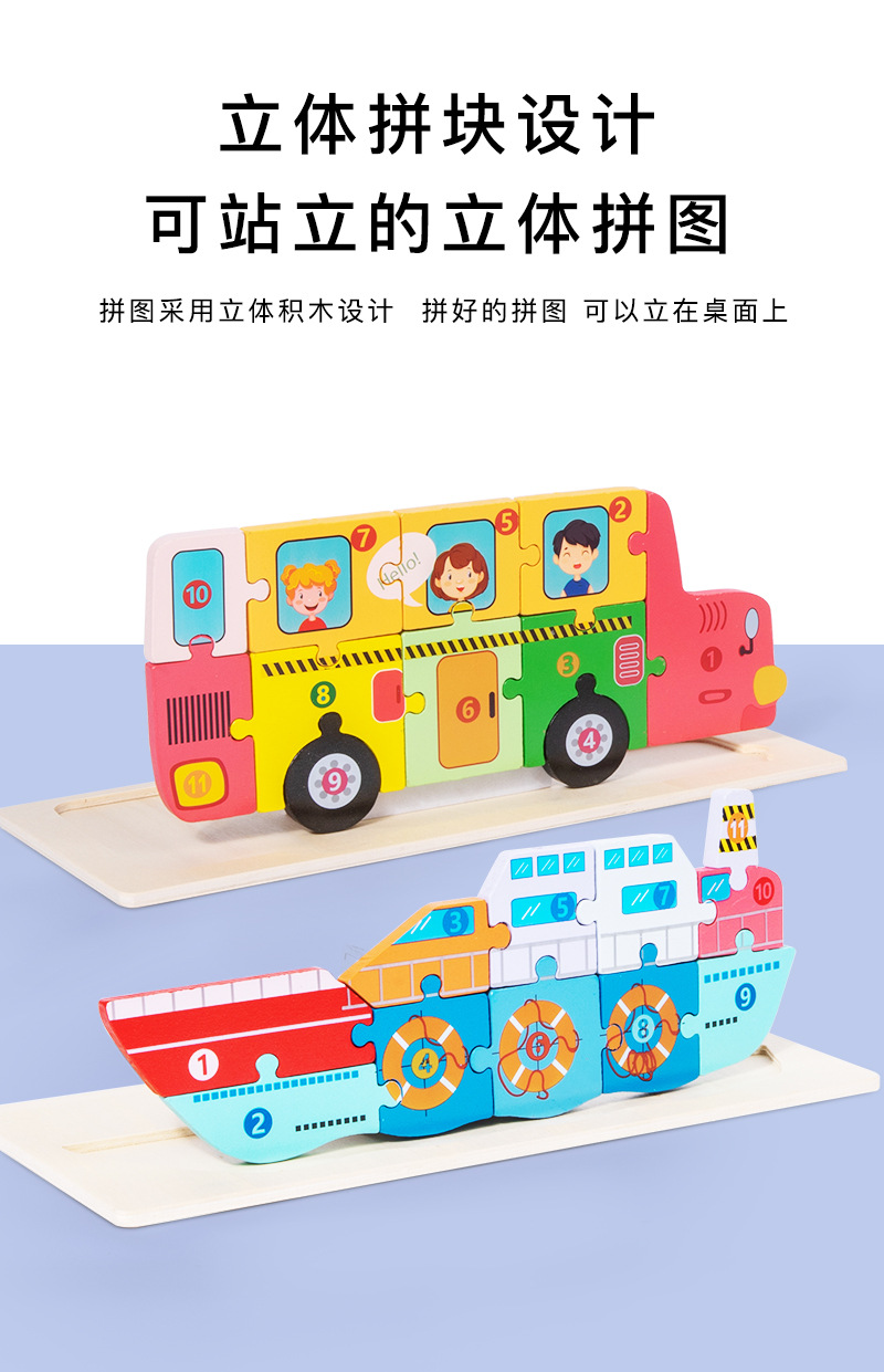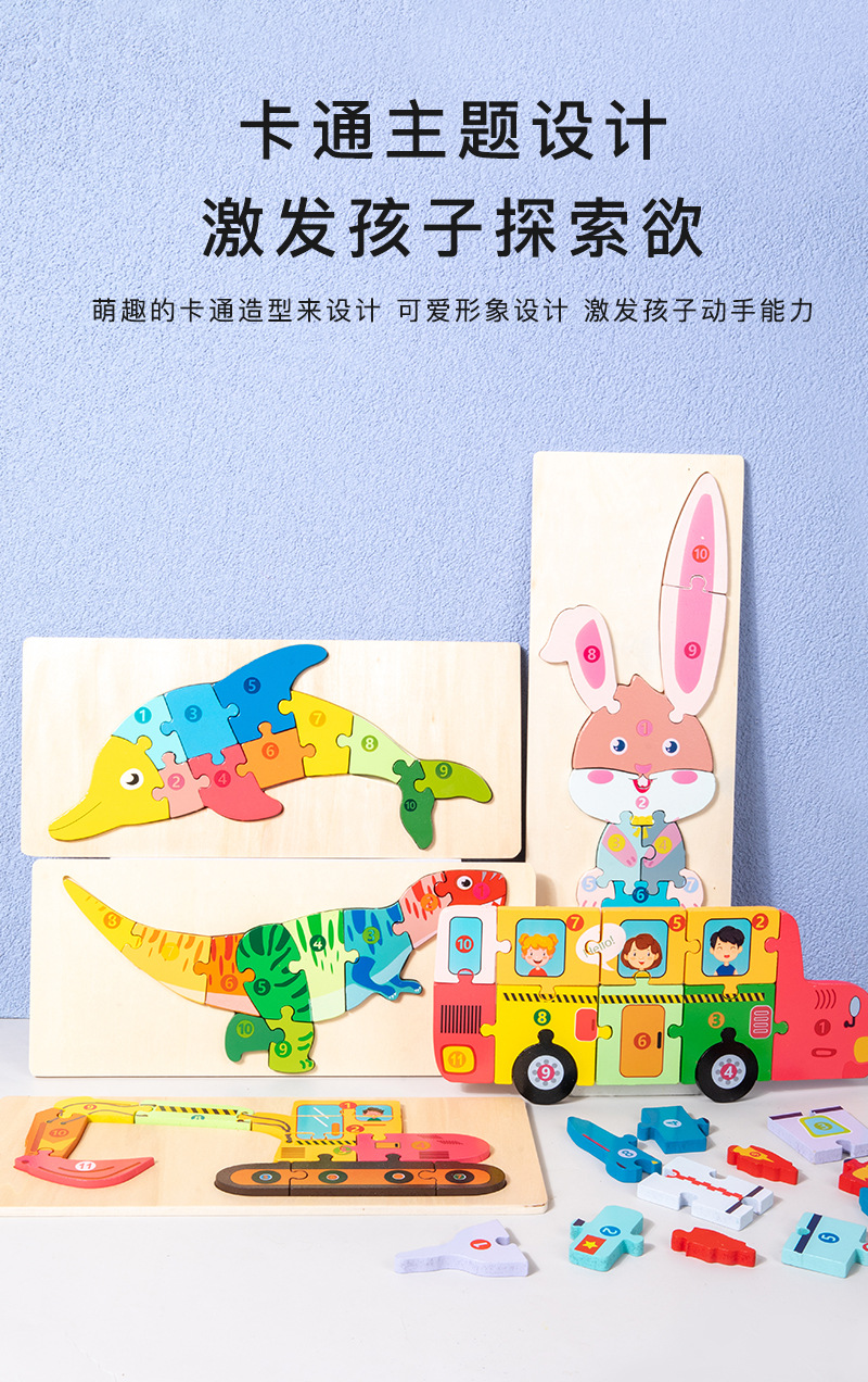 나무 입체 귀여운 만화 동물 직소 퍼즐 보드 대형 버클 어린이 교육 조기 교육 장난감 빌딩 블록 도매스토어 가기