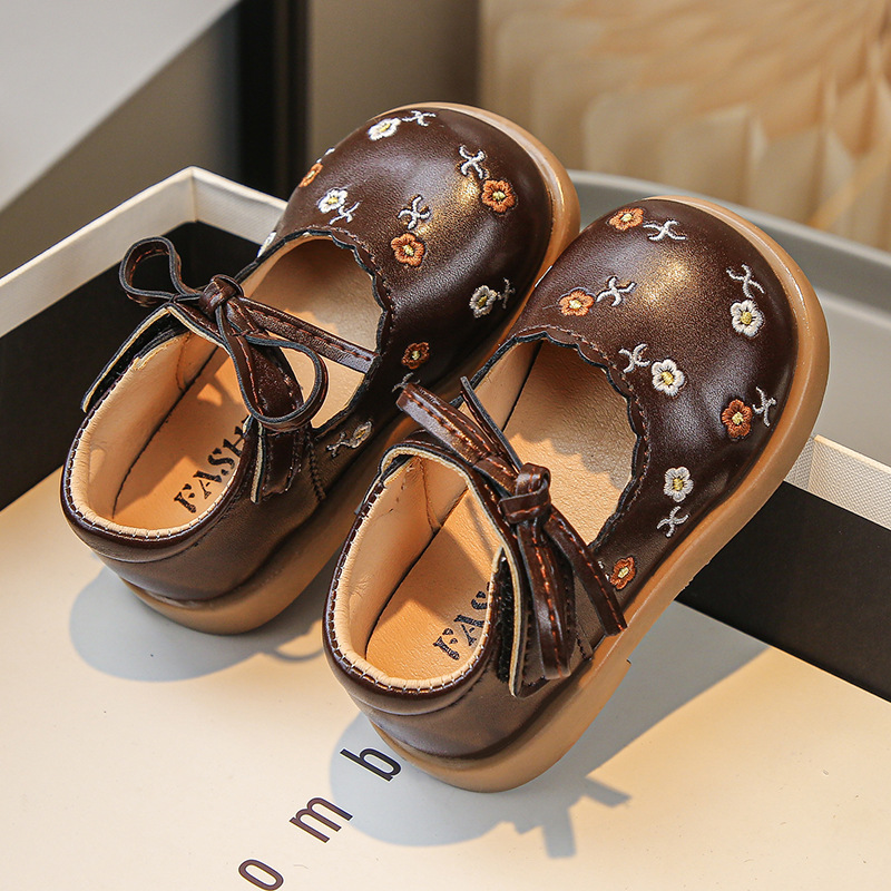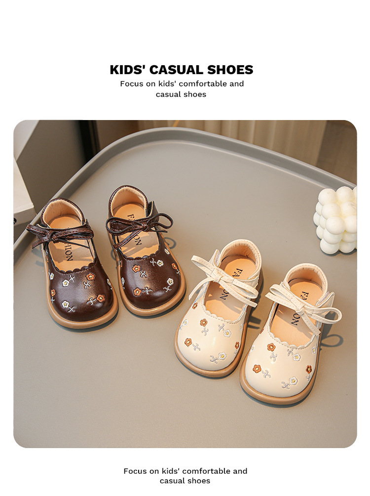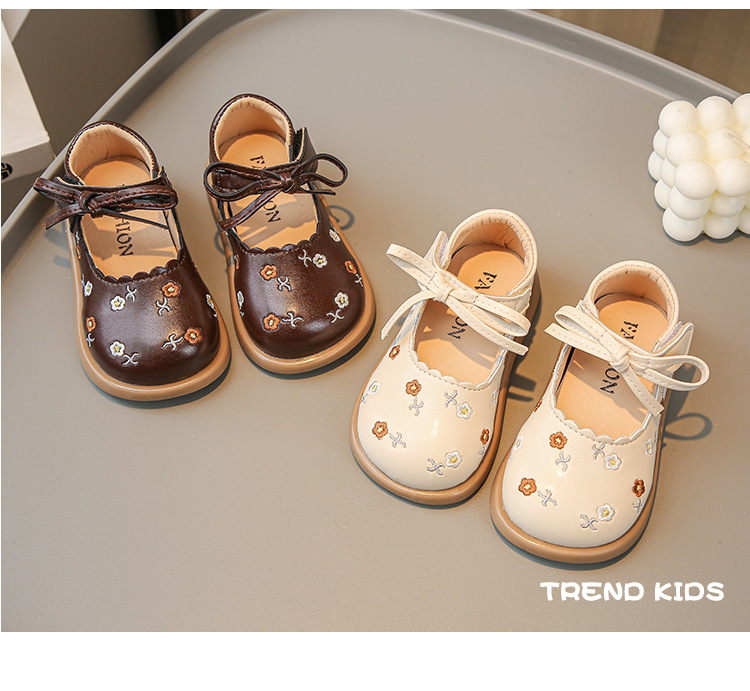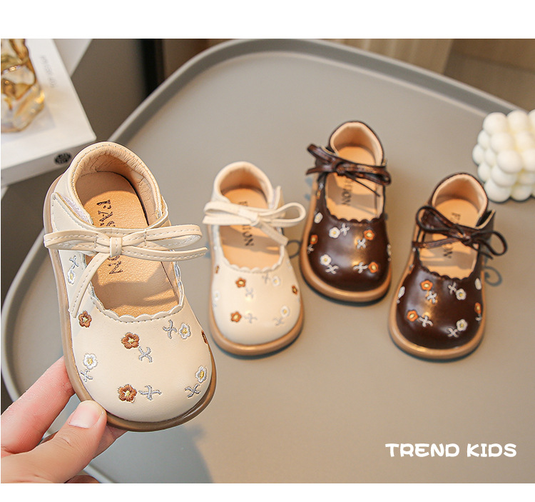 소녀 싱글 레이어 신발 2023 가을 새로운 어린이 캐주얼 활 자수 공주 신발 어린이 부드러운 바닥 완두콩 신발스토어 가기