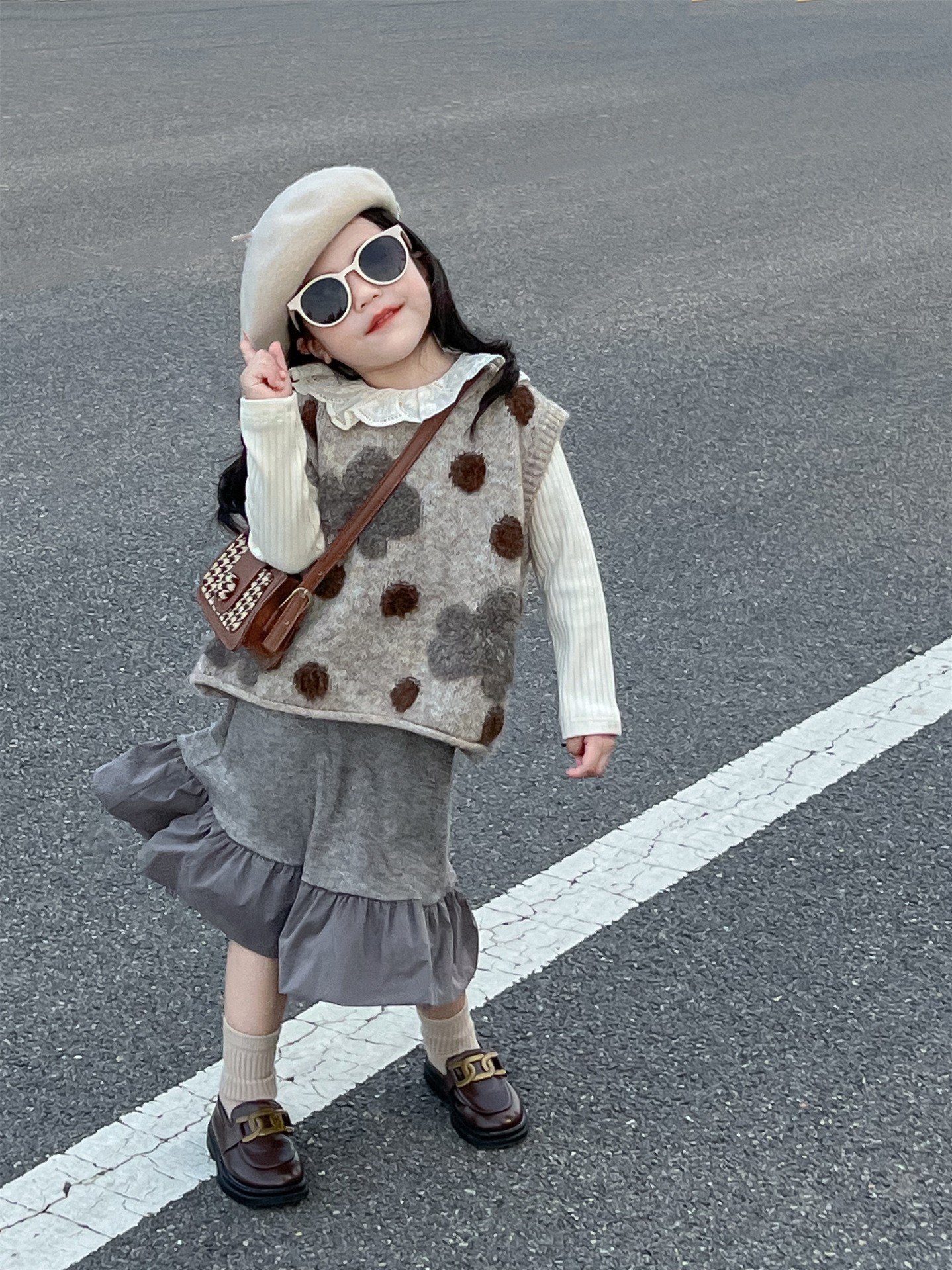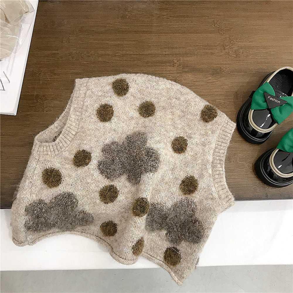 여아 스웨터 조끼 가을 여성 아기 한국 스타일 서양 스타일 캐주얼 니트 조끼 어린이 조끼 세트 대외 무역스토어 가기