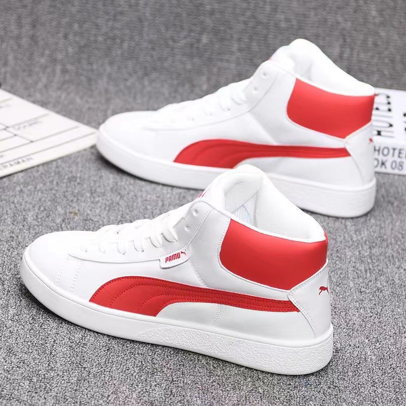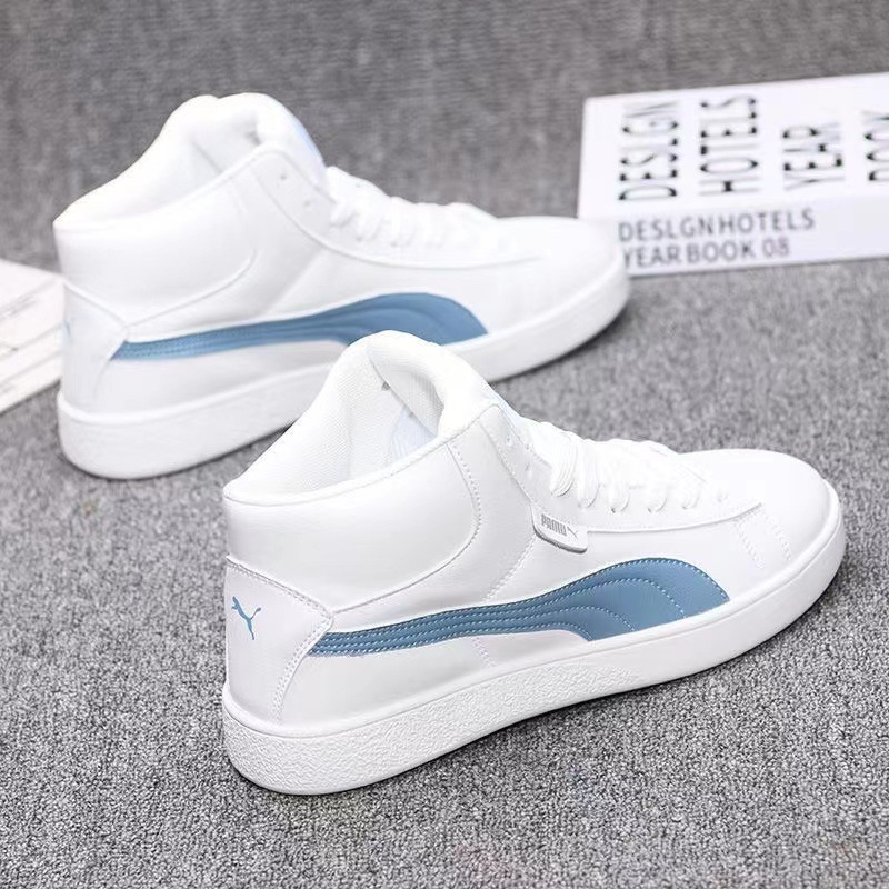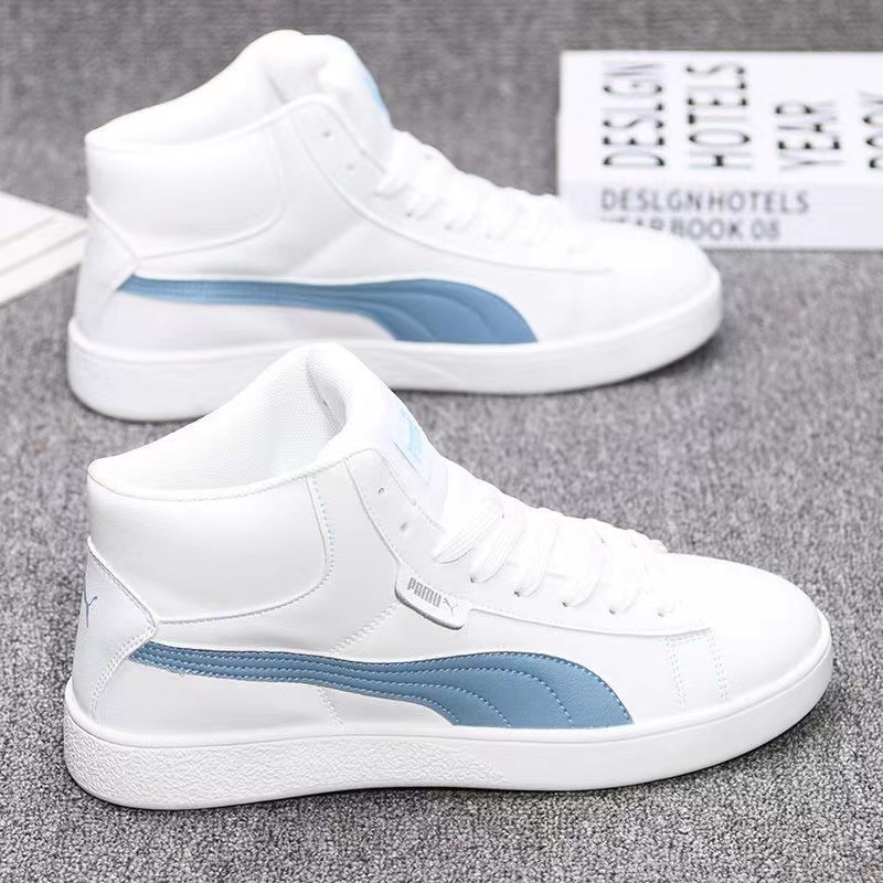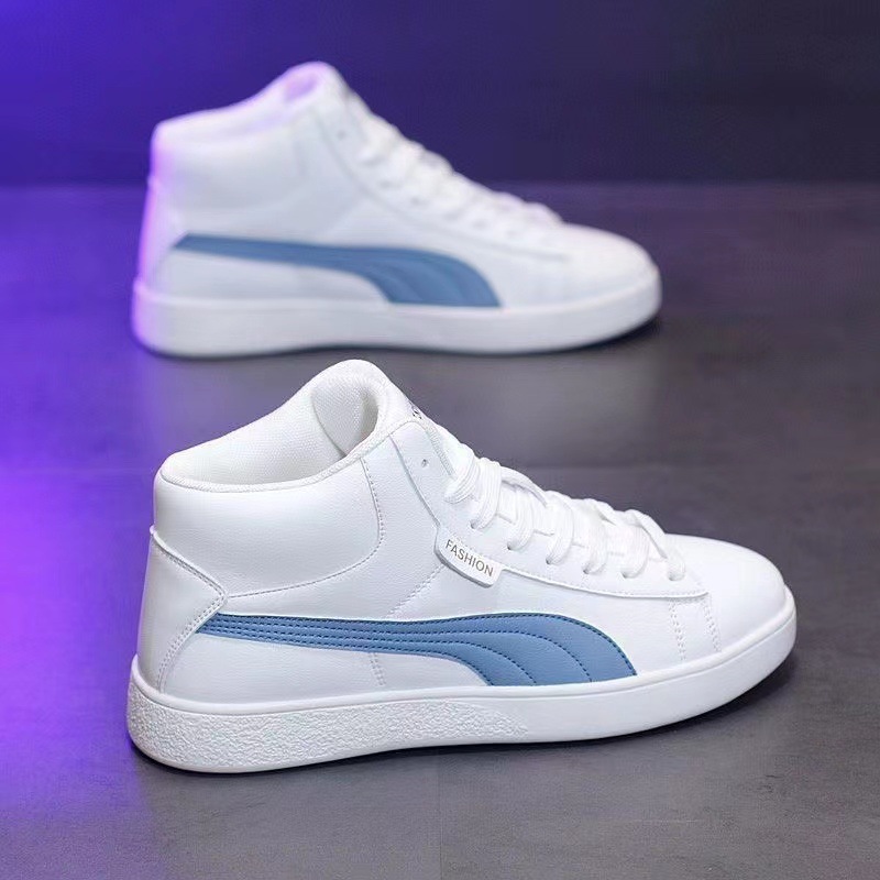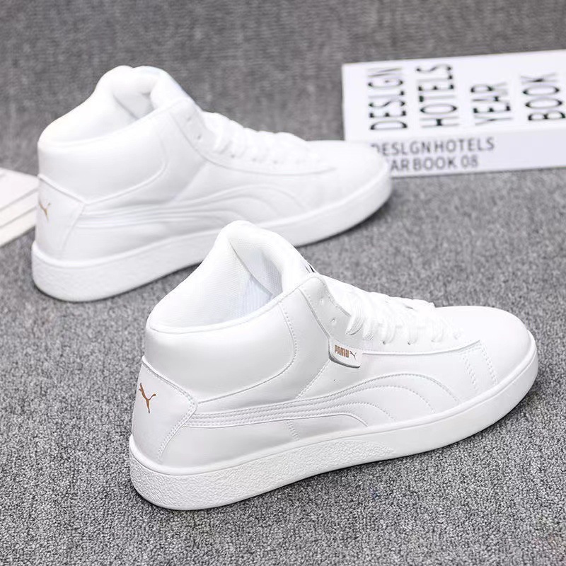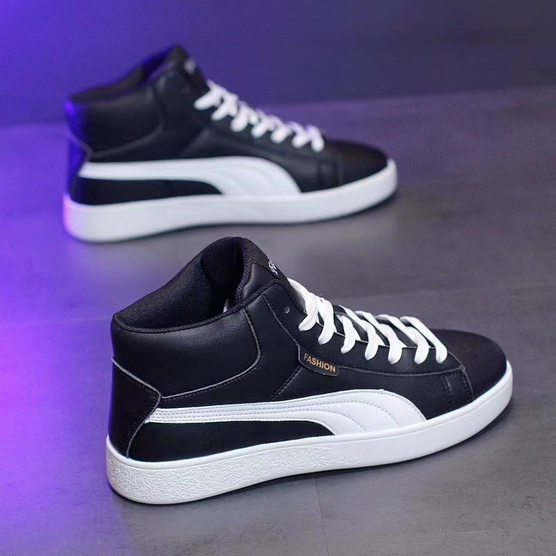 가죽 하이탑 남성 신발 가을 새로운 캐주얼 신발 한국식 모든 매치 인테리어 높이 연인 운동화 스니커즈 남성과 여성스토어 가기