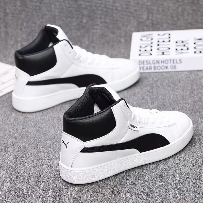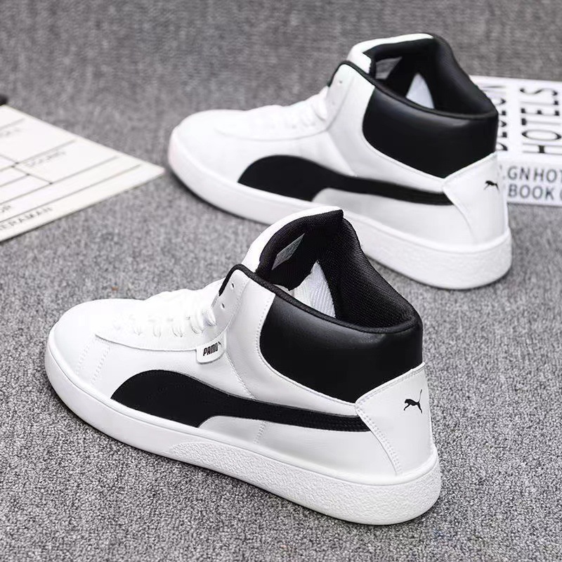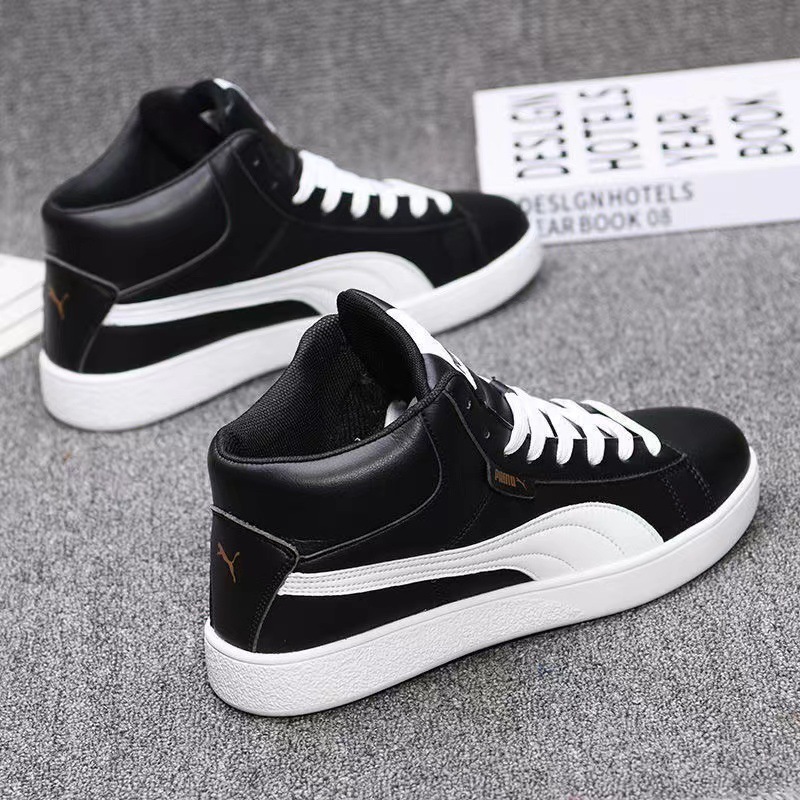 가죽 하이탑 남성 신발 가을 새로운 캐주얼 신발 한국식 모든 매치 인테리어 높이 연인 운동화 스니커즈 남성과 여성