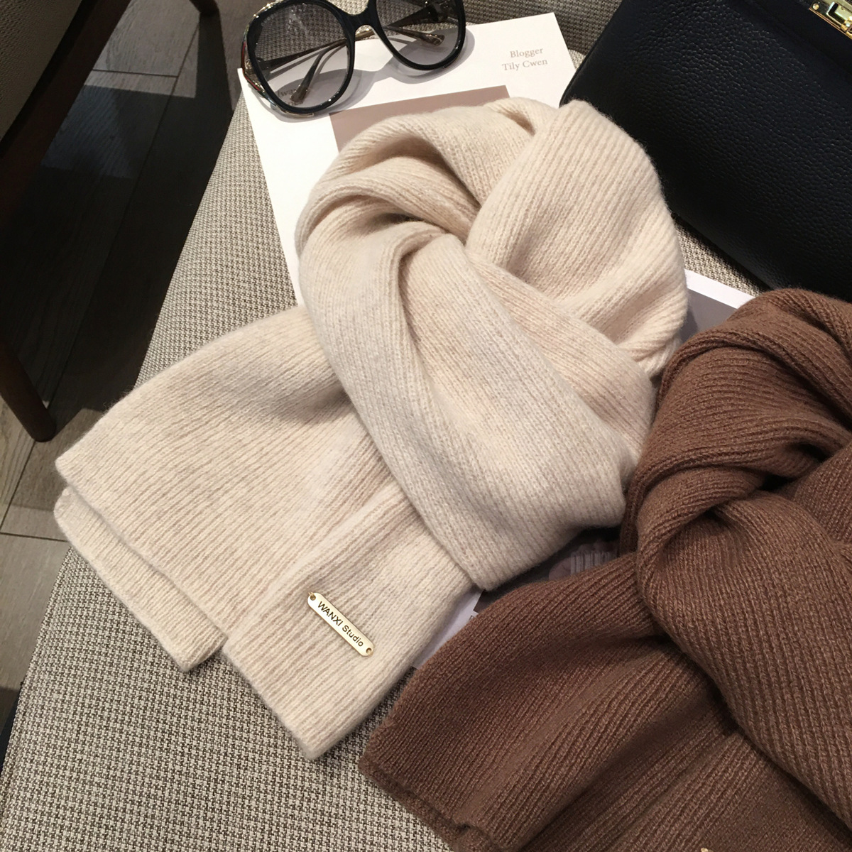 하이 퀄리티 148g 100% 호주 순수 울 스카프 여성 겨울 따뜻한 양면 커플 니트 스카프 목도리