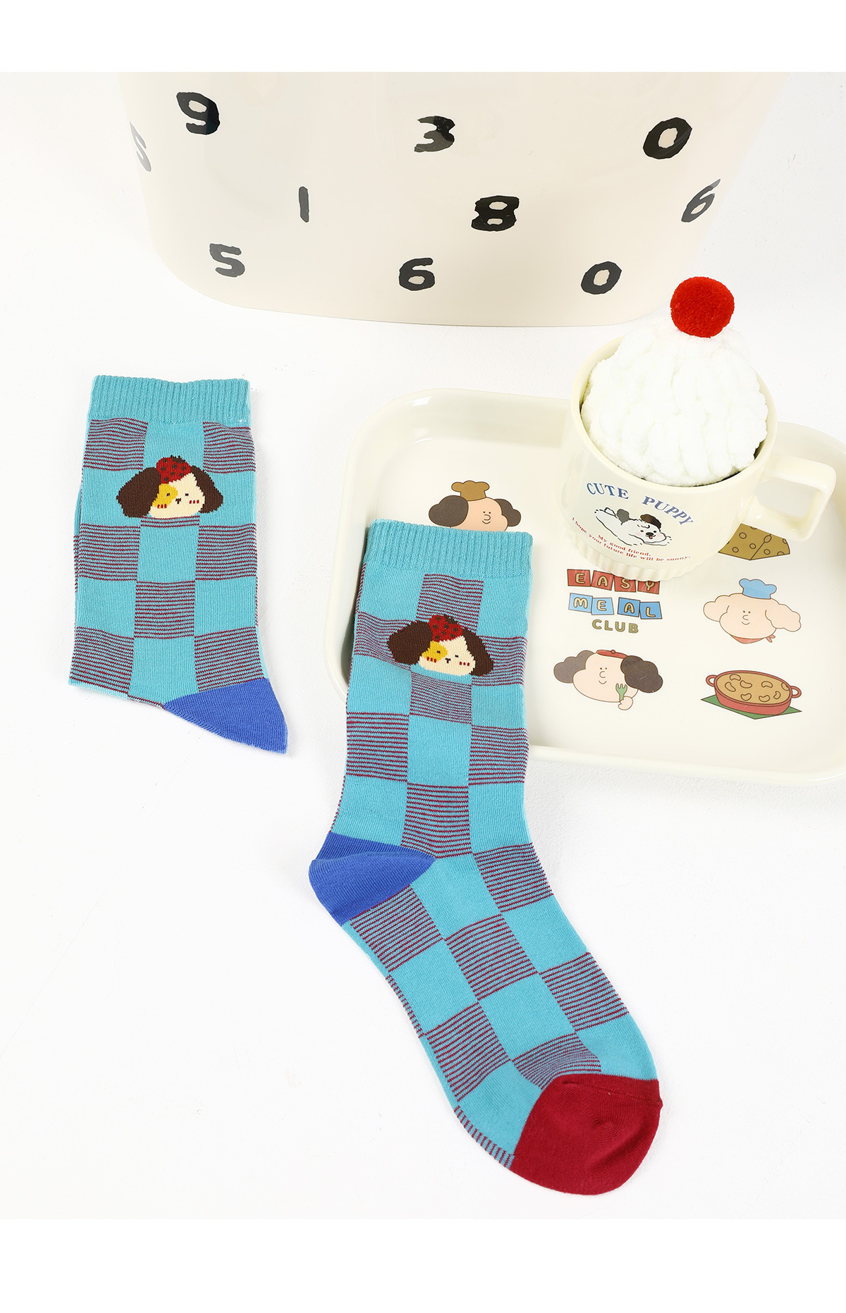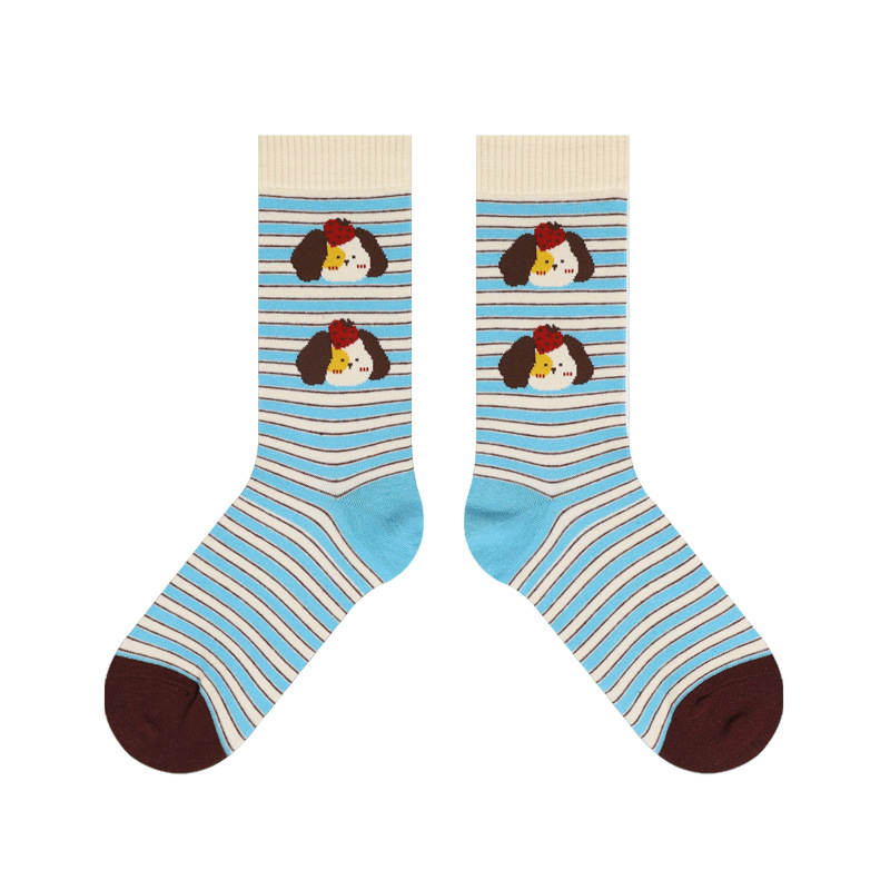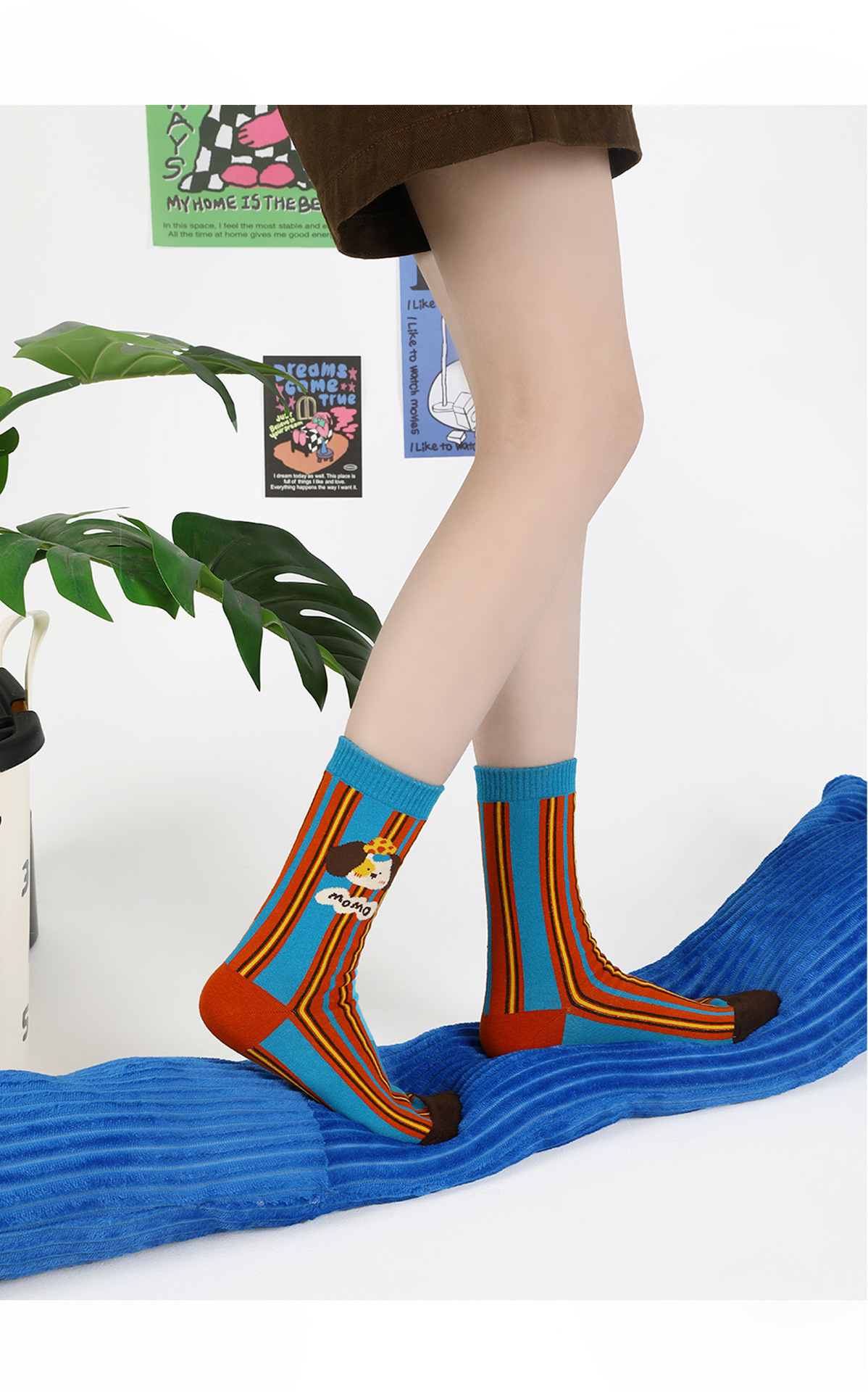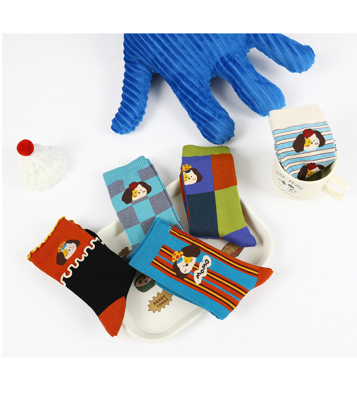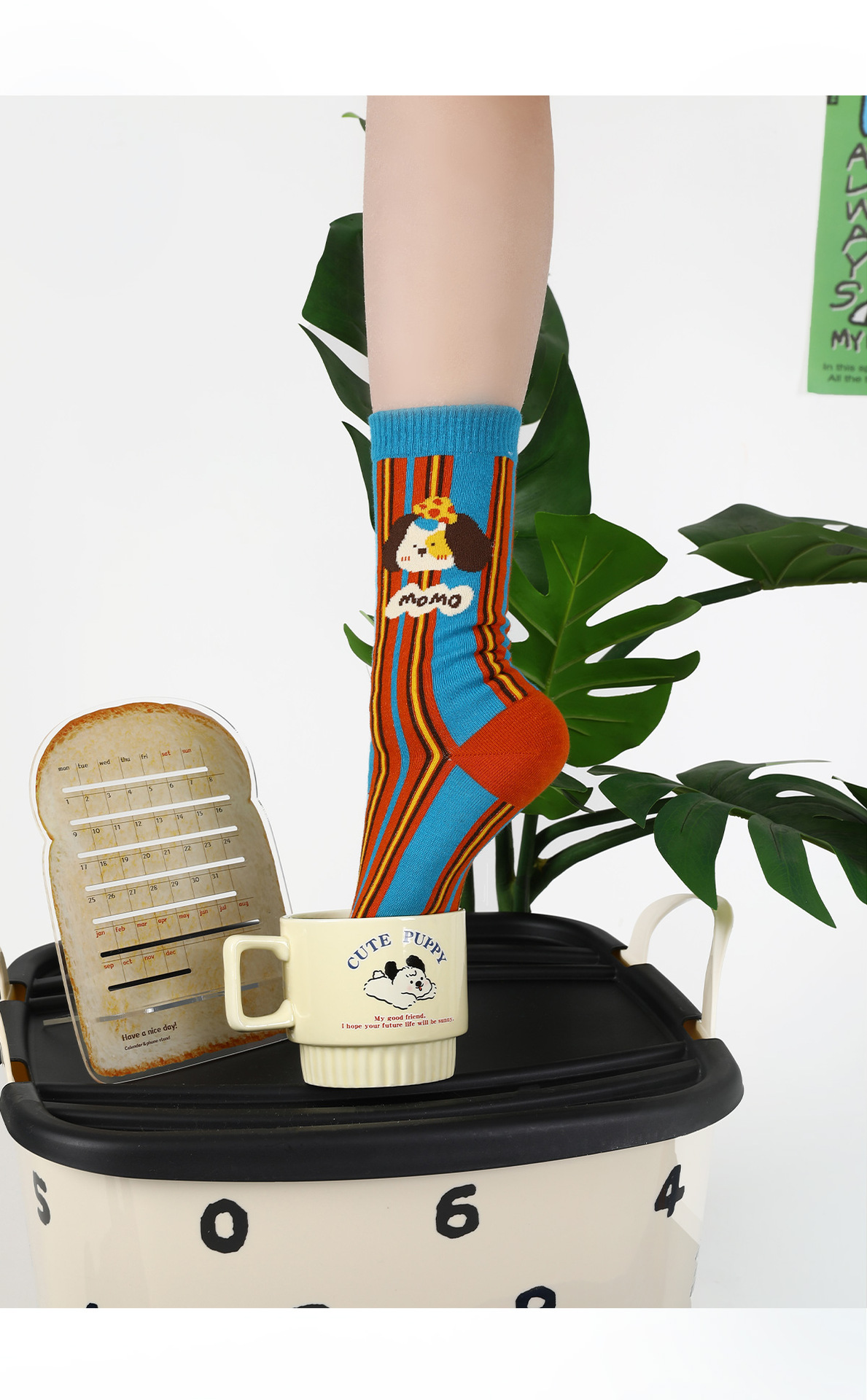 여성을 위한 새로운 봄, 가을 양말, 오리지널 귀여운 강아지 만화 트렌디 양말, 맞춤형 다용도 여성용 종아리 중간 면 양말, 짧은 양말스토어 가기