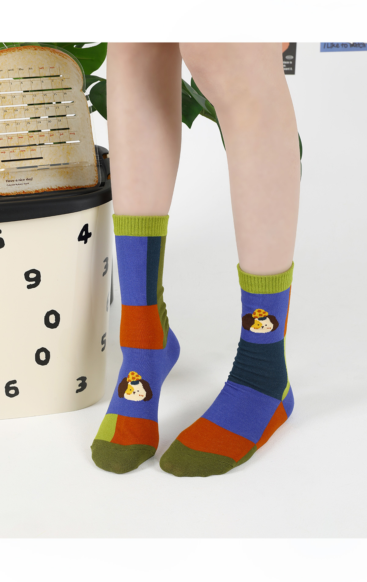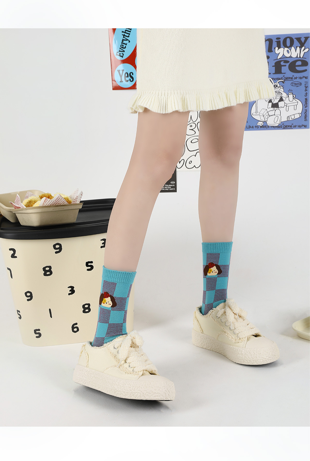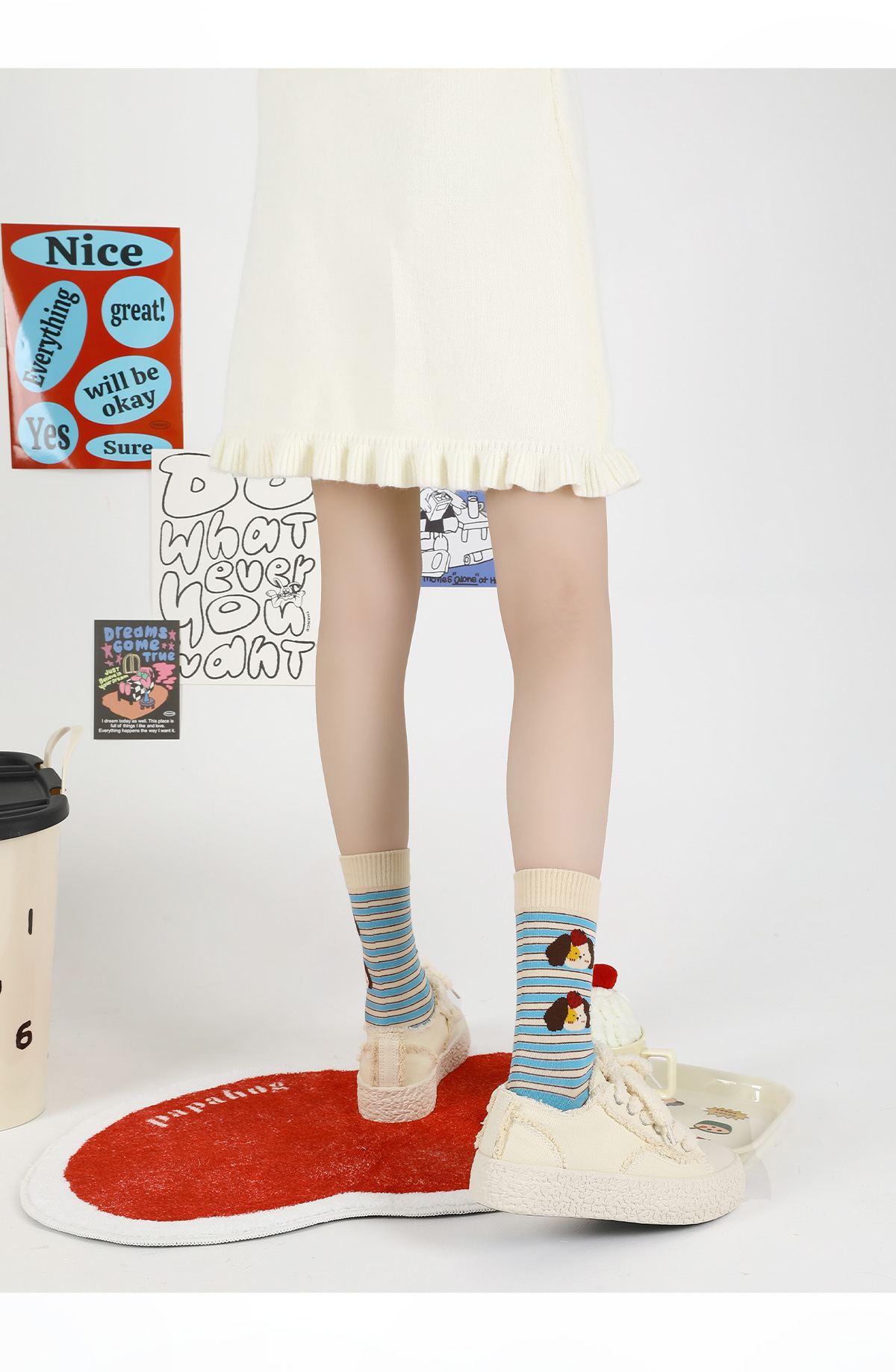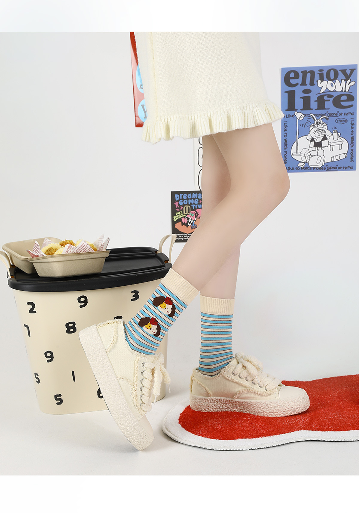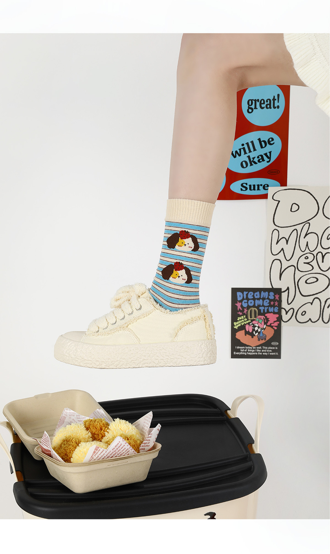 여성을 위한 새로운 봄, 가을 양말, 오리지널 귀여운 강아지 만화 트렌디 양말, 맞춤형 다용도 여성용 종아리 중간 면 양말, 짧은 양말스토어 가기