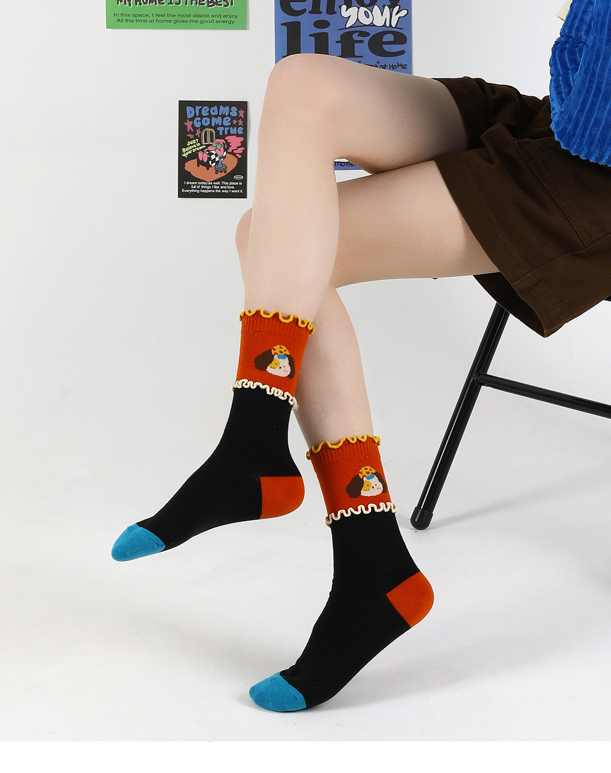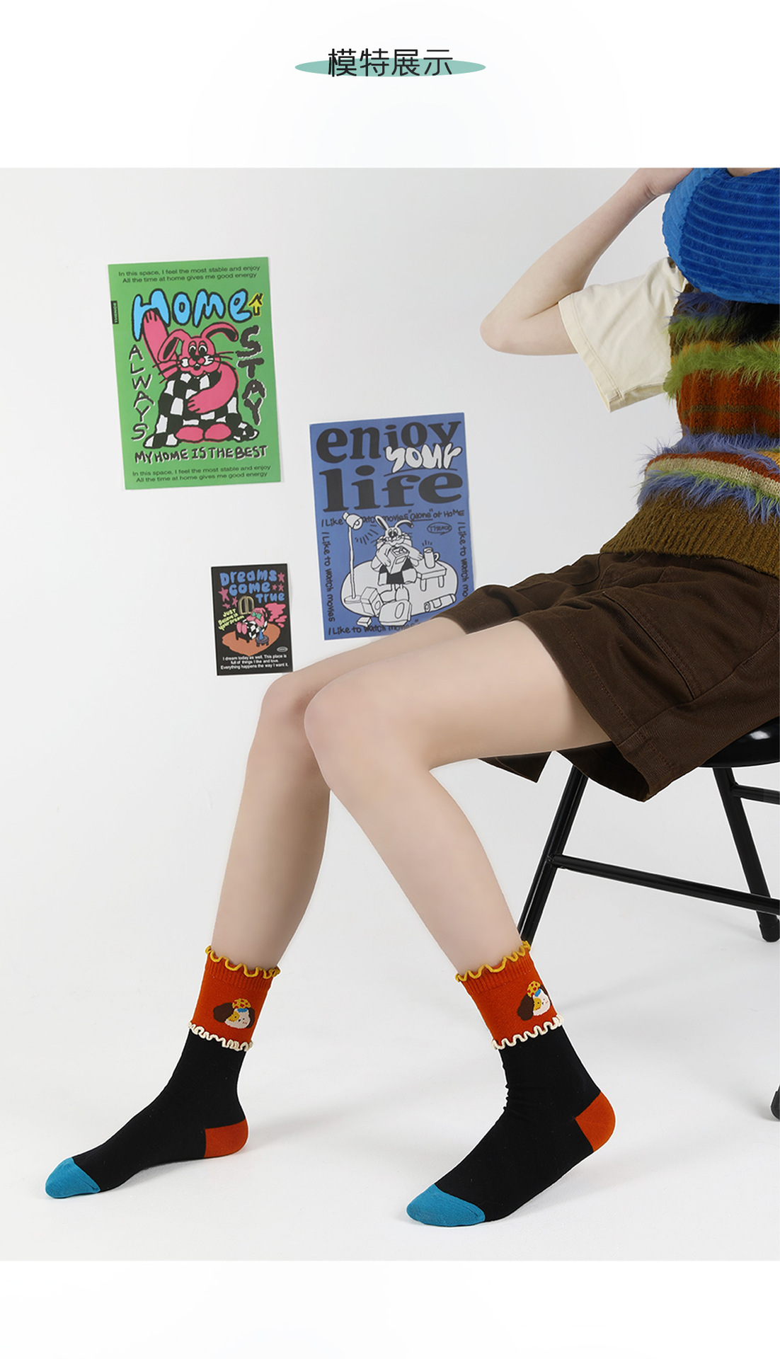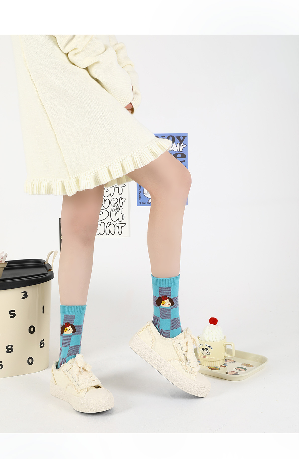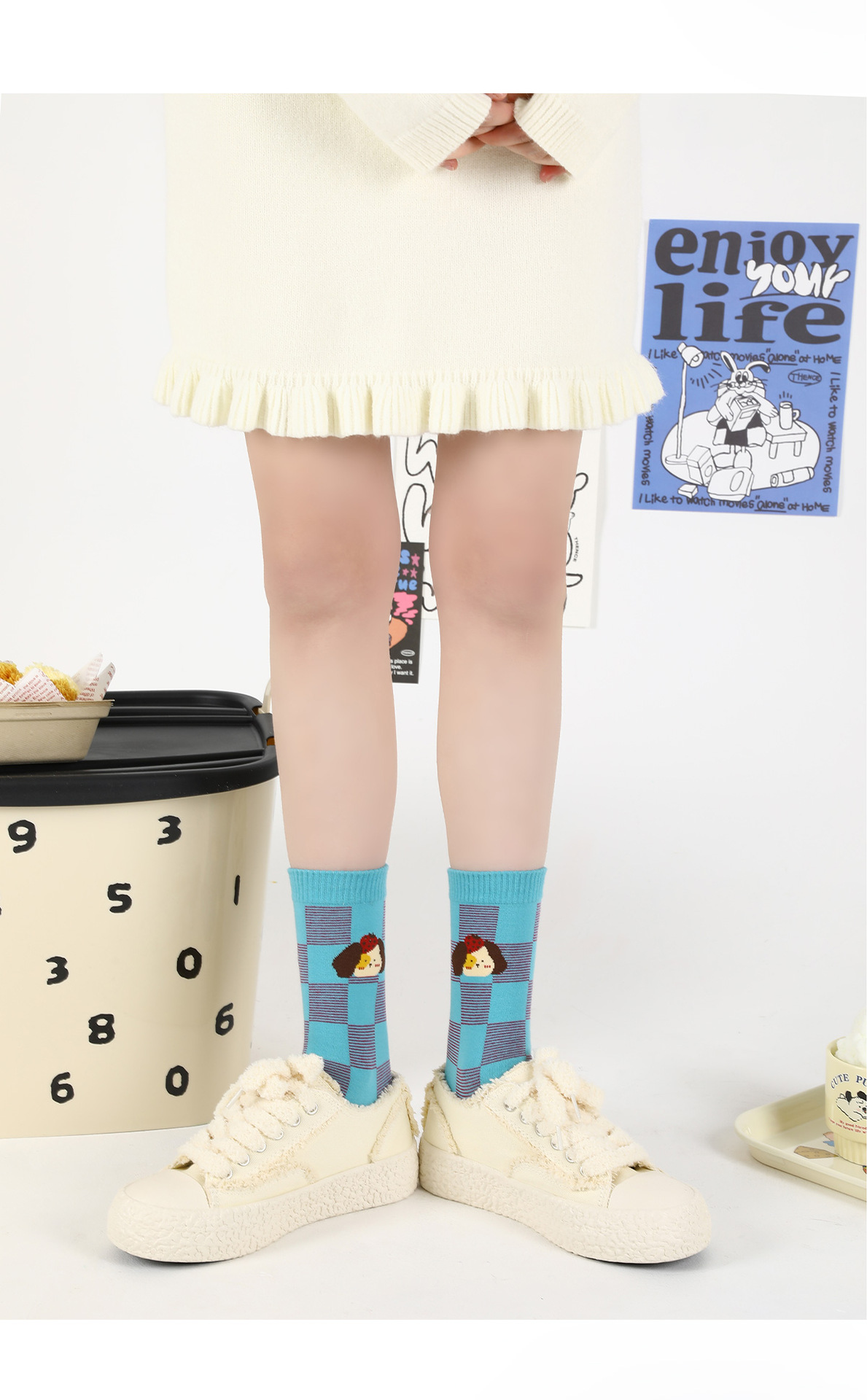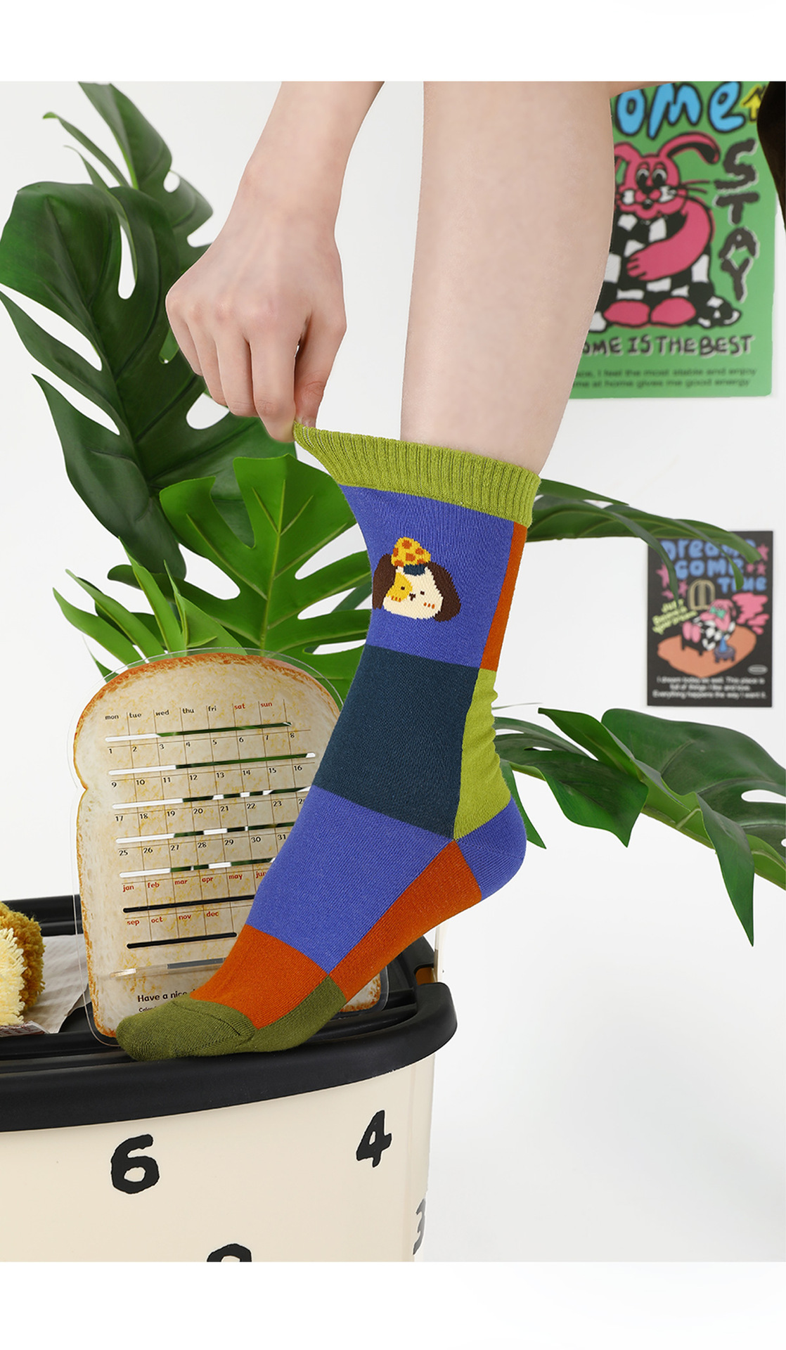여성을 위한 새로운 봄, 가을 양말, 오리지널 귀여운 강아지 만화 트렌디 양말, 맞춤형 다용도 여성용 종아리 중간 면 양말, 짧은 양말스토어 가기