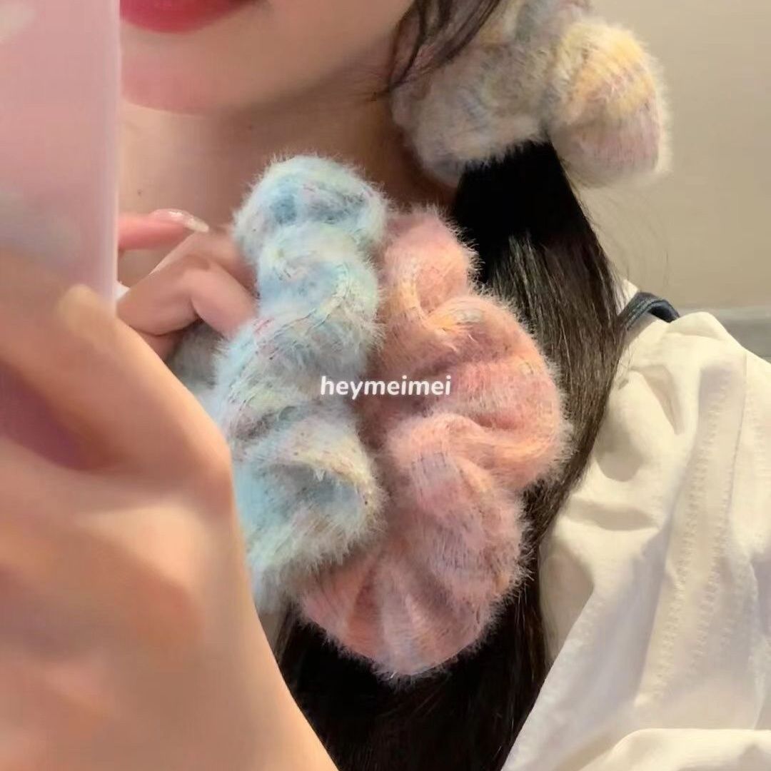 부드럽고 촉감 좋은 해마털 라운드 헤어밴드, 새로운 니트 헤어밴드, 그라데이션 아이스크림 머리끈, 소녀 헤어 액세서리스토어 가기