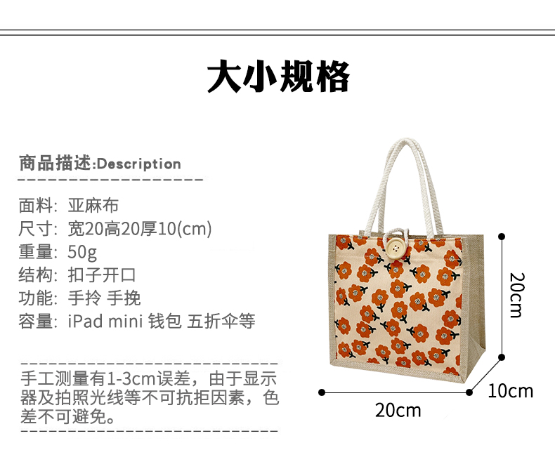 여성용 핸드백 린넨 가방 여성 도시락 가방 높은 패션 일본 린넨 작은 숄더백스토어 가기