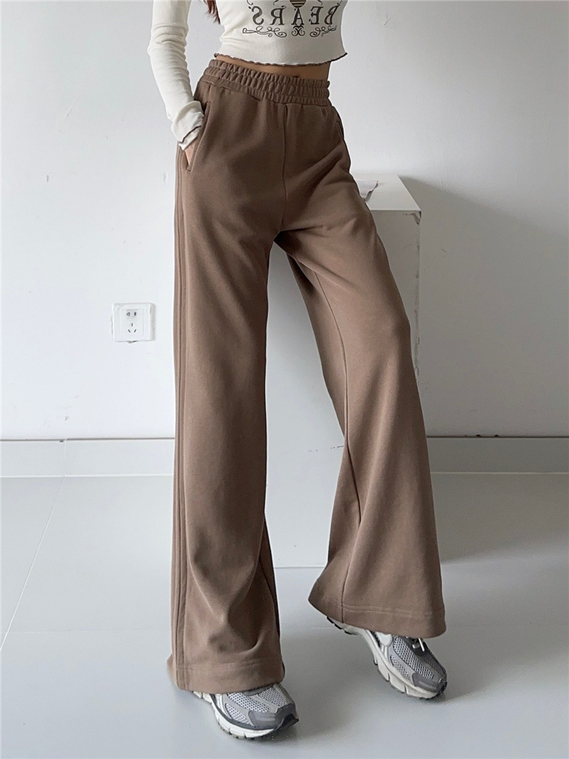 유럽과 미국 스타일 느슨한 허리 와이드 레그 캐주얼 바지 가을 새로운 모든 매치 느슨한 스트레이트 바지 여성용 바닥 길이 바지
