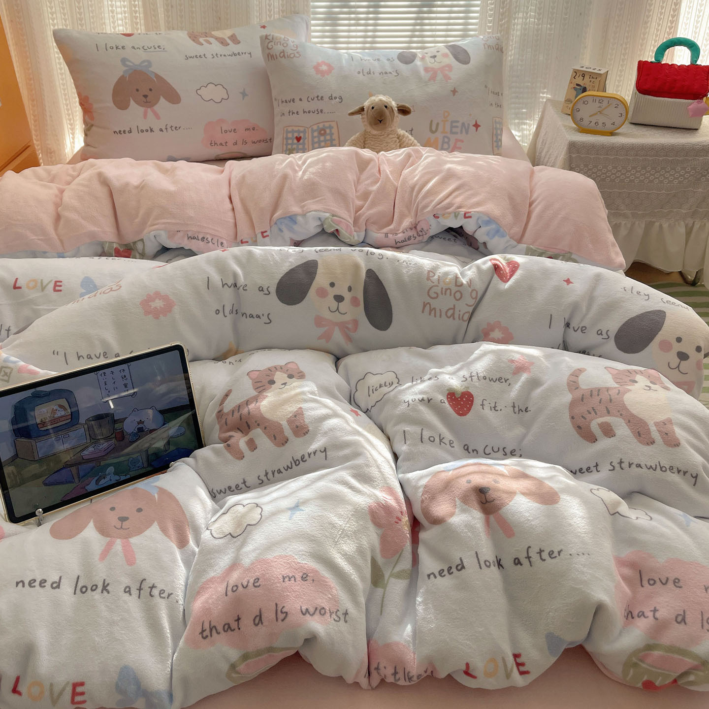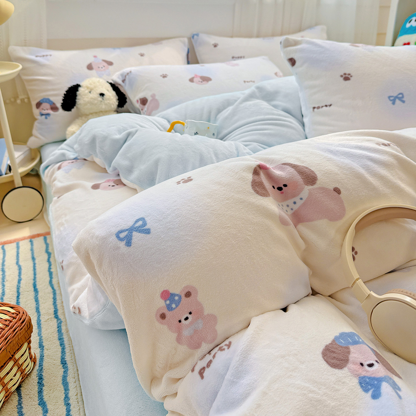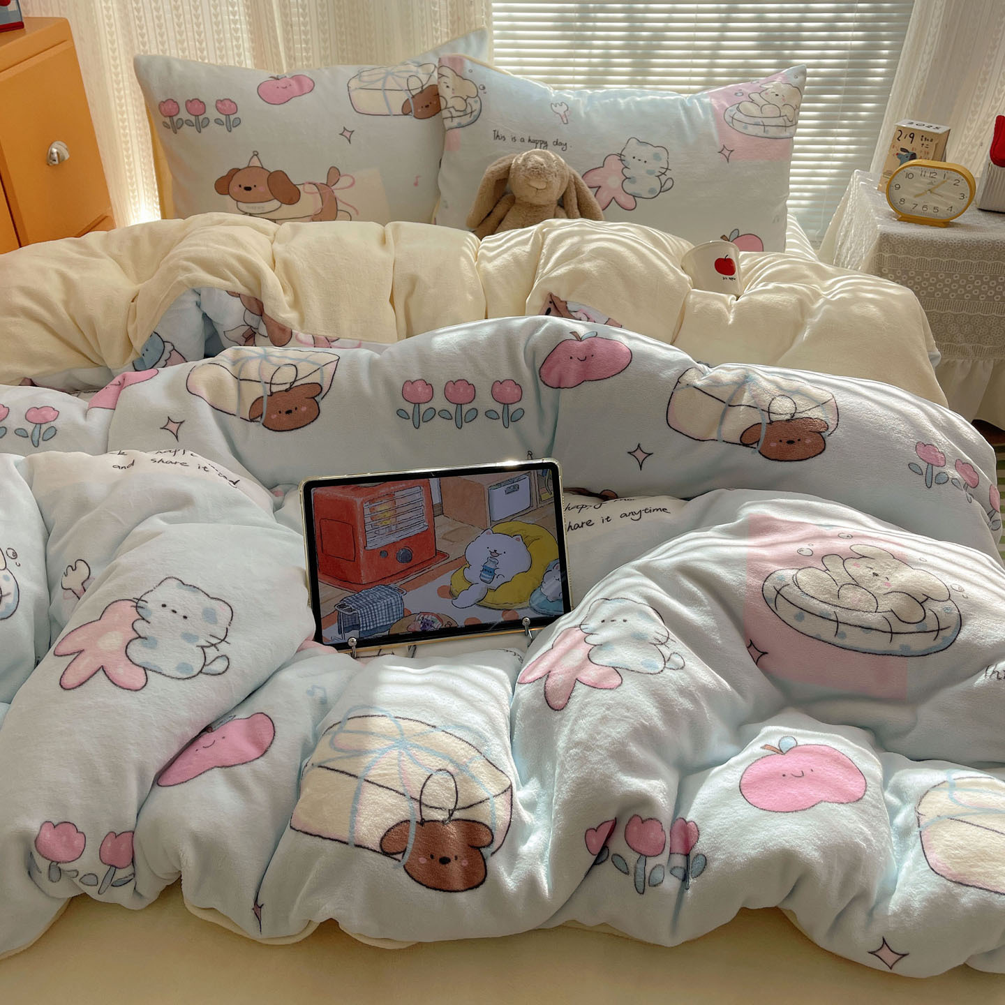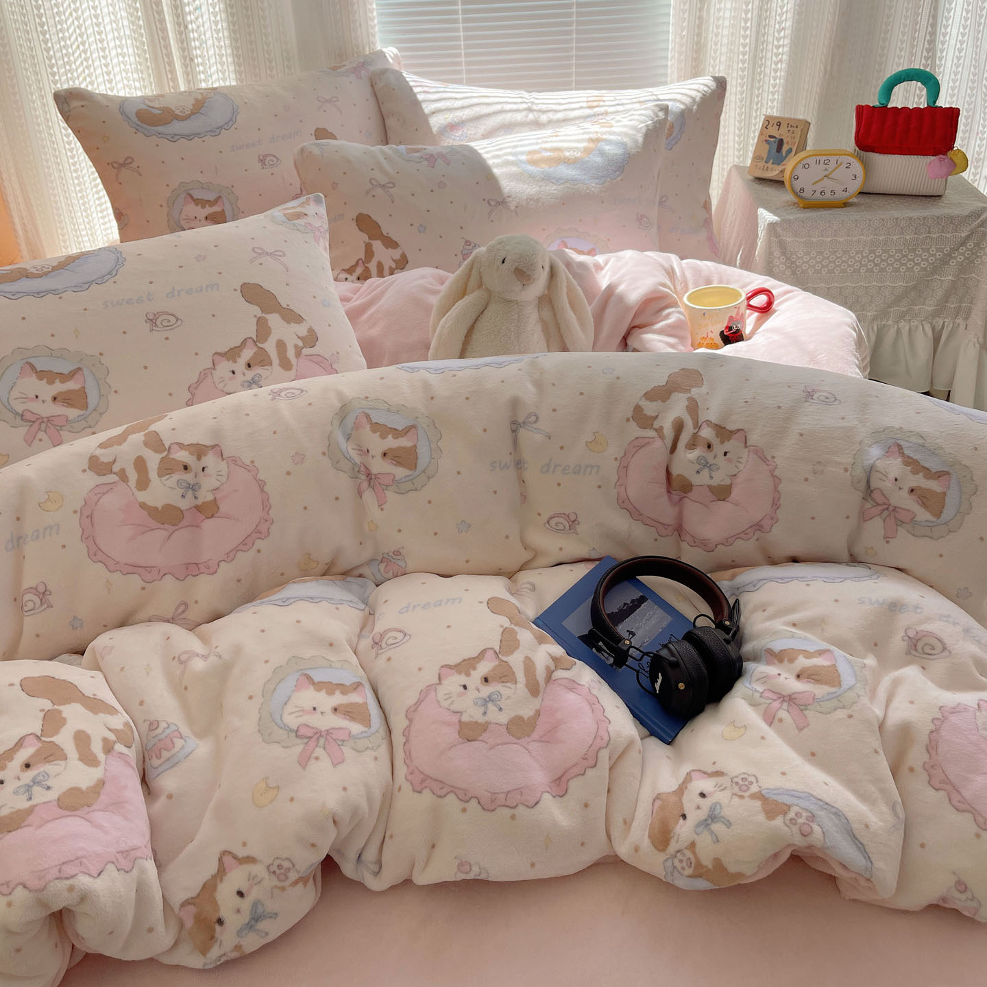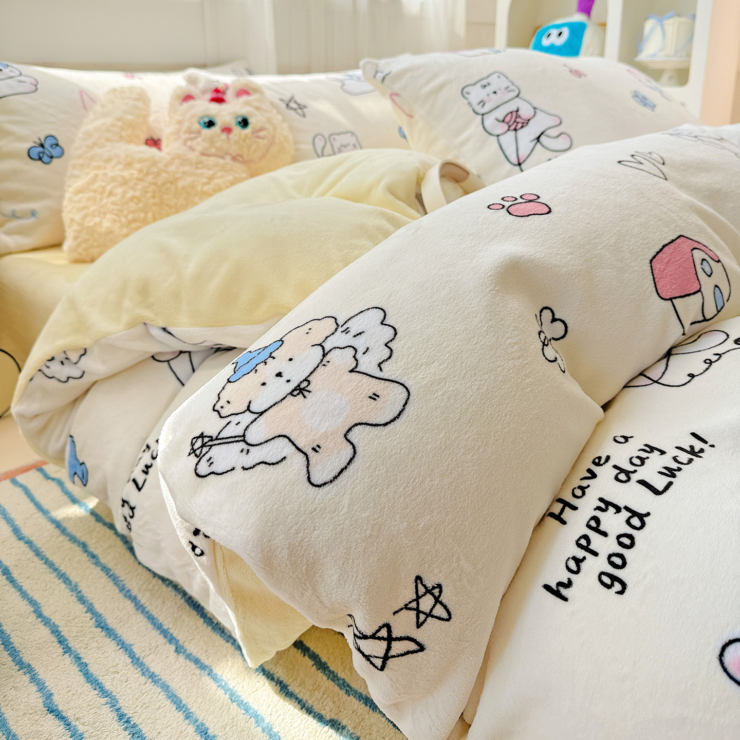 클래스 A 두꺼운 우유 벨벳 4피스 침대 시트 인 스타일 세트 작은 신선한 침대 시트 Nantong 홈 섬유 침구스토어 가기