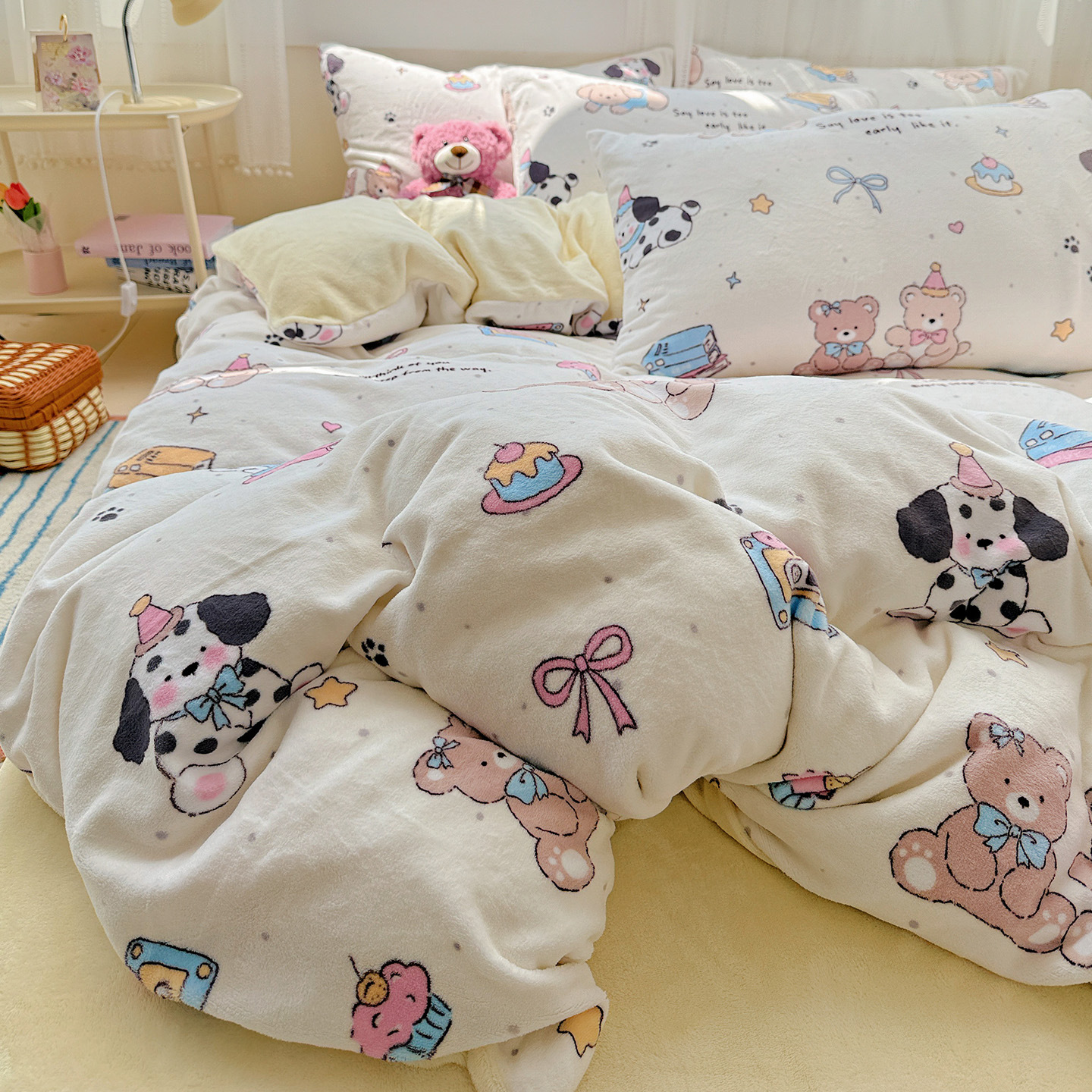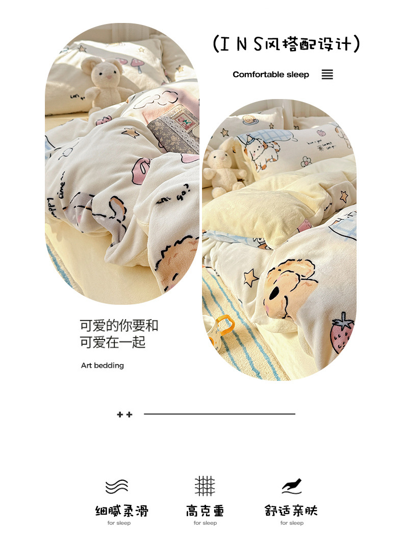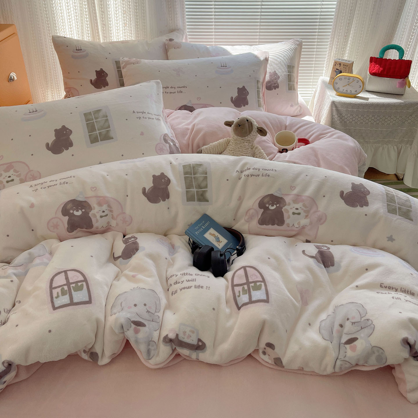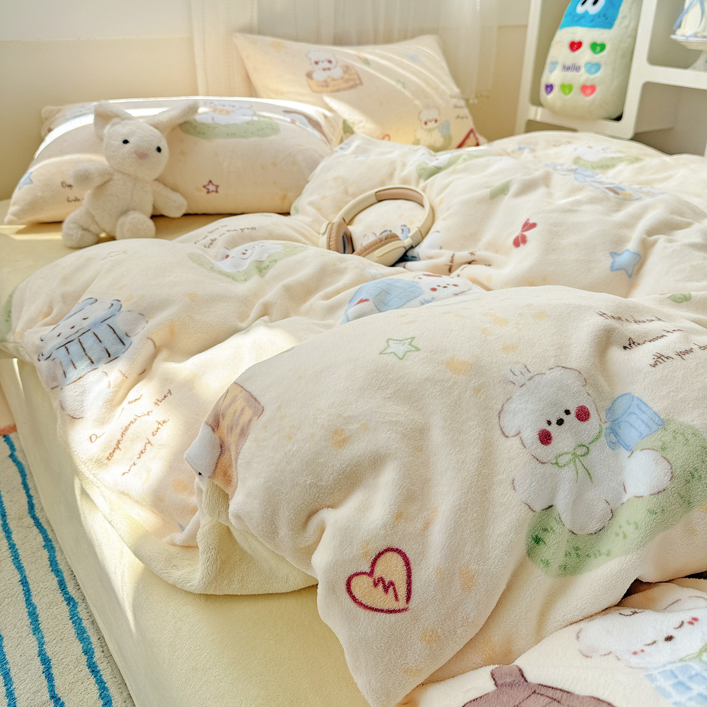클래스 A 두꺼운 우유 벨벳 4피스 침대 시트 인 스타일 세트 작은 신선한 침대 시트 Nantong 홈 섬유 침구스토어 가기