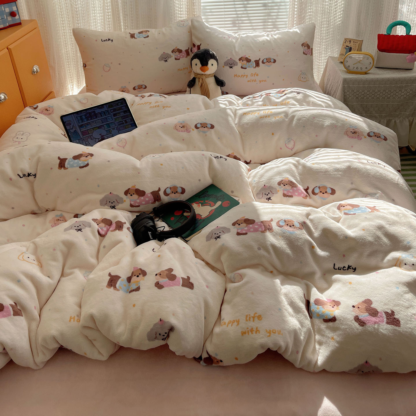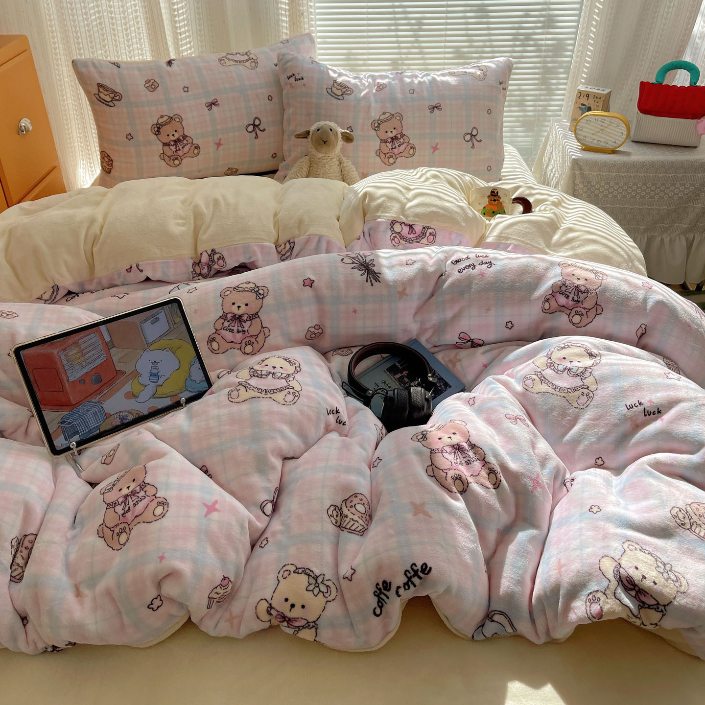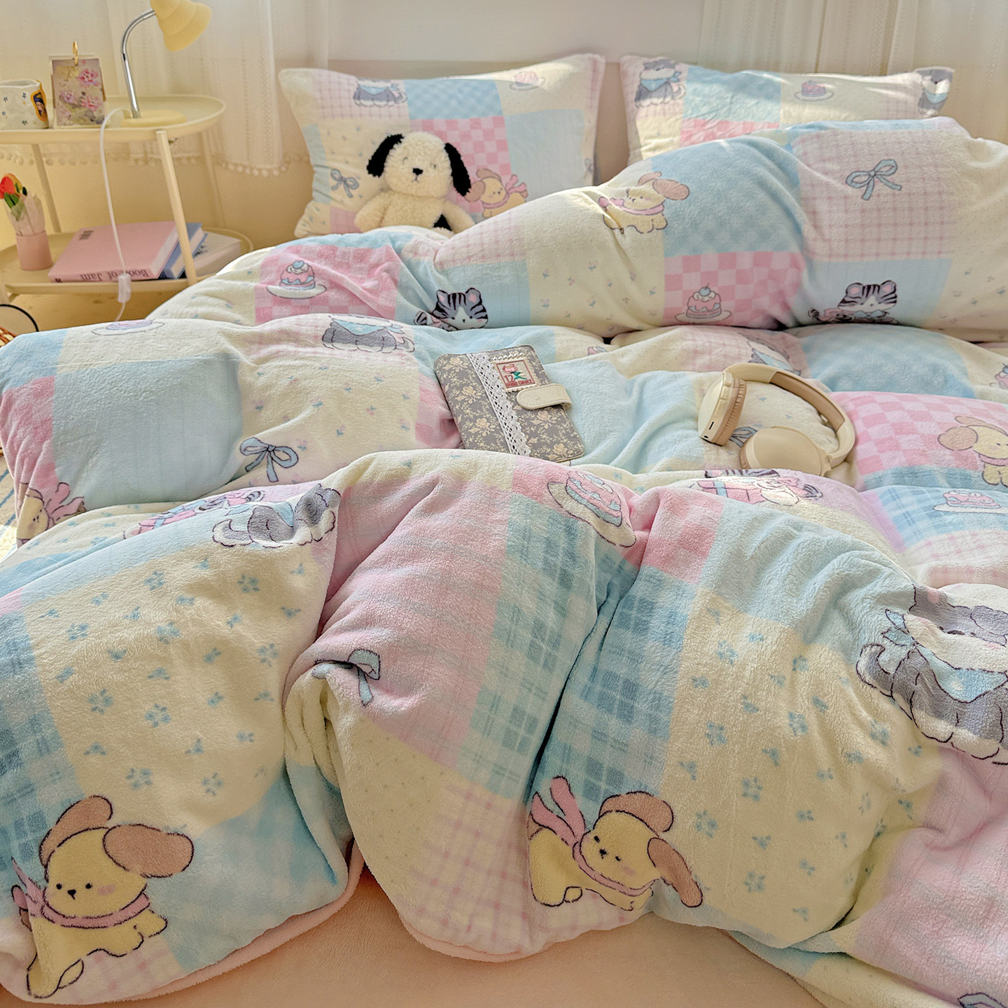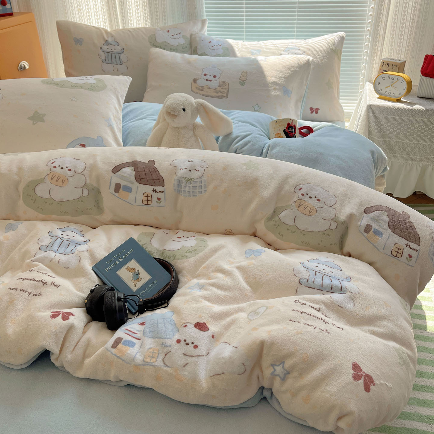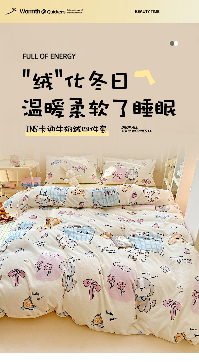 클래스 A 두꺼운 우유 벨벳 4피스 침대 시트 인 스타일 세트 작은 신선한 침대 시트 Nantong 홈 섬유 침구스토어 가기