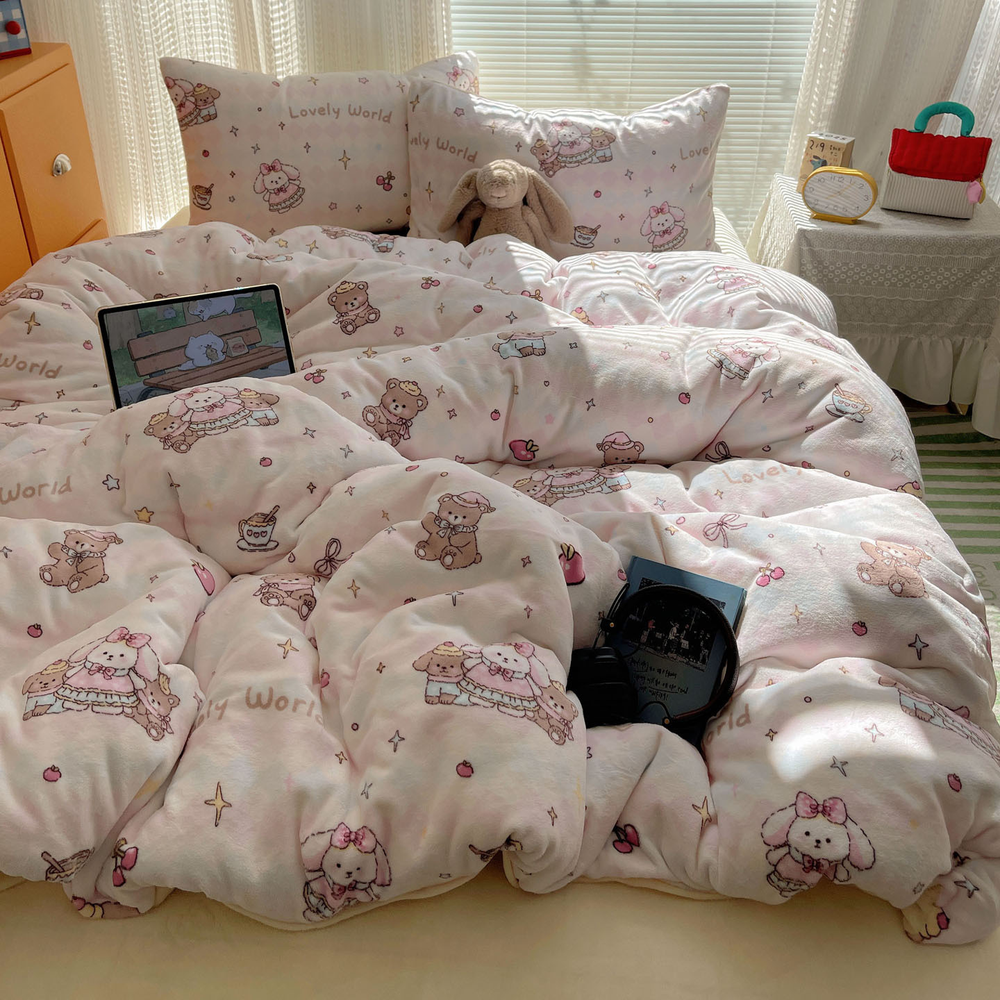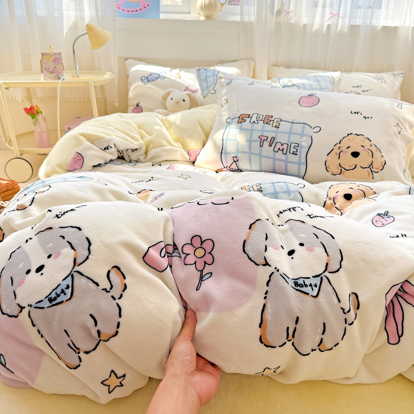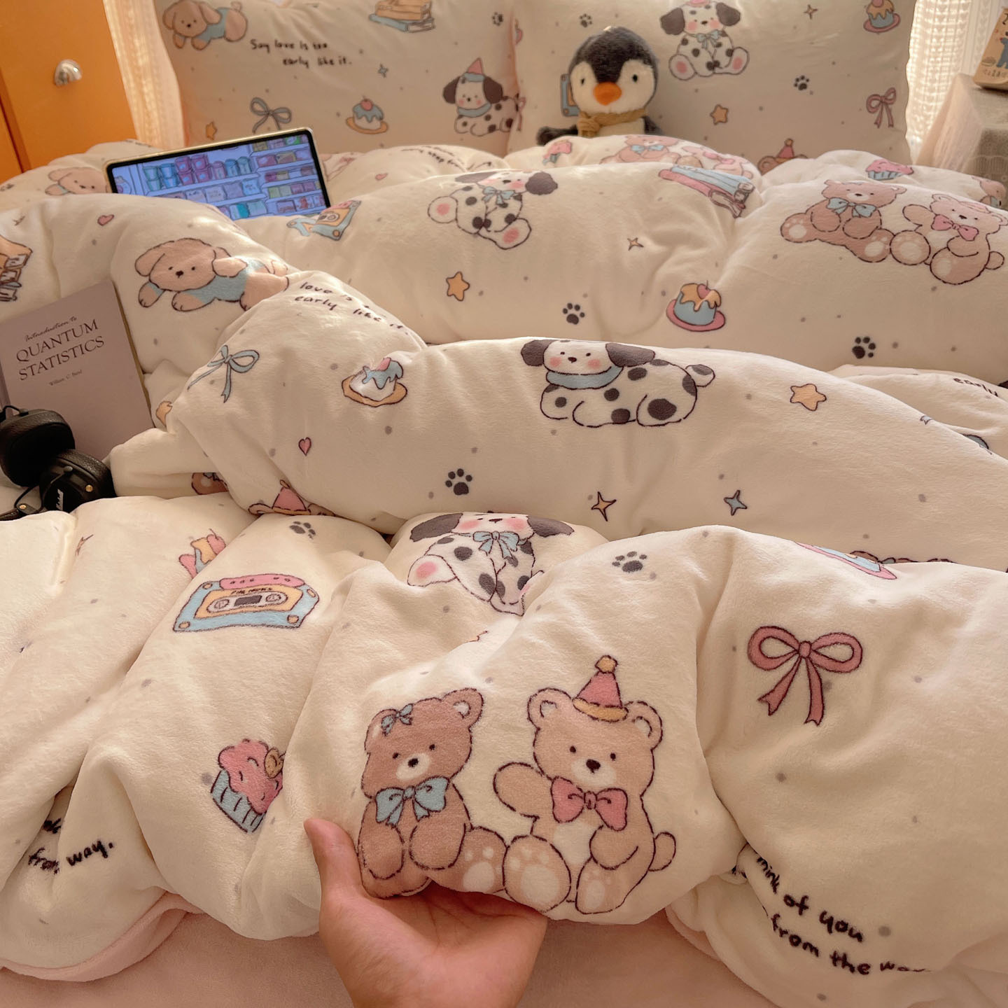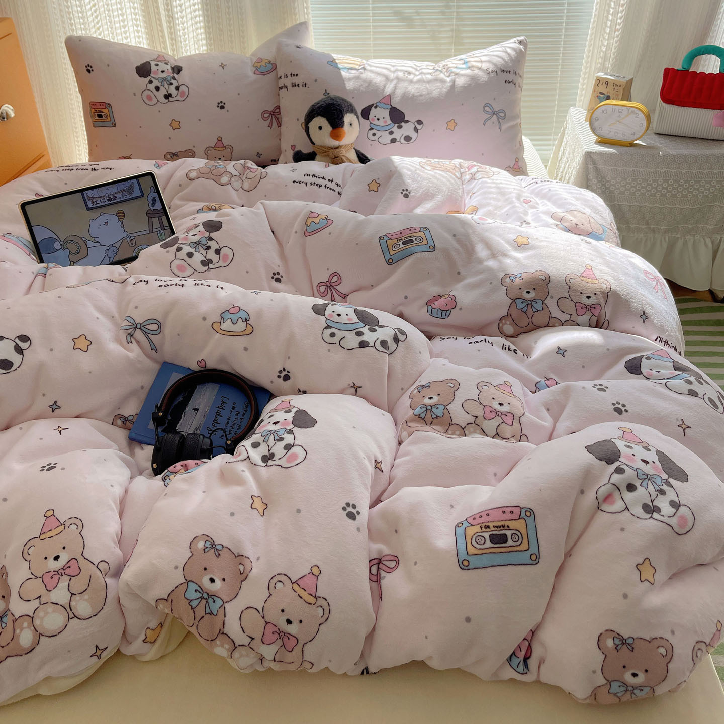 클래스 A 두꺼운 우유 벨벳 4피스 침대 시트 인 스타일 세트 작은 신선한 침대 시트 Nantong 홈 섬유 침구스토어 가기