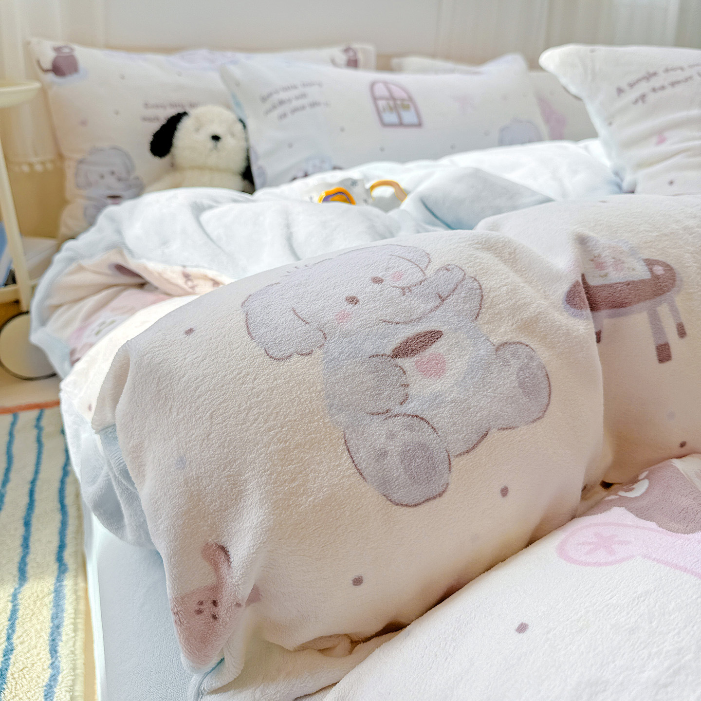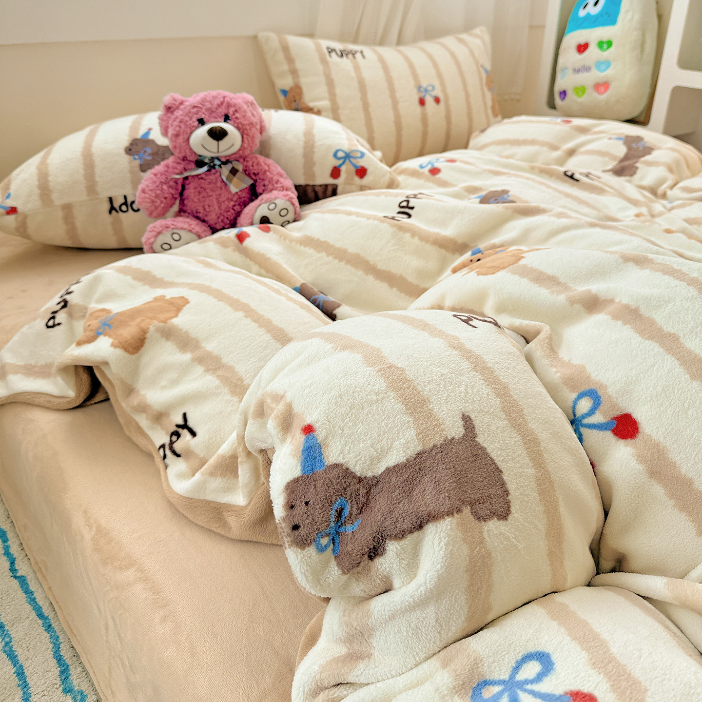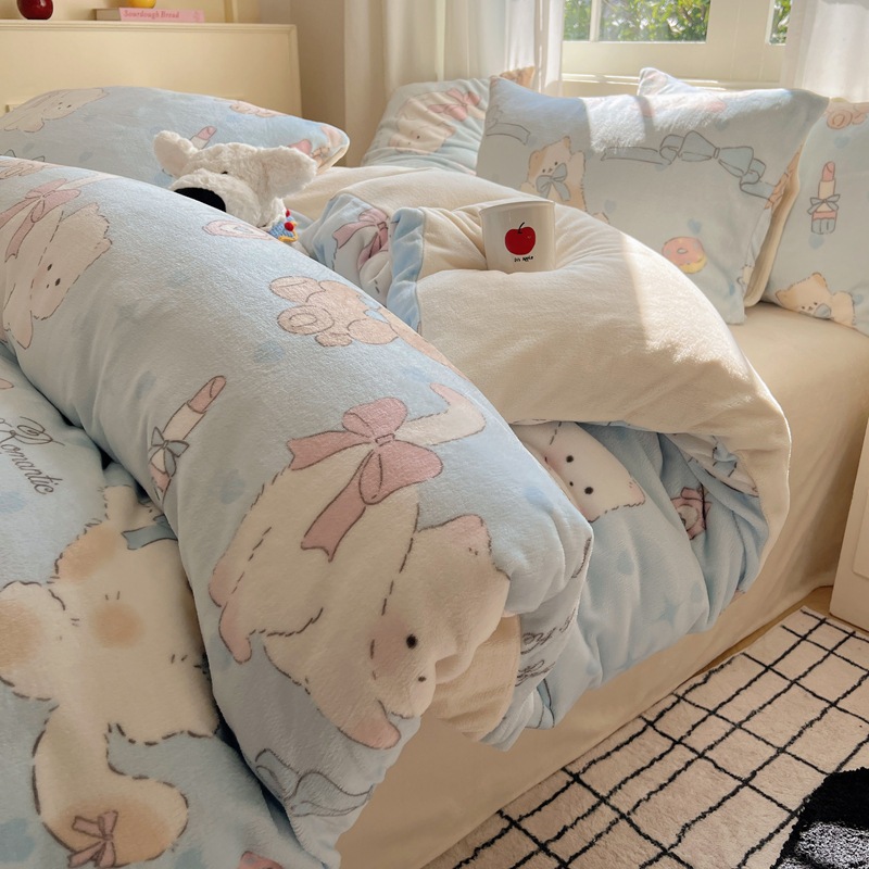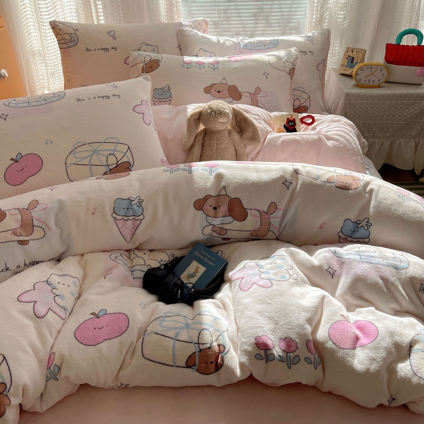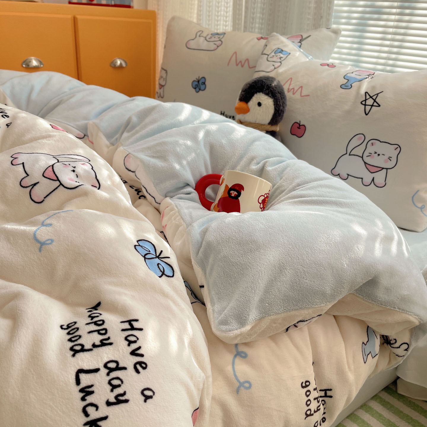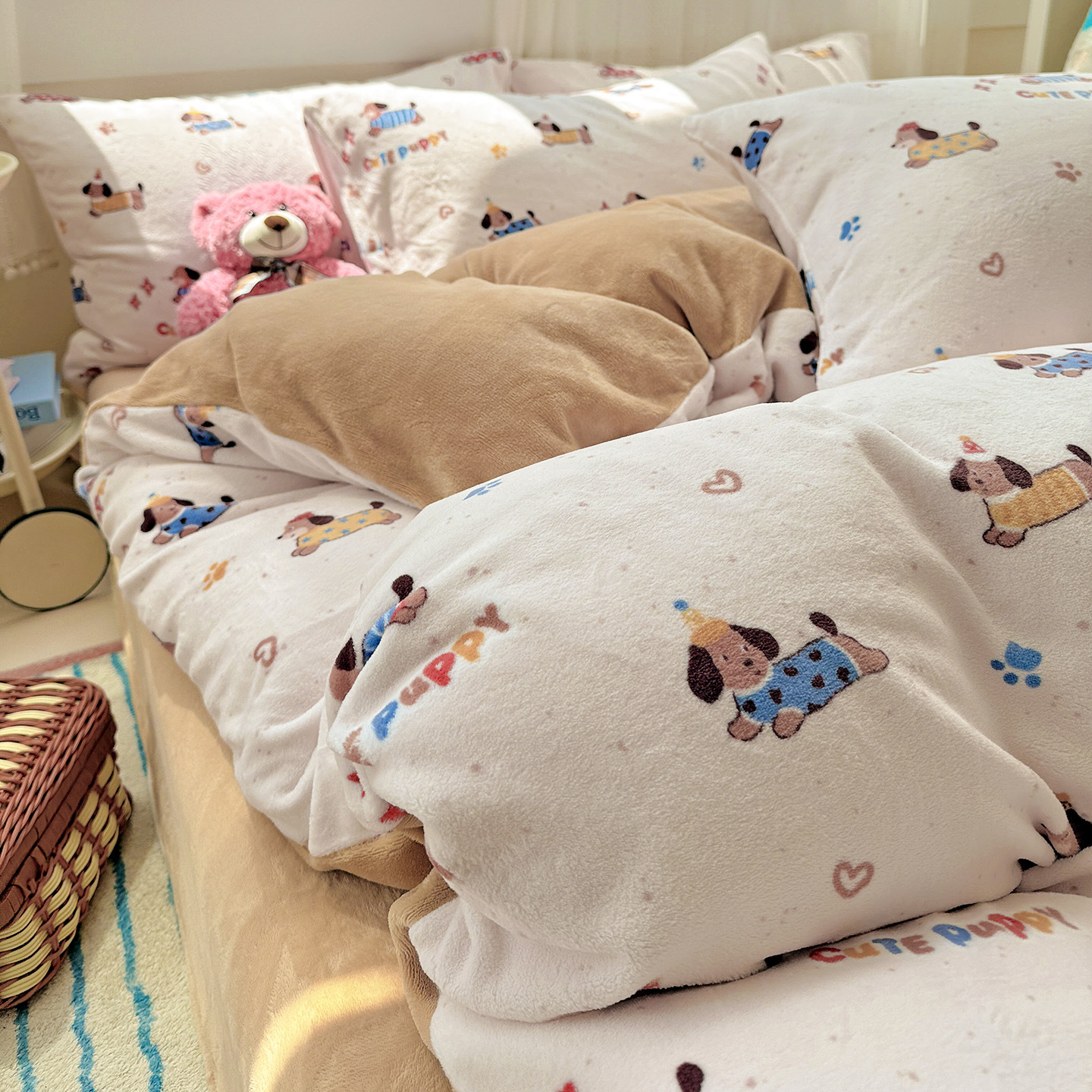 클래스 A 두꺼운 우유 벨벳 4피스 침대 시트 인 스타일 세트 작은 신선한 침대 시트 Nantong 홈 섬유 침구스토어 가기