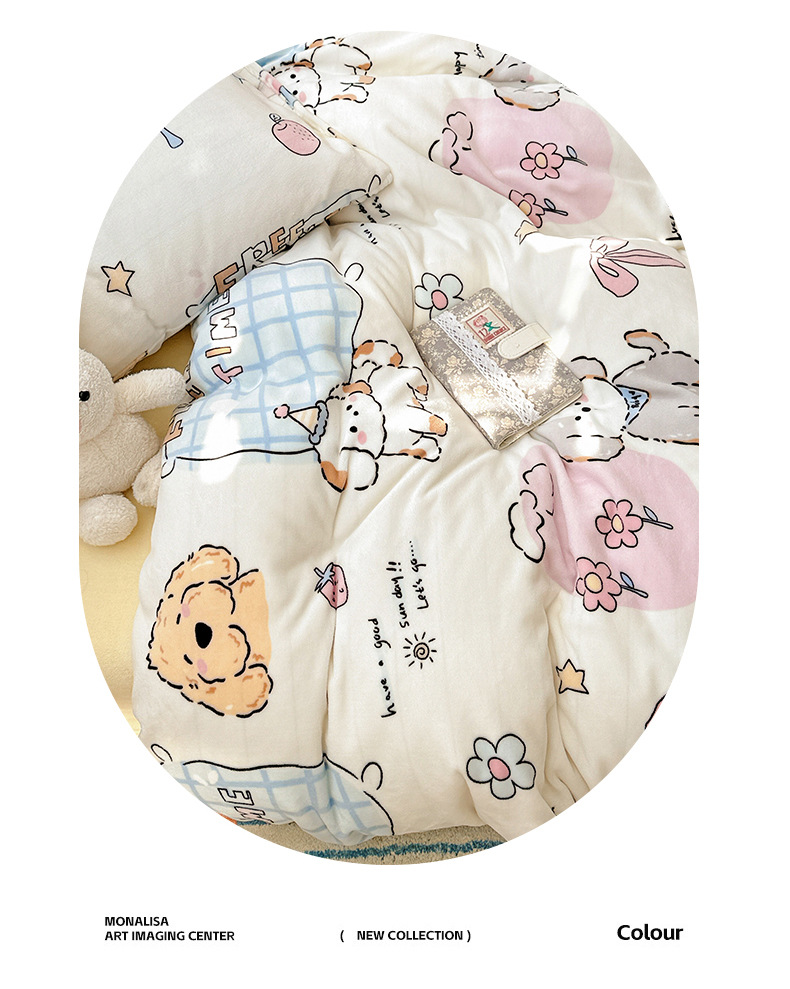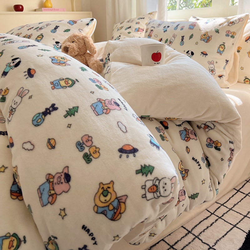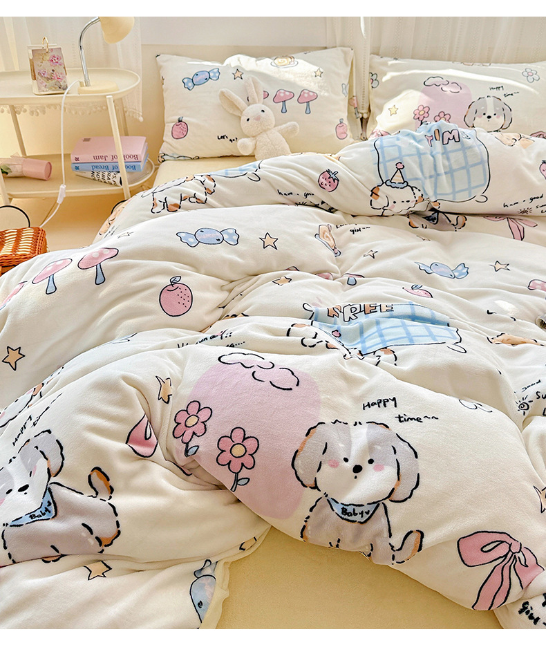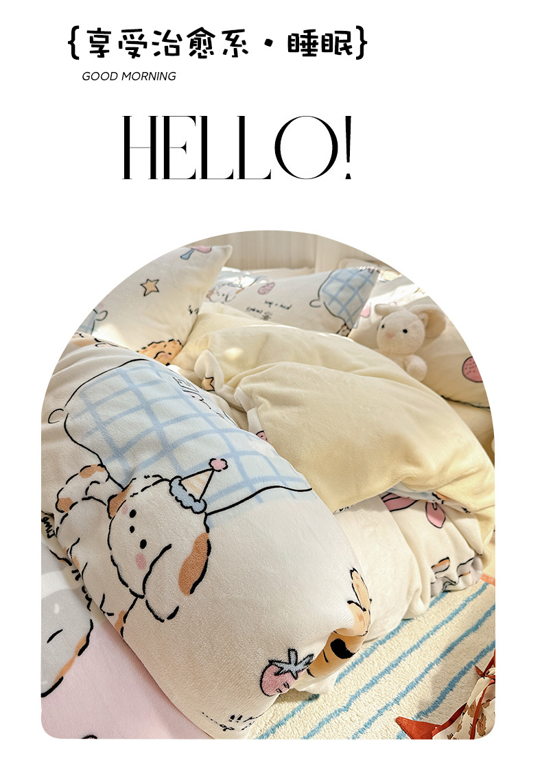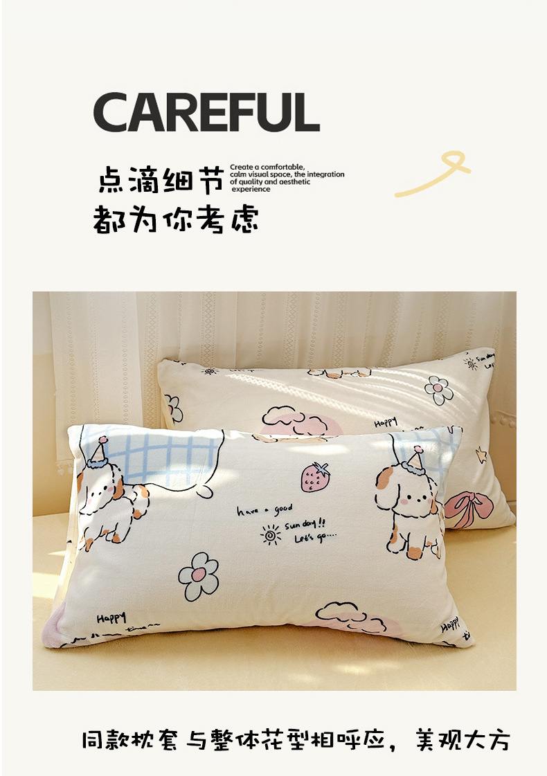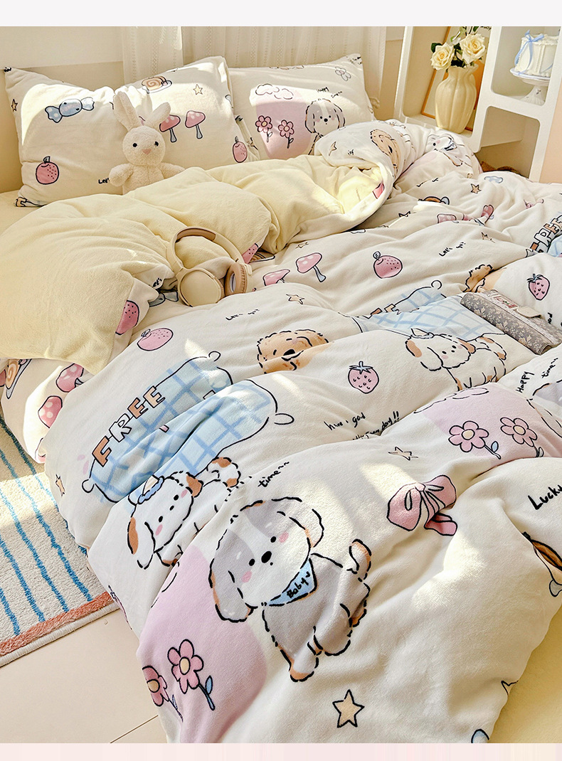 클래스 A 두꺼운 우유 벨벳 4피스 침대 시트 인 스타일 세트 작은 신선한 침대 시트 Nantong 홈 섬유 침구스토어 가기