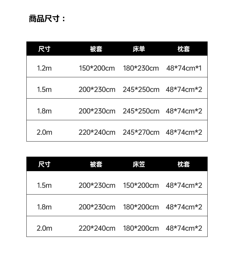 • 1.2 m 3 피스 세트 (이불 커버 150*200, 침대 시트 180*230, 베개 케이스 48*74*1)