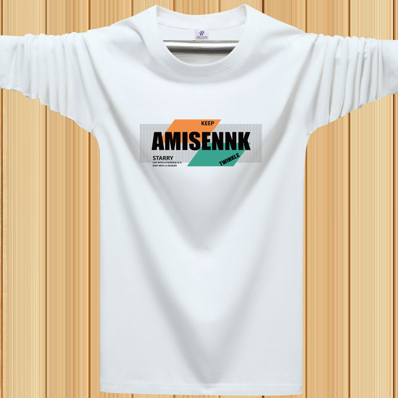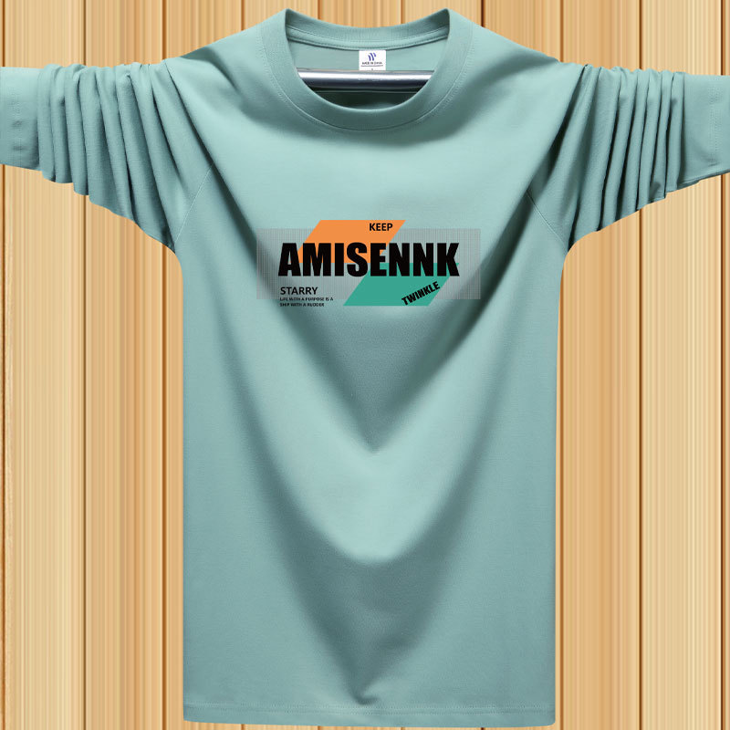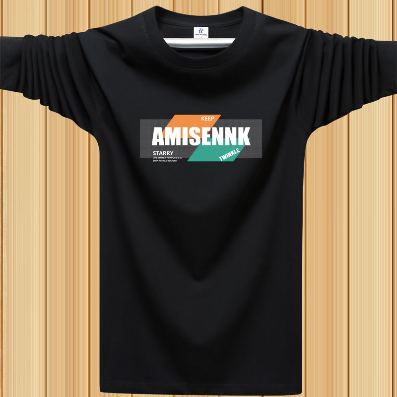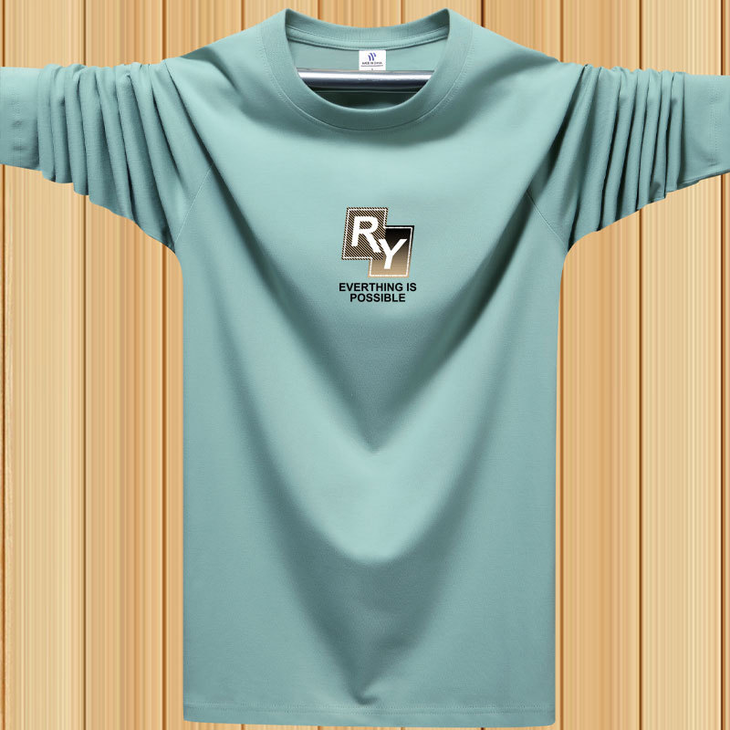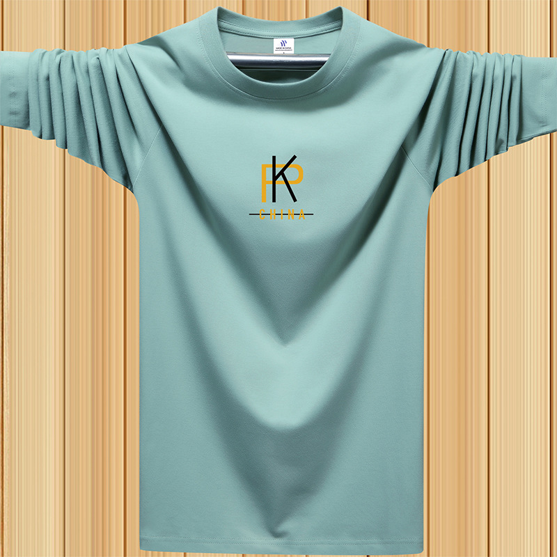 긴팔 티셔츠 남성용 중장비 신장 면 가을과 겨울 새로운 남성용 베이스 셔츠 면 라운드 넥 루즈한 플러스 사이즈 긴팔 남성용 티셔츠