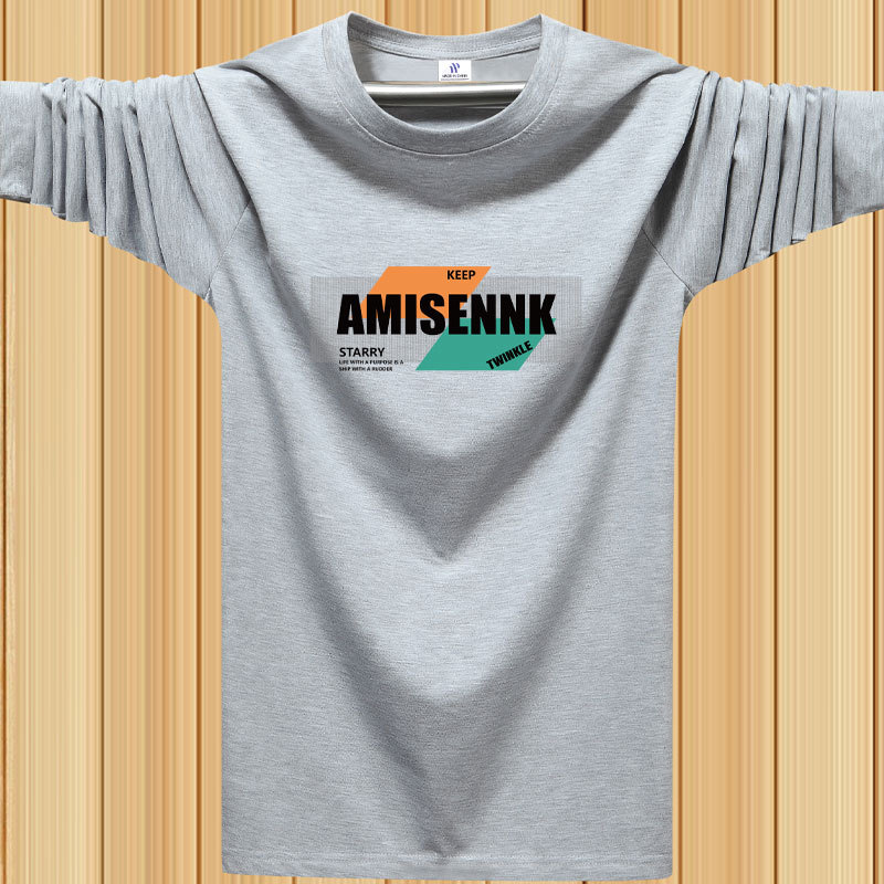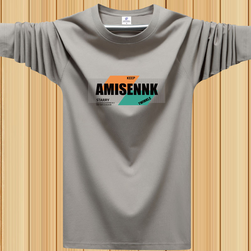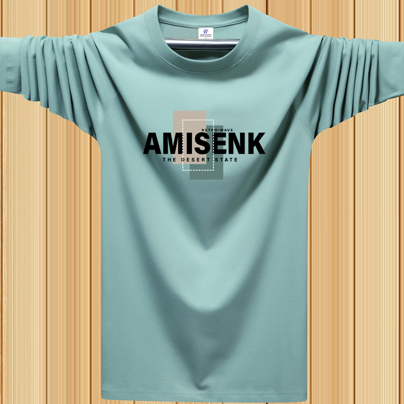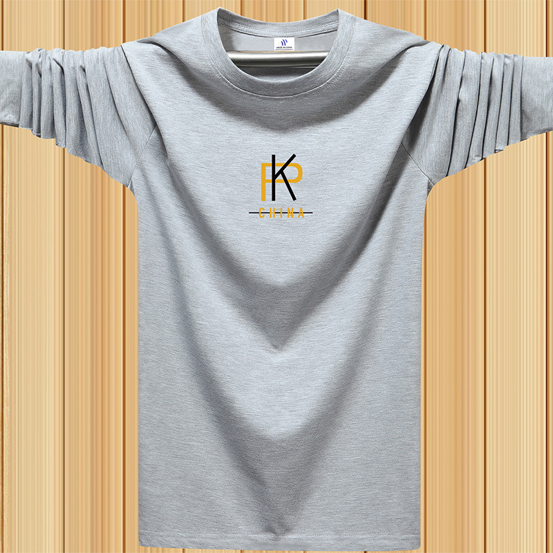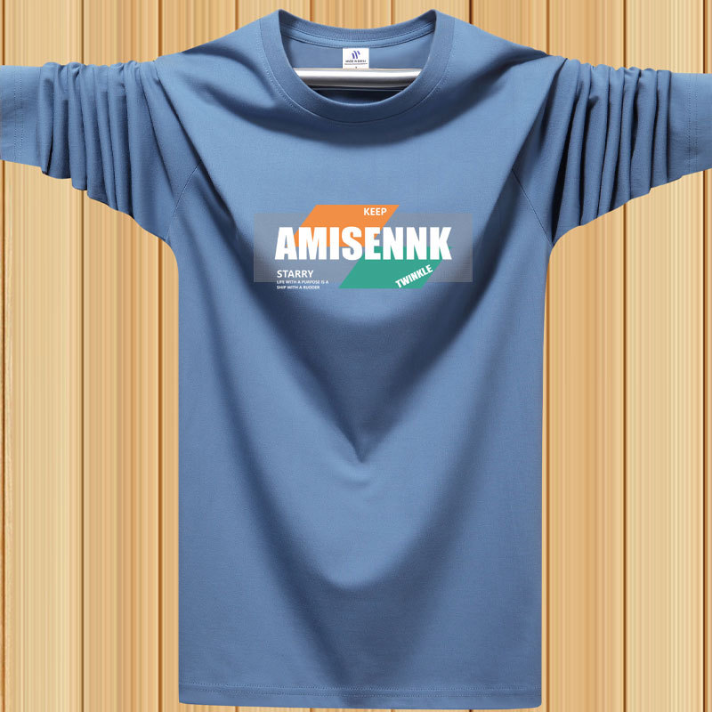 긴팔 티셔츠 남성용 중장비 신장 면 가을과 겨울 새로운 남성용 베이스 셔츠 면 라운드 넥 루즈한 플러스 사이즈 긴팔 남성용 티셔츠