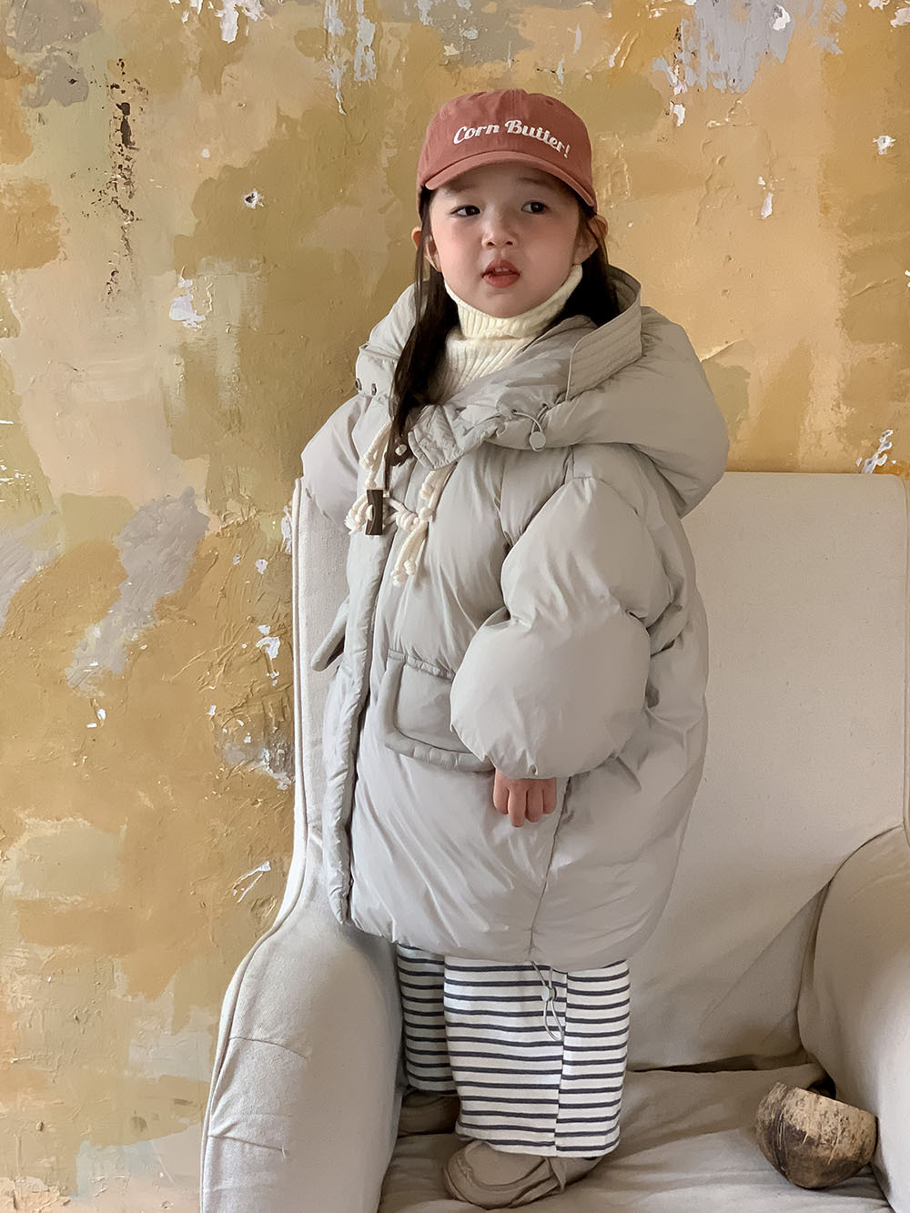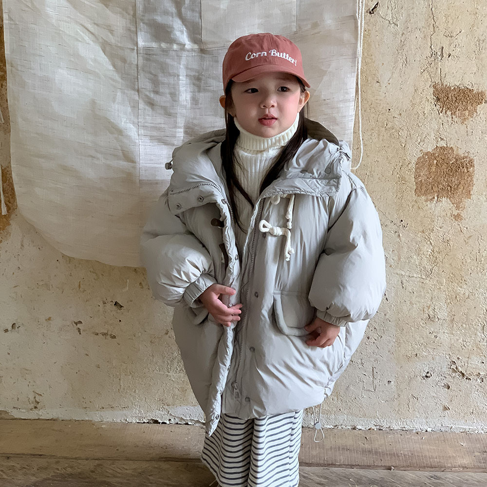 신규 국가 표준 90% 백색 오리털 2024 한국 아동복 겨울용 아동 다운 재킷 롱 후드 여아용 보온 코트스토어 가기