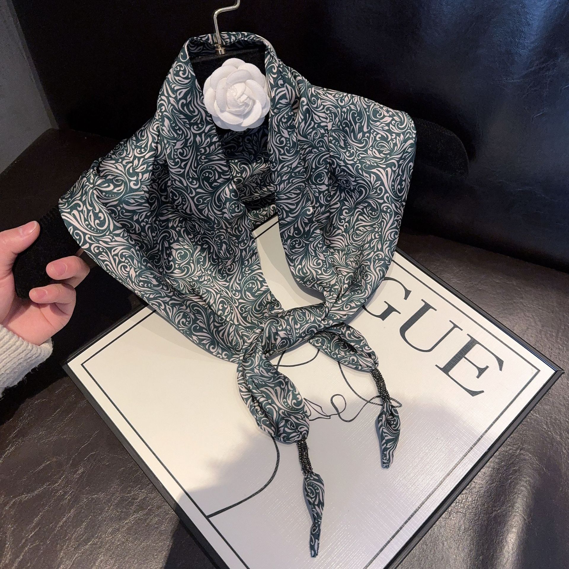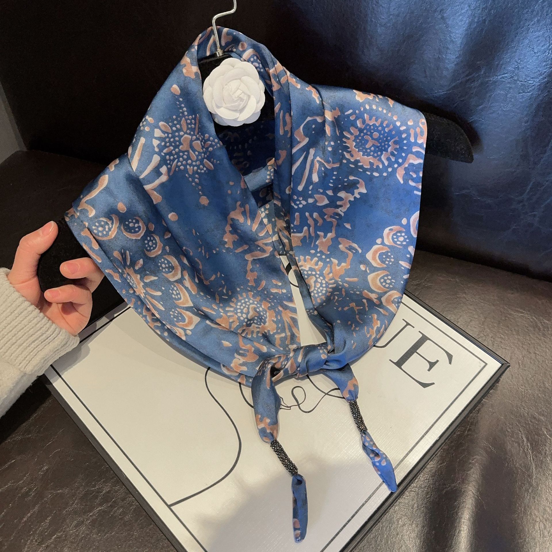 2025 봄과 가을 새로운 삼각형 스카프 더블 새틴 작은 목도리 부드러운 서양식 목 스카프 도매 한국어 버전스토어 가기