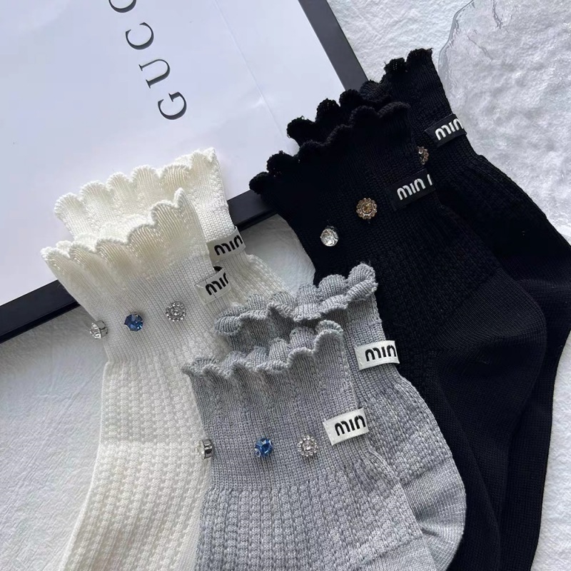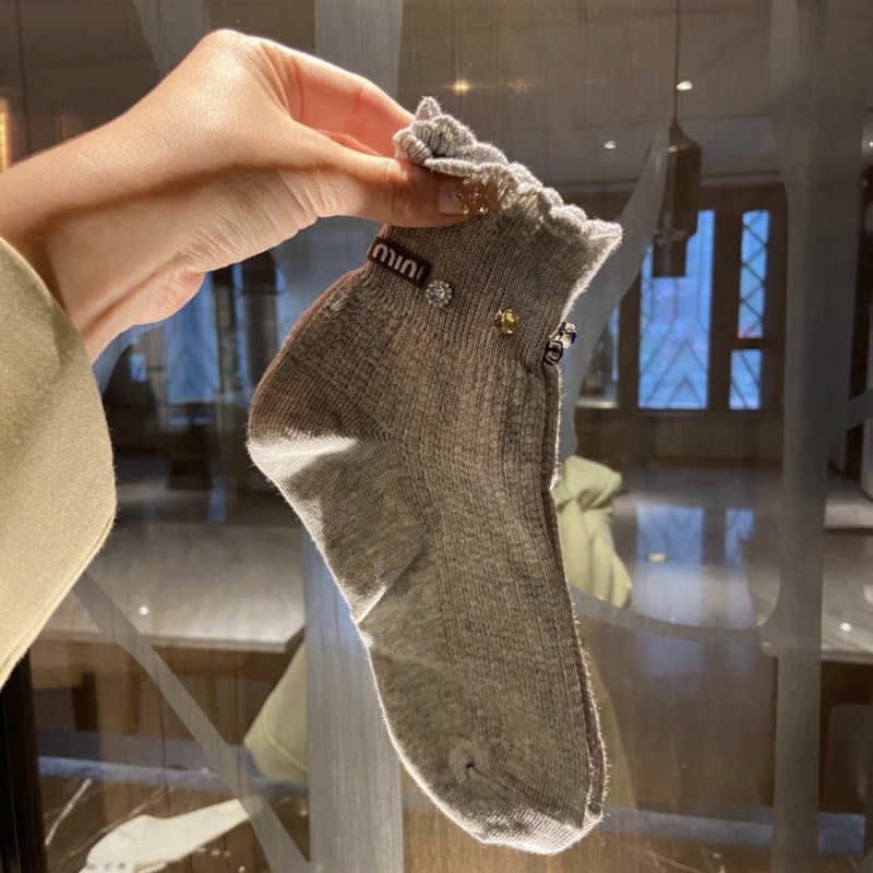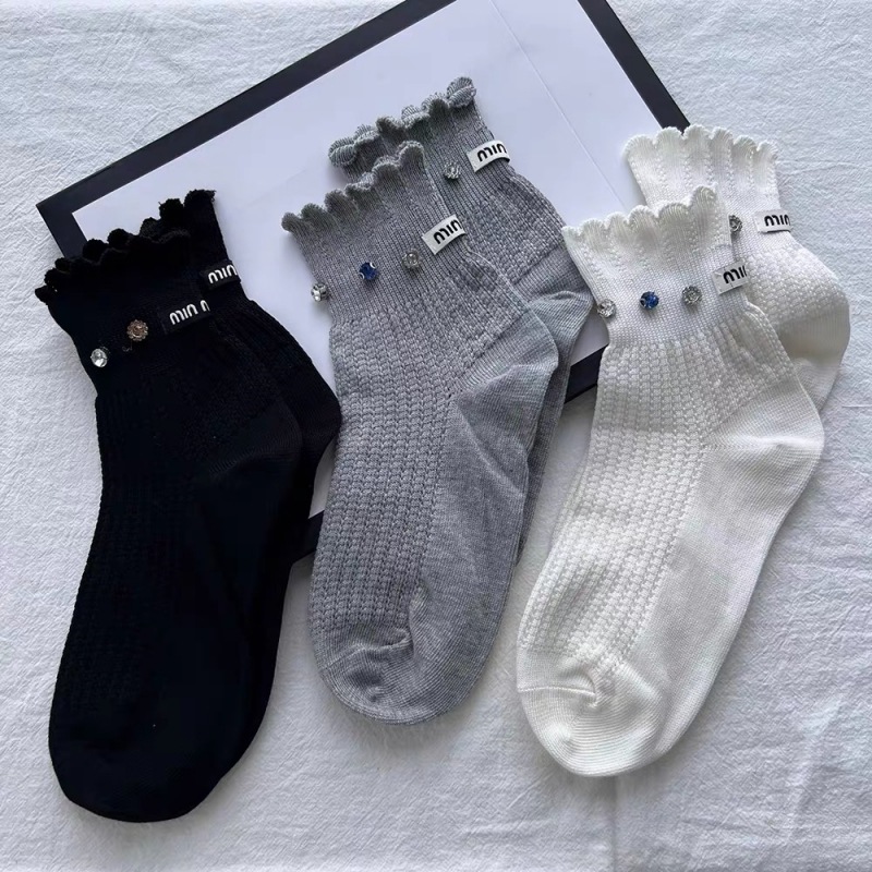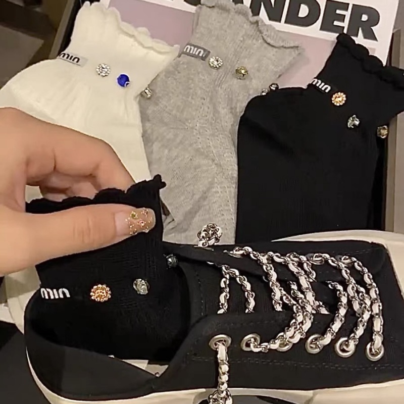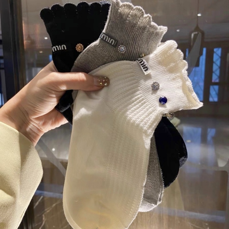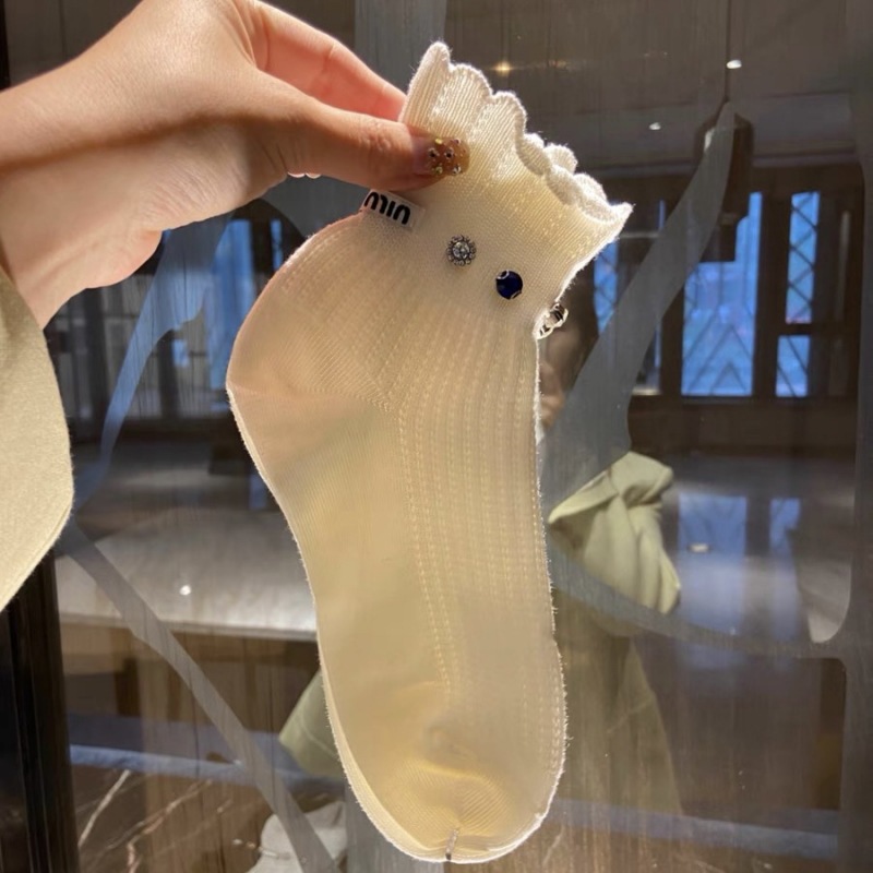 유럽 라이트 럭셔리 유행 힐 MM 편지 개인 다이아몬드 레이스 메쉬 통기성 짧은 양말 여성의 인터넷 연예인 달콤한 양말