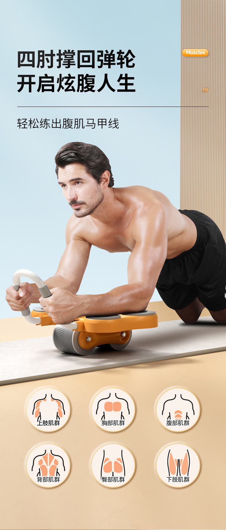 복부 강화 휠 자동 리바운드 복부 롤 복부 얇은 배꼽 팔꿈치 지원 홈 피트니스 장비 스포츠 복부 근육 훈련 유물