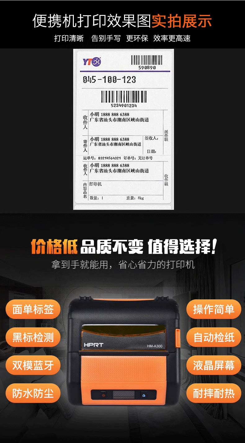 한 Yin A300 익스프레스 휴대용 익스프레스 픽업 코드 프린터 익스프레스 범용 레이아웃 시트 무선 열 시트스토어 가기