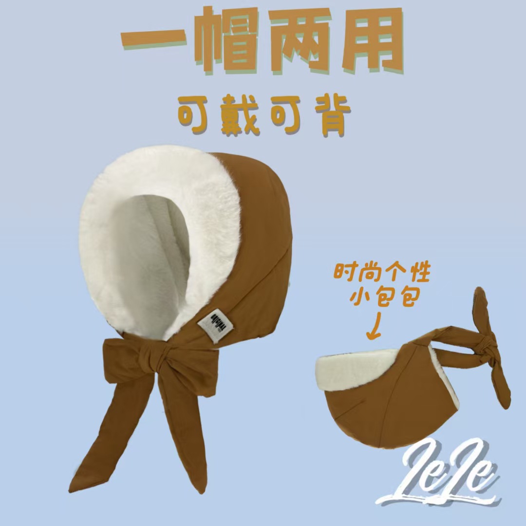 • 다운 코튼 레이펑 모자-브라운(2인용 모자 1개)
