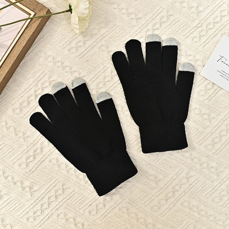 겨울 단색 니트 장갑 제조 업체 도매 야외 방풍 차가운 따뜻한 장갑 심플한 디자인 손가락 장갑스토어 가기
